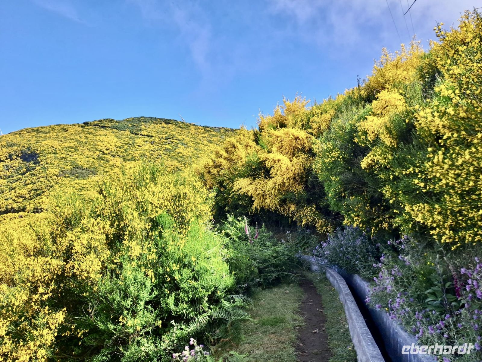 Zuerst besuchen wir den Orchideengarten Orchidis Quinta da Boa Vista und staunen über die Vielfalt. Wir haben die Pflanzen natürlich noch längst nicht satt und besichtigen als Nächstes des Palheiro Gardens, den Wohnsitz der Familie Blandy. Die Reise hat den Zusatz: mit mehr Bewegung und so ist eine Levadawanderung inmitten der schönen Vegatation der nächste Programmpunkt. Tolle Ausblicke bieten sich uns und besonders der gelbe Ginster hat es uns angetan.