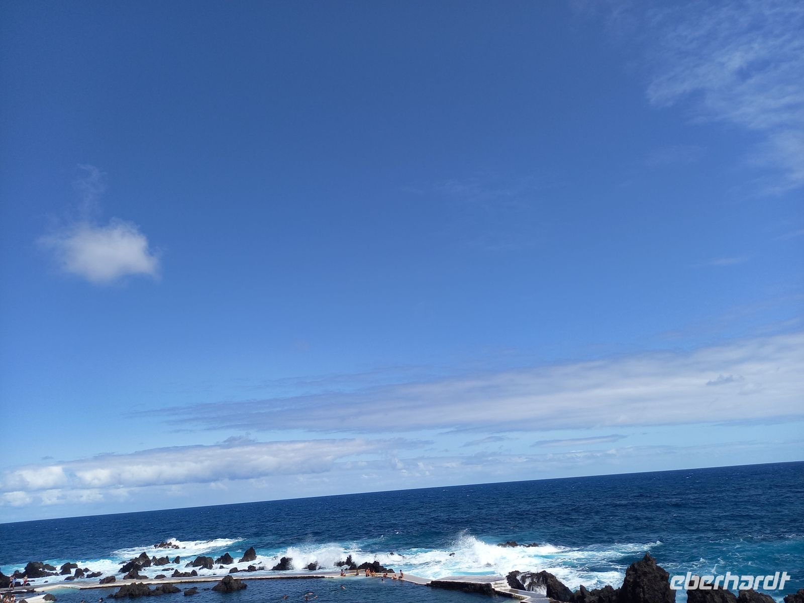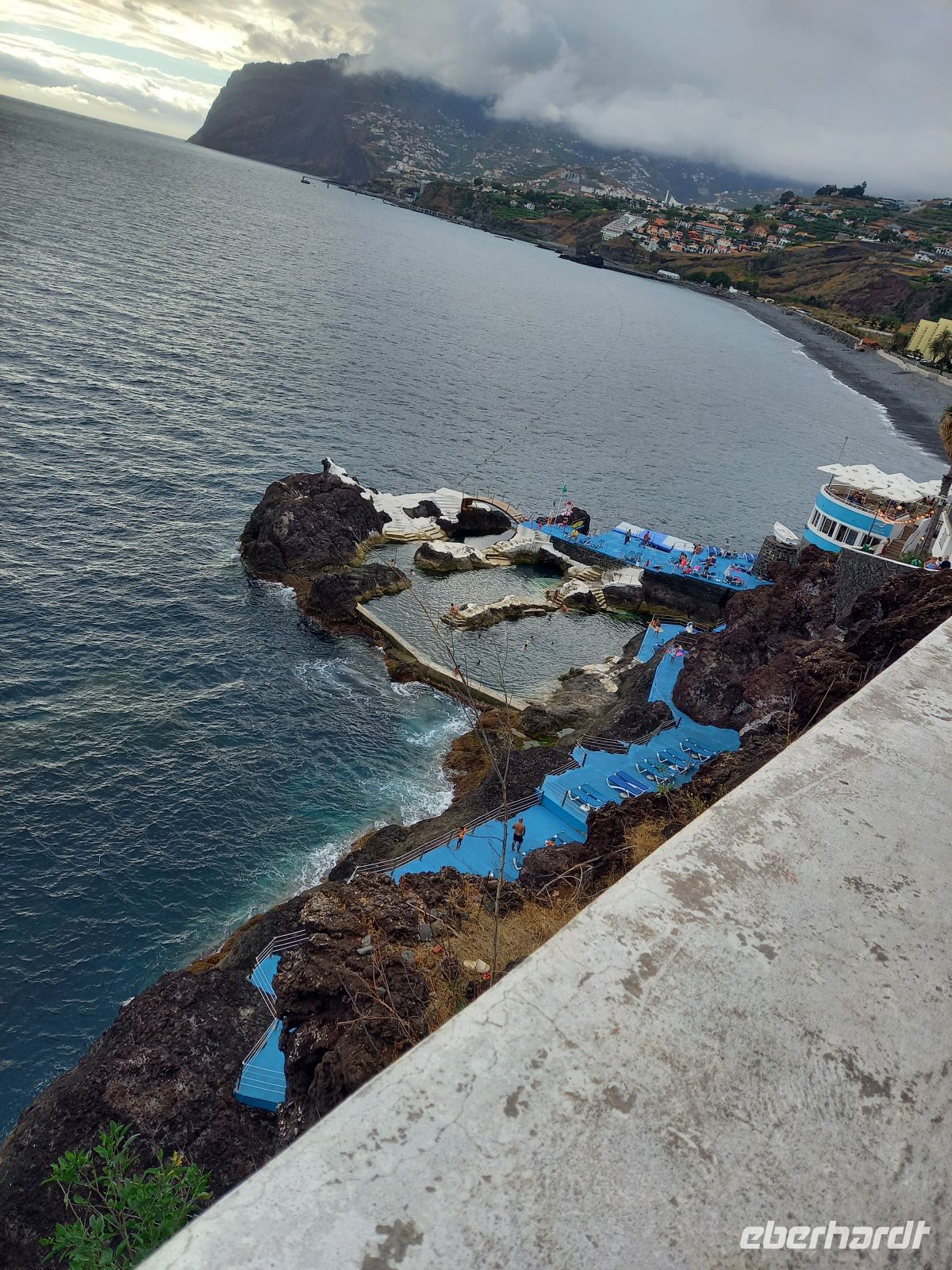 Von hier aus fuhren wir weiter nach Porto Moniz im Nordwesten. Die natürlichen Meeresschwimmbecken im schwarzen Lavagestein luden zu einem erfrischenden Bad im glasklaren Atlantikwasser ein, während draußen die Wellen an die Felsen brandeten. Anschließend führte der Weg entlang der steilen Klippen mit spektakulären Fotomotiven bis zum Wasserfall „Brautschleier“.