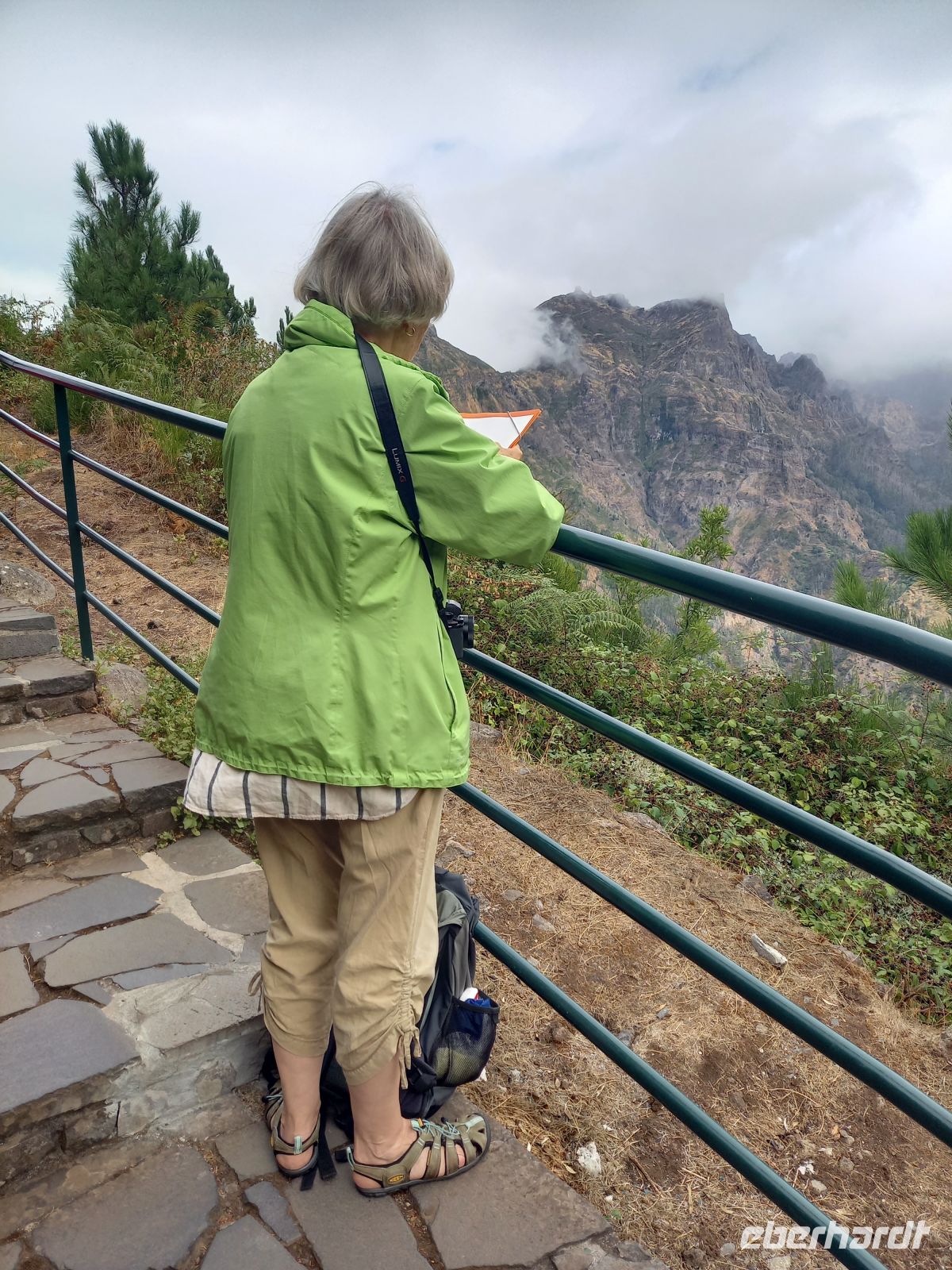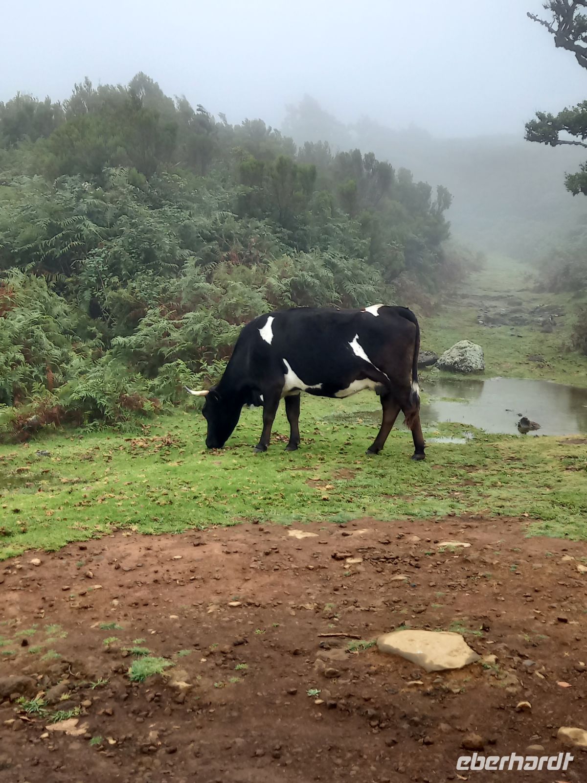 Unsere Reiseleiterin Teresa erzählte uns viel Wissenswertes über den Bananenanbau auf Madeira – von der Pflege der Pflanzen bis hin zum Export. Der Weg führte uns vorbei an terrassenförmig angelegten Häusern, durch Eukalyptuswälder hinauf zum Plateau. Bei rund 12 °C erwartete uns dort eine mystische Landschaft: knorrige, moosbewachsene Bäume im Nebel, grüne Lichtungen und grasende Kühe – ein Naturgebiet das zurecht als Märchenwald bezeichnet wird.