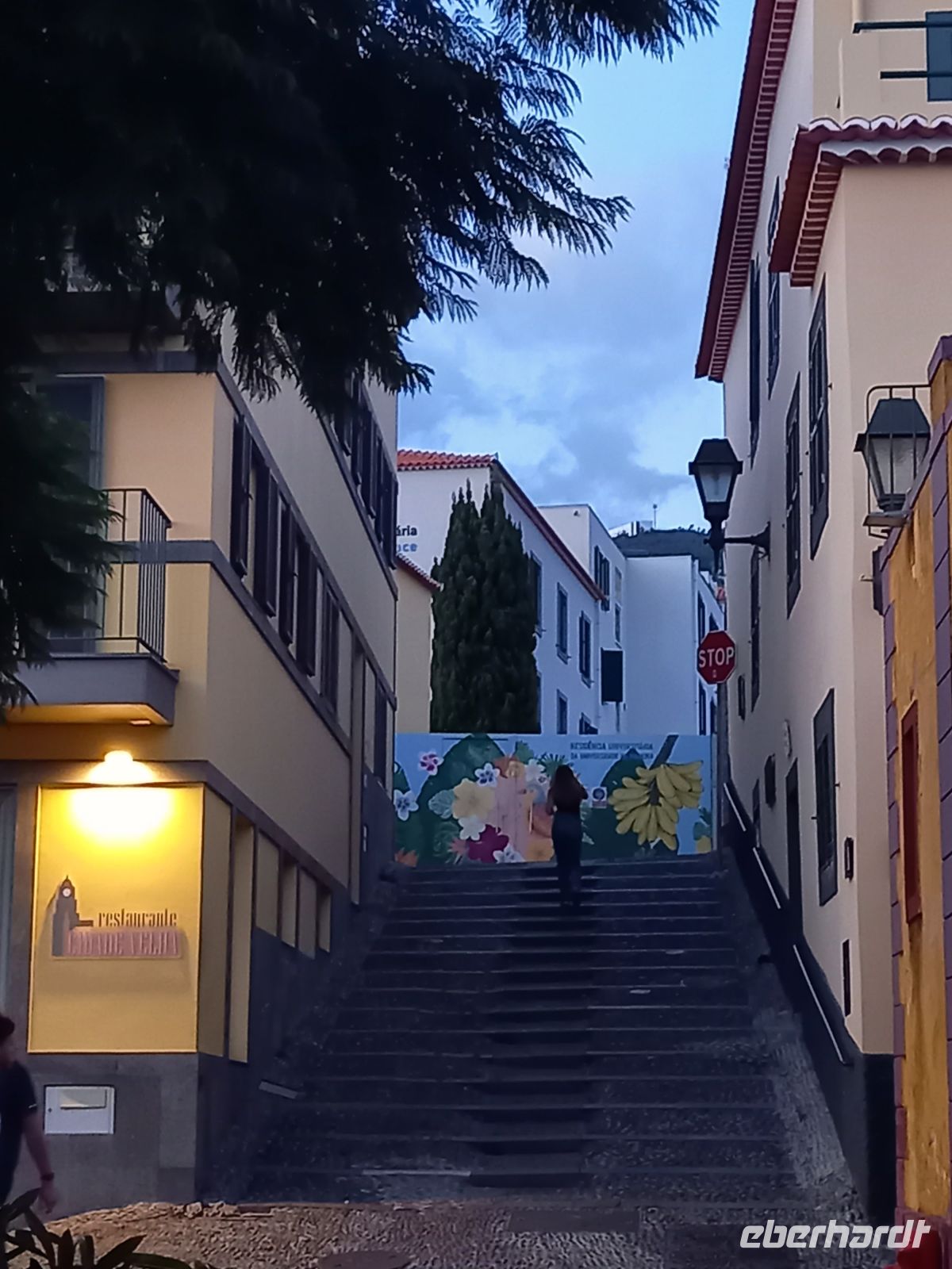 Zum Abschluss des Tages fuhren wir nach Funchal in die Altstadt. Dort ließen wir uns ein typisch madeirisches Spezialitätenmenü schmecken. Gemüsesuppe, schwarzer Degenfisch mit Banane und einer Maracujasoße, Süßkartoffelpüree und ein Törtchen mit Maracujasoße. Es war ein rundum gelungener, gemütlicher Abend.
