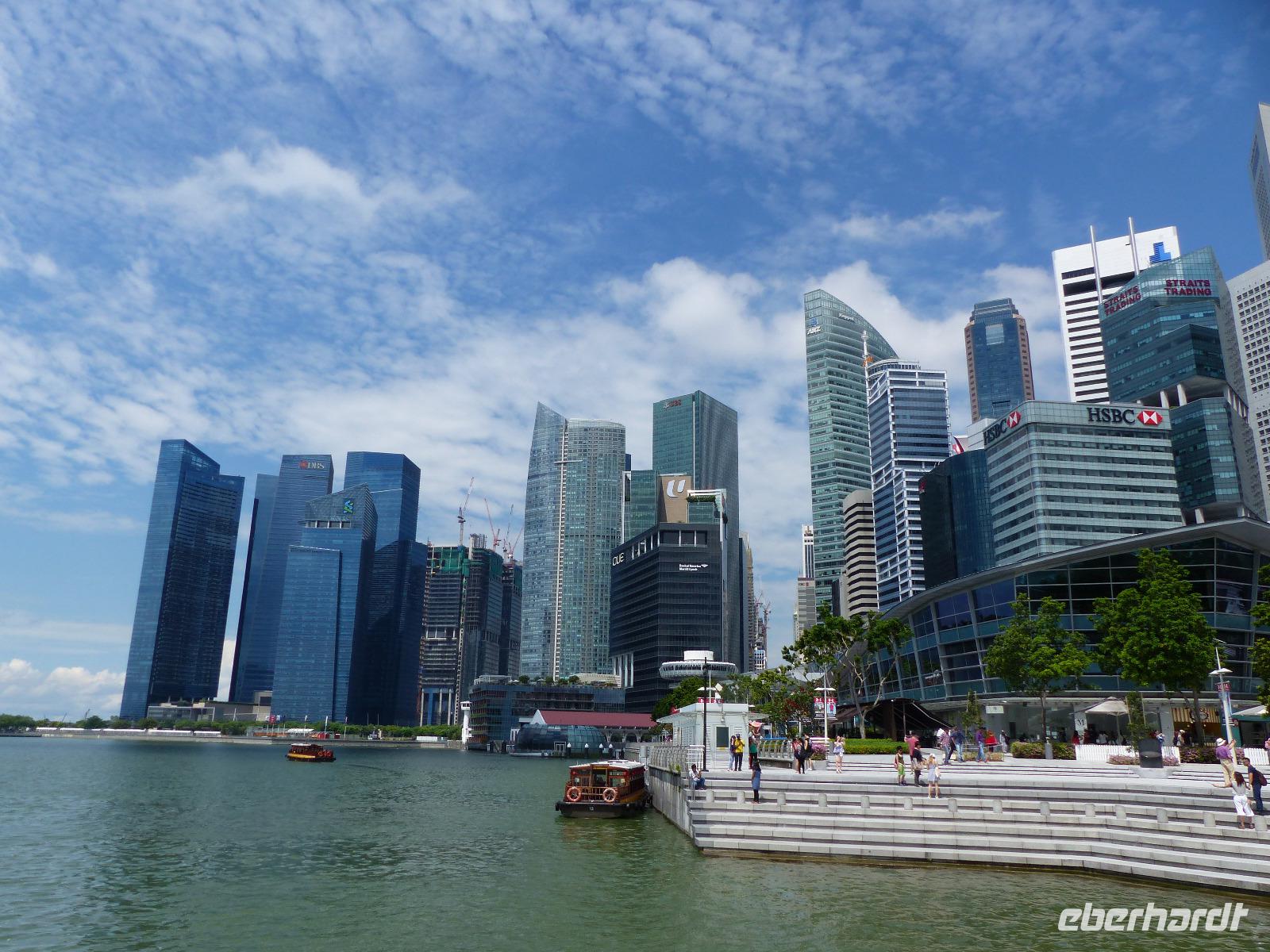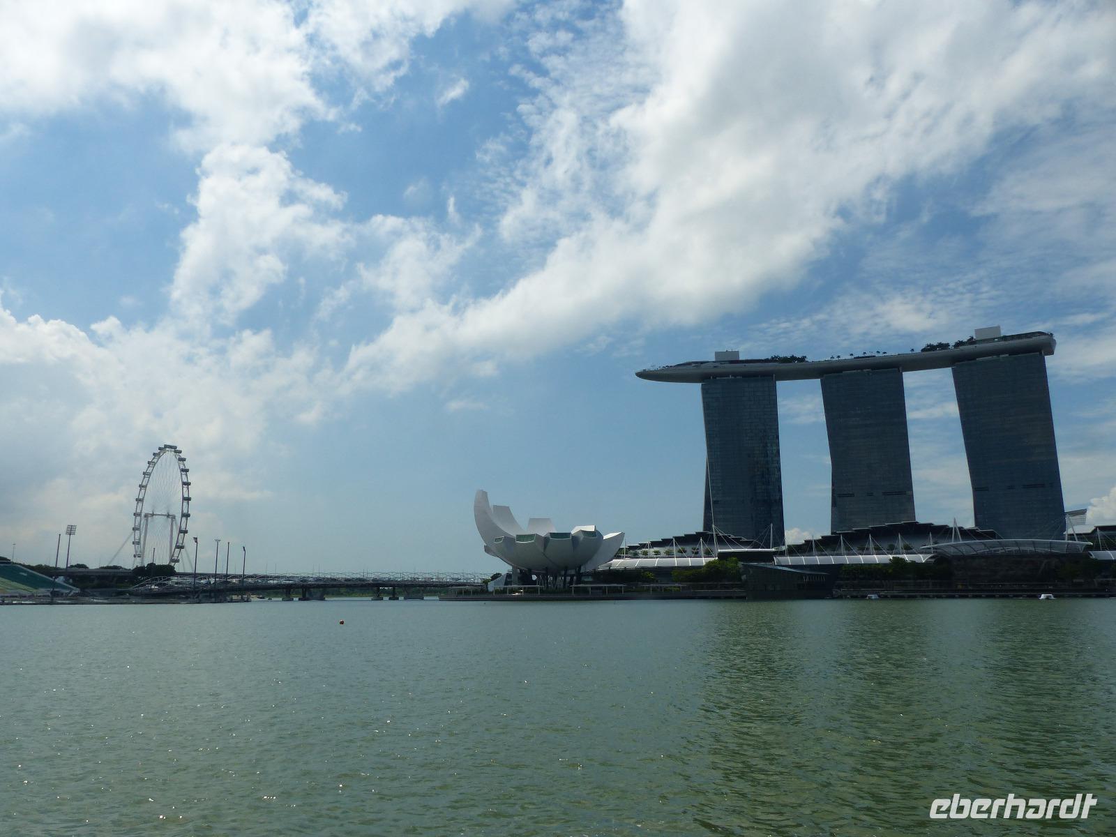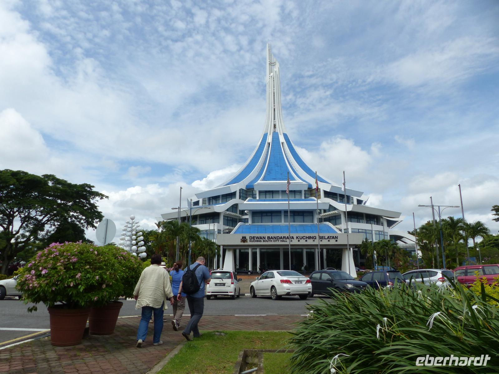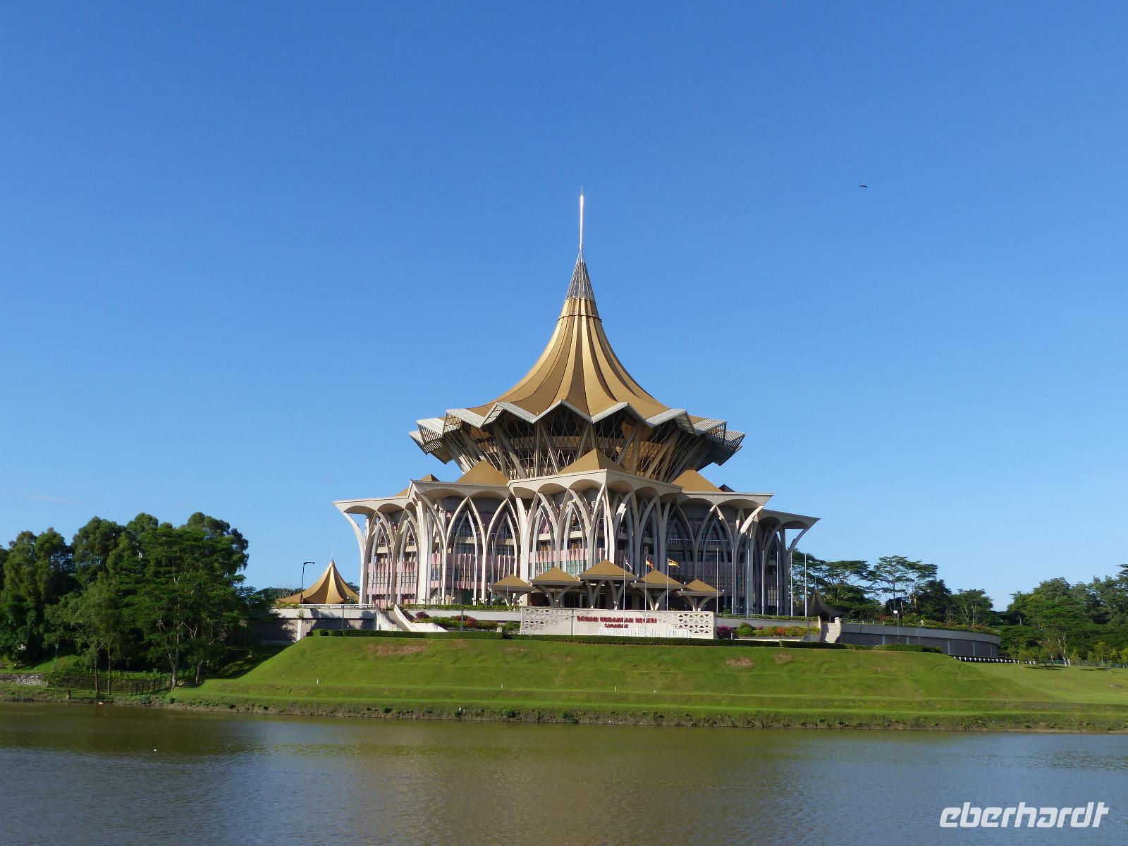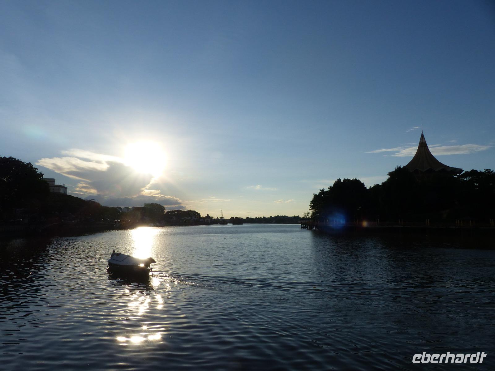 Aus unterschiedlichen Regionen Deutschlands stammend, treffen wir uns alle am Frankfurter Flughafen, wo unsere gemeinsame Reise nach Malaysia beginnt. Gegen Mittag machen wir uns zuerst auf den Weg nach Singapur, einem Stadtstaat am Zipfel des südostasiatischen Festlands, wo wir am Morgen des nächsten Tages ankommen. Hier haben wir einen längeren Aufenthalt, sodass wir uns auf eine kostenfreie Stadtrundfahrt begeben. Nach der Anmeldung hierfür und etwas Zeit für eigene Entdeckungen auf dem Flughafen, beginnt die Rundfahrt durch die Fünf-Millionen-Metropole gegen Mittag. Gemeinsam mit anderen Gästen begeben wir uns durch die Grenzkontrolle und so reisen wir für 3 Stunden in Singapur ein. Mit dem Bus geht es zuallererst zur Marina Bay, einer künstlich angelegten Bucht, welche das größte Süßwasserreservoir der Stadt darstellt. Perfekt für einen kurzen Fotostopp, denn das Wahrzeichen der Stadt- der Merlion- halb Löwe halb Fisch, sowie das exklusive Marina Bay Sands Hotel und der berühmte Singapur-Flyer laden als Fotomotiv ein. Zusätzlich bekommen wir bei strahlendem Sonnenschein und tropischen Temperaturen bereits einen guten Eindruck welches Klima uns die nächsten zwei Wochen begleiten wird. Weiter geht es mit dem Bus durch den Vielvölkerstaat, denn Chinatown und little India stehen ebenso auf dem Programm. Beim Durchfahren dieser beiden Stadtteile wird einem bewusst, dass Singapur nicht nur moderne und westliche Facetten aufzeigt, sondern eine echte asiatische Metropole ist. Bei unserem nächsten Stopp im Kampong Glam, dem muslimischen Viertel der Stadt, haben wir wieder die Möglichkeit kurz auszusteigen. Besonders beeindruckend und für ein Foto gemacht, ist die Sultansmoschee mit ihrer goldenen Kuppel sowie der direkt nebenan gelegene Sultanspalast. Im Anschluss geht es für uns wieder zurück zum Flughafen, wo wir leider noch etwas Wartezeit in Kauf nehmen müssen. Langsam kämpft jeder mit der Müdigkeit, aber ein gutes asiatisches Essen und die an verschiedenen Orten angebotene Fußmassage lässt die Zeit vergehen. Am Abend landen wir in Kuching und werden herzlich von unserer Reiseleiterin Nicki begrüßt. Nach ca. 20 Minuten Fahrt erreichen wir das direkt an der Uferpromenade gelegene Hilton Hotel, wo jeder nur noch erschöpft in sein Bett fällt.