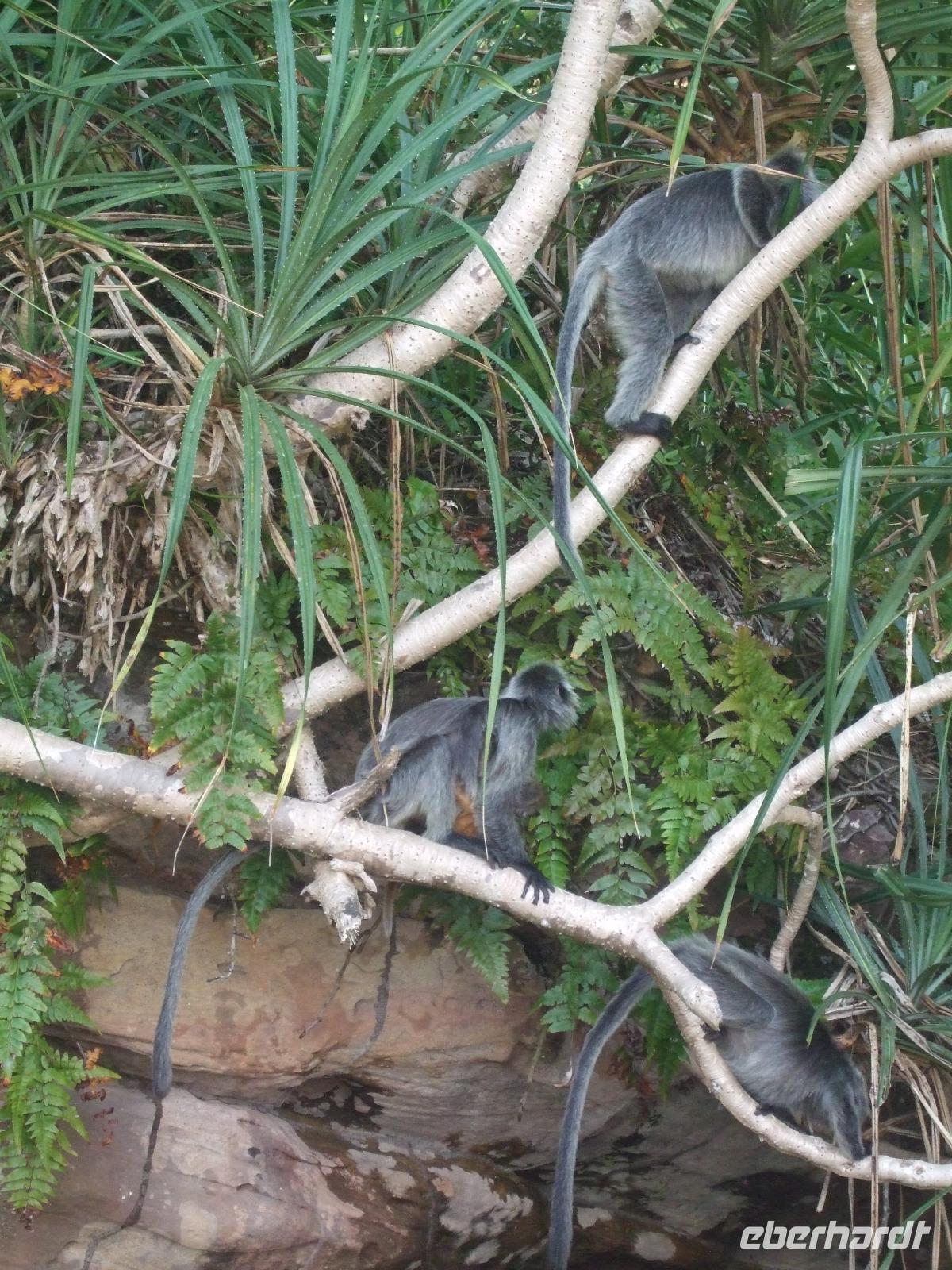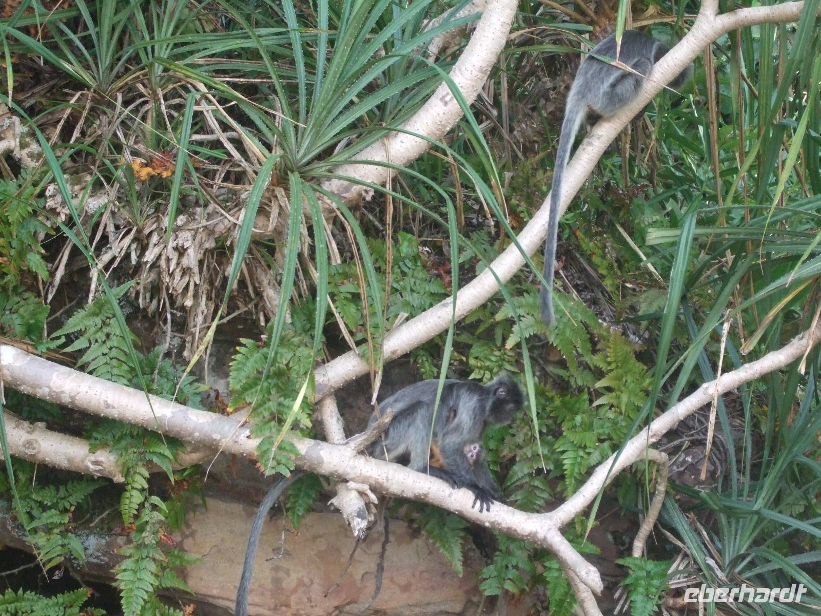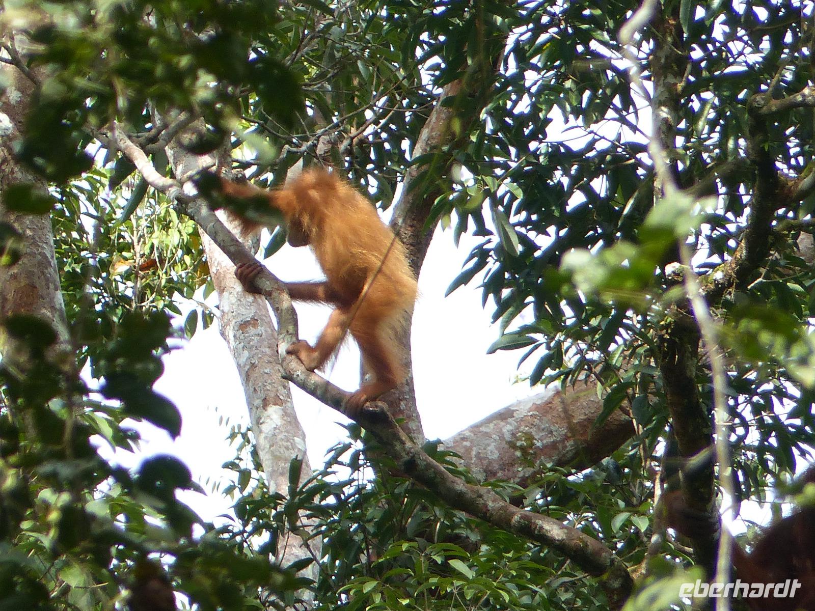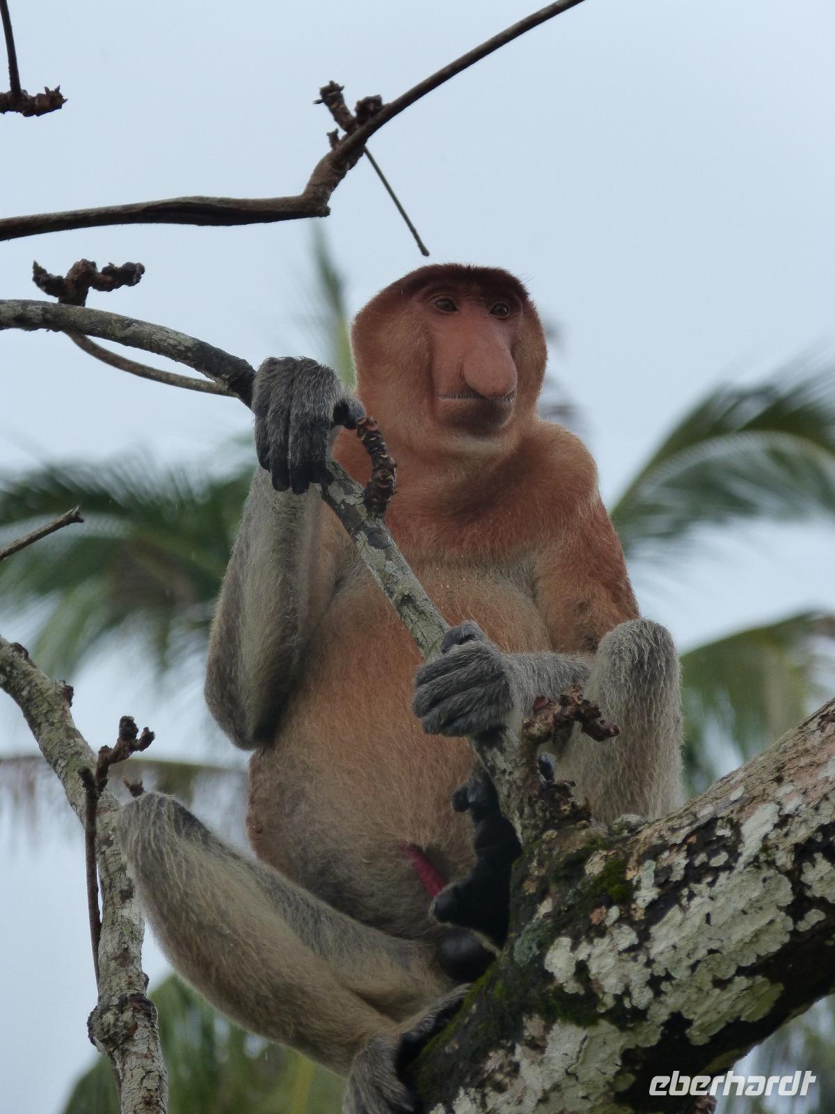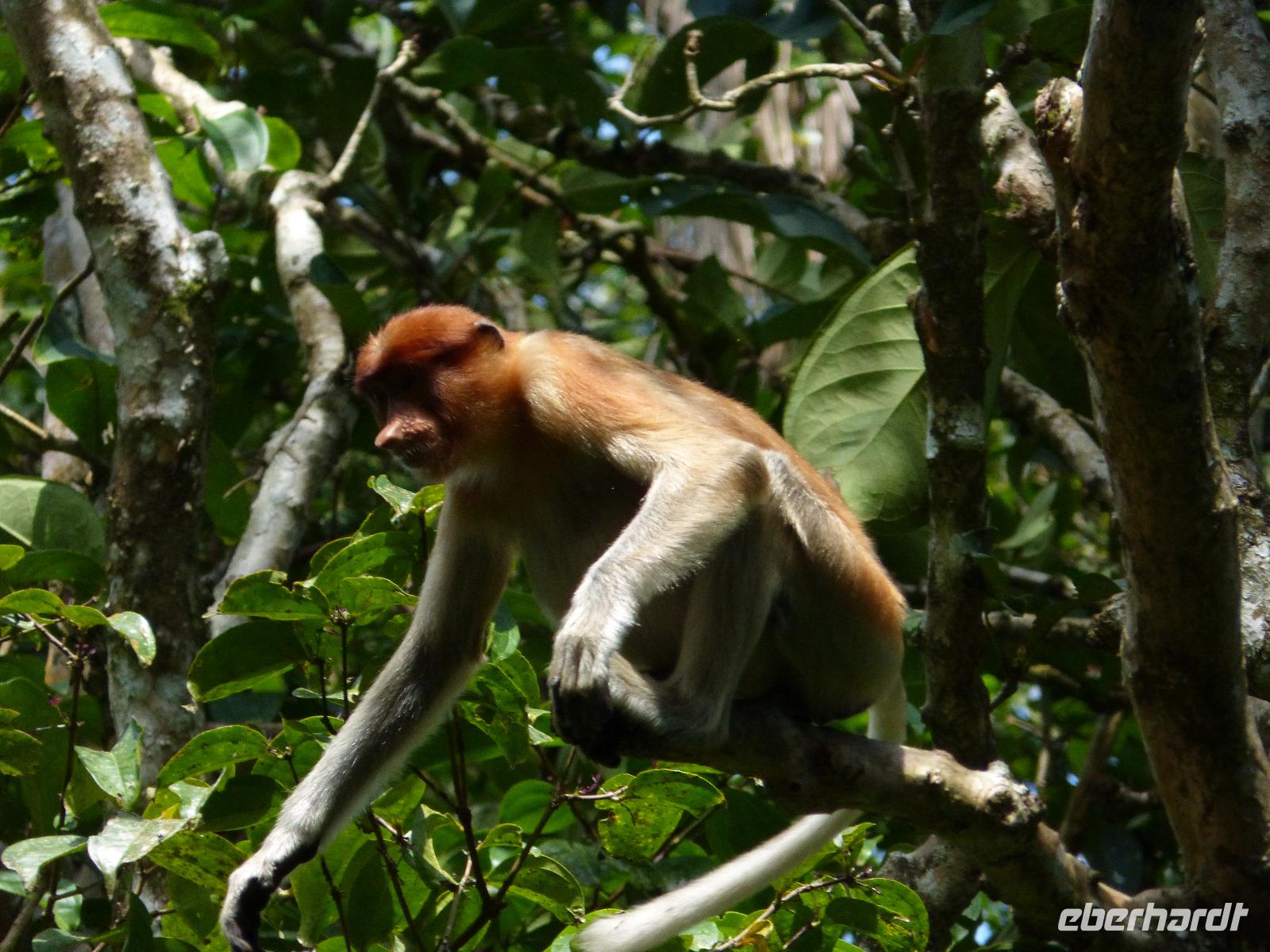 Nach einer erholsamen Nacht und einem leckeren Frühstück steht heute bereits ein erster Höhepunkt auf dem Programm- der Besuch von Semenggoh. Schon während der Fahrt erfahren wir von Nicki allerhand wissenswertes über die Menschen des Waldes, was Orang Utan vom malaiischen übersetzt bedeutet. Alle 26 in Semenggoh lebenden Orang Utans haben bereits einen langen Rehabilationsweg hinter sich und befinden sich nun in ihrer letzten Phase auf dem Weg zurück in die Wildnis. Dies heißt wiederrum für uns, dass die Affen hier halb wild sind und nur mit Glück zur Fütterungsstation kommen. Doch wir haben das Glück auf unserer Seite und können insgesamt 4 der uns zu 96,4% in der DNA gleichen Tiere beobachten. Überraschend und fast geräuschlos kommen Sie durch den dichten Dschungel. Mit vielen Fotos im Gepäck, fahren wir zurück nach Kuching, der Hauptstadt Sarawaks und unternehmen eine Rundfahrt. Wir beginnen im Südteil der Stadt, wo wir das hiesige Bürgerhaus besuchen und anhand von Fotoaufnahmen und Nickis Erklärungen viel Wissenswertes über diesen Teilstatt von Malaysia erfahren. Weiter geht es zur Katzenstatue und durch Chinatown, wo wir nach dem Besuch des taoistischen Tempels Tua Pek Kong, welcher übersetzt Tempel des mächtigen Großvaters bedeutet, auf einheimische Art und Weise einen Mittagsimbiss zu uns nehmen. Leckere, einfache Speisen erwarten uns in einer der vielen Coffeeshops. Laksa, Kolok Mee oder eine Kleinigkeit vom Buffet- für jeden ist etwas dabei. Da es ganz nach Regen aussieht, entschließen wir uns bereits jetzt die Führung durch Borneos ältestes Museum zu unternehmen. Mit zum Teil noch originalen Ausstellungsmöbeln aus England besticht dieses Museum nicht durch neuste Technik sondern eher durch seine Exponate, hinter welchen viele interessante Erklärungen schlummern. Dank Nicki bekommen wir so einen guten Überblick in die Natur-, Tier- und Kulturvielfalt Borneos. Da es nun immer noch gewittert, entschließen wir uns den letzten Teil der Stadtbesichtigung auf einen anderen Tag zu verlegen und vorerst ins Hotel zurück zu fahren. Nach etwas Zeit zum Frisch machen, treffen wir uns zu einem ersten gemeinsamen Abendessen. In unmittelbarer Nähe zum Hotel befindet sich das Top Spot Seafood Center. Hier haben wir einen der vielen großen runden Tische für uns und probieren leckere einheimische Kost- Mangofisch, Okrabohnen oder Midin, ein essbares Farn zusammen mit Knoblauch in der Pfanne angeschwitzt.