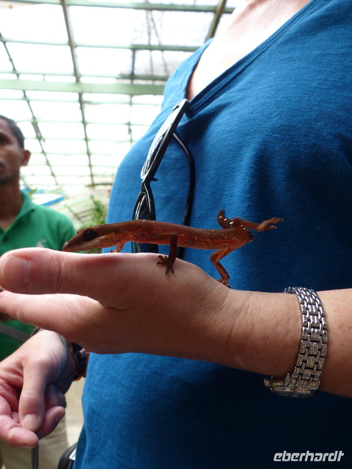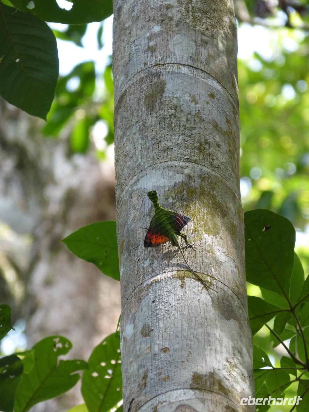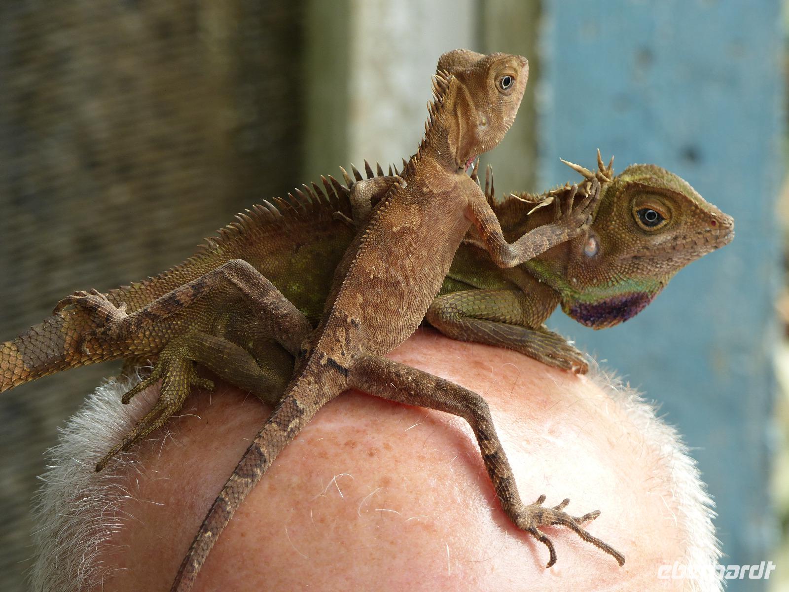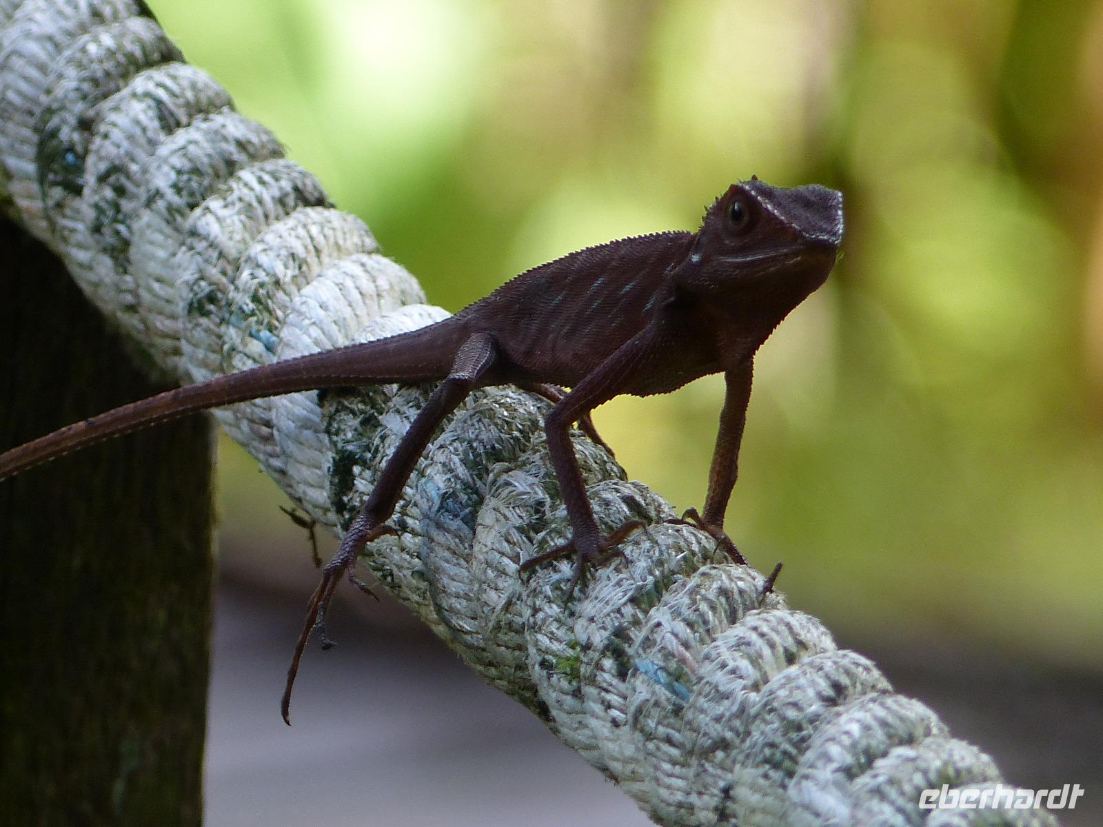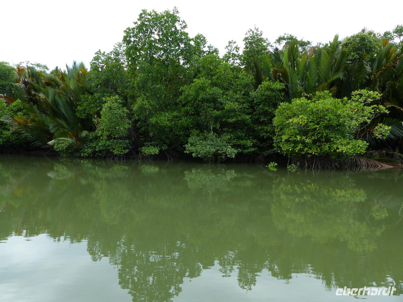 Nach einer erholsamen Nacht und einem leckeren Frühstück steht heute bereits ein erster Höhepunkt auf dem Programm- der Besuch von Semenggoh. Schon während der Fahrt erfahren wir von Nicki allerhand wissenswertes über die Menschen des Waldes, was Orang Utan vom malaiischen übersetzt bedeutet. Alle 26 in Semenggoh lebenden Orang Utans haben bereits einen langen Rehabilationsweg hinter sich und befinden sich nun in ihrer letzten Phase auf dem Weg zurück in die Wildnis. Dies heißt wiederrum für uns, dass die Affen hier halb wild sind und nur mit Glück zur Fütterungsstation kommen. Doch wir haben das Glück auf unserer Seite und können insgesamt 4 der uns zu 96,4% in der DNA gleichen Tiere beobachten. Überraschend und fast geräuschlos kommen Sie durch den dichten Dschungel. Mit vielen Fotos im Gepäck, fahren wir zurück nach Kuching, der Hauptstadt Sarawaks und unternehmen eine Rundfahrt. Wir beginnen im Südteil der Stadt, wo wir das hiesige Bürgerhaus besuchen und anhand von Fotoaufnahmen und Nickis Erklärungen viel Wissenswertes über diesen Teilstatt von Malaysia erfahren. Weiter geht es zur Katzenstatue und durch Chinatown, wo wir nach dem Besuch des taoistischen Tempels Tua Pek Kong, welcher übersetzt Tempel des mächtigen Großvaters bedeutet, auf einheimische Art und Weise einen Mittagsimbiss zu uns nehmen. Leckere, einfache Speisen erwarten uns in einer der vielen Coffeeshops. Laksa, Kolok Mee oder eine Kleinigkeit vom Buffet- für jeden ist etwas dabei. Da es ganz nach Regen aussieht, entschließen wir uns bereits jetzt die Führung durch Borneos ältestes Museum zu unternehmen. Mit zum Teil noch originalen Ausstellungsmöbeln aus England besticht dieses Museum nicht durch neuste Technik sondern eher durch seine Exponate, hinter welchen viele interessante Erklärungen schlummern. Dank Nicki bekommen wir so einen guten Überblick in die Natur-, Tier- und Kulturvielfalt Borneos. Da es nun immer noch gewittert, entschließen wir uns den letzten Teil der Stadtbesichtigung auf einen anderen Tag zu verlegen und vorerst ins Hotel zurück zu fahren. Nach etwas Zeit zum Frisch machen, treffen wir uns zu einem ersten gemeinsamen Abendessen. In unmittelbarer Nähe zum Hotel befindet sich das Top Spot Seafood Center. Hier haben wir einen der vielen großen runden Tische für uns und probieren leckere einheimische Kost- Mangofisch, Okrabohnen oder Midin, ein essbares Farn zusammen mit Knoblauch in der Pfanne angeschwitzt.