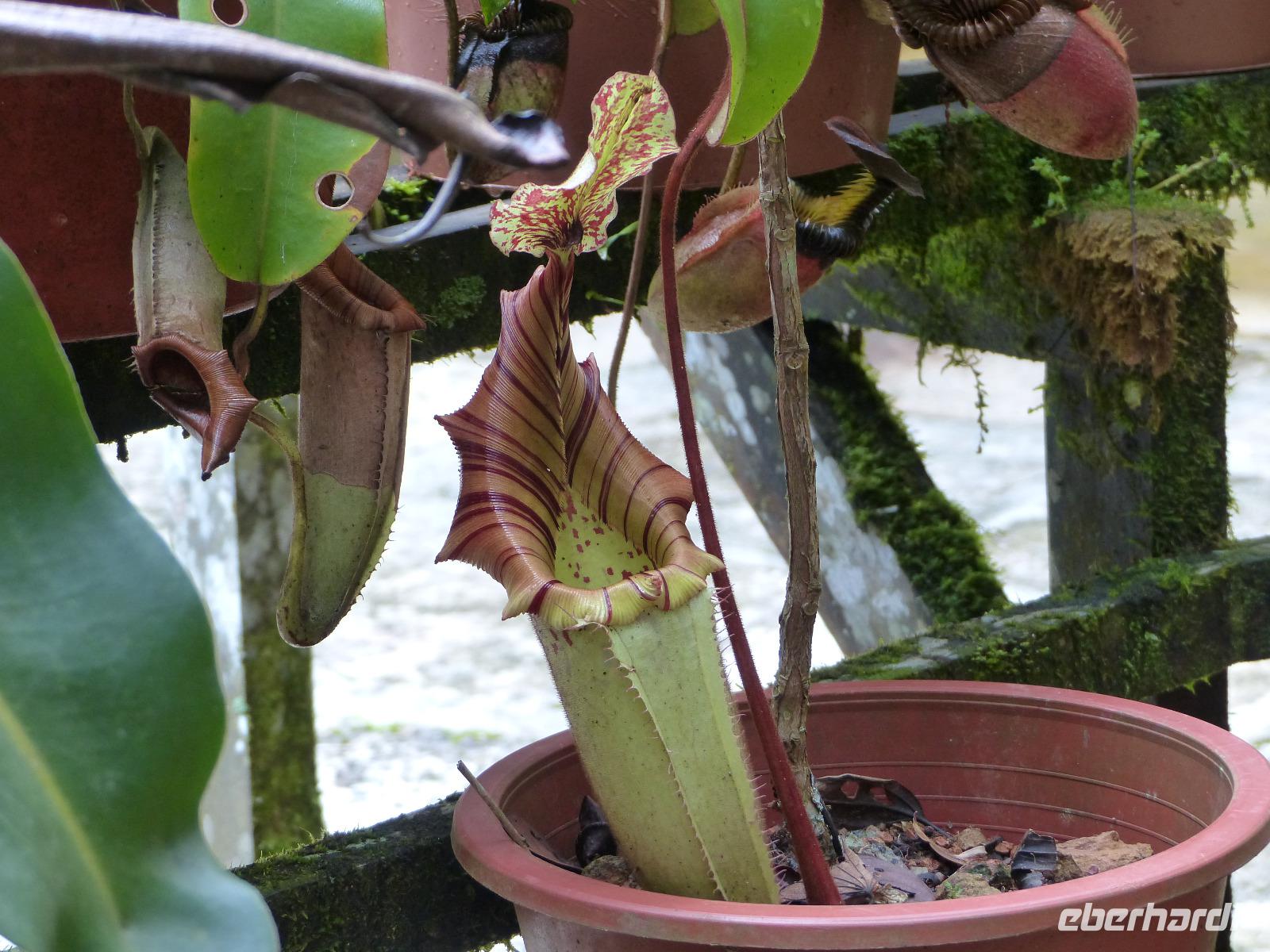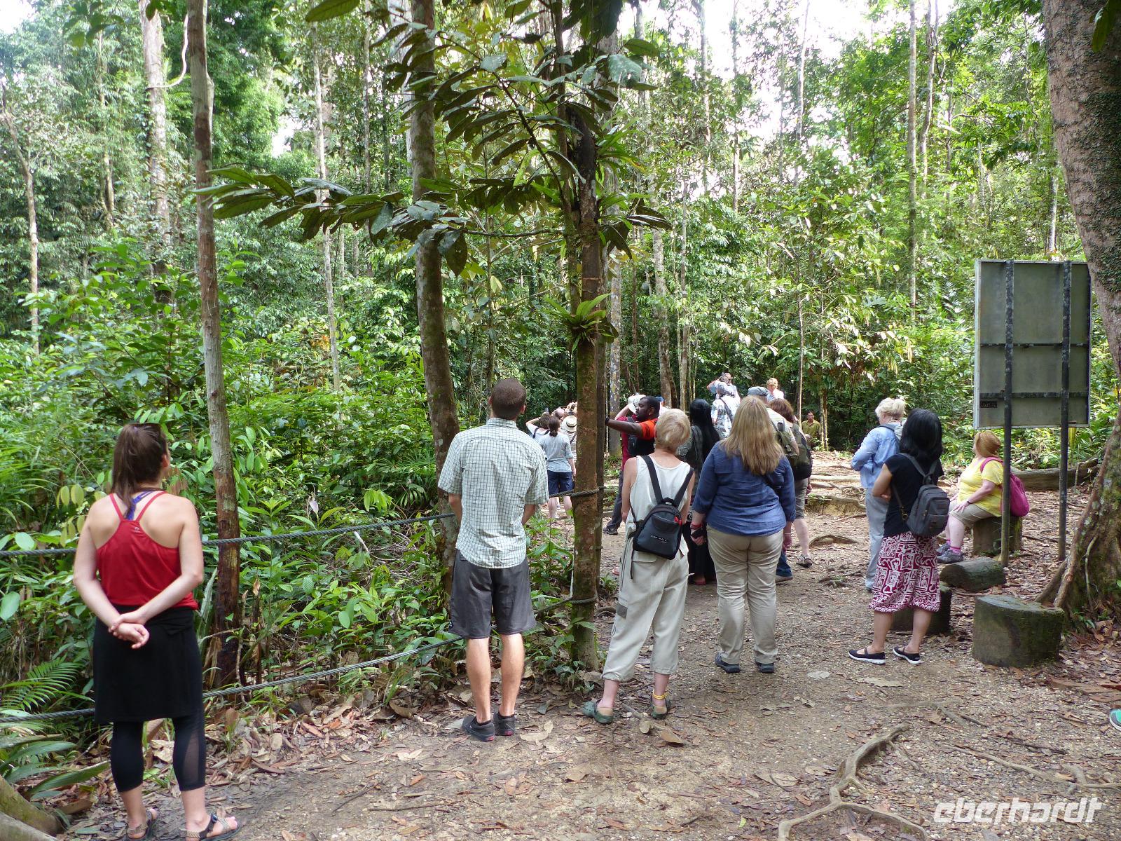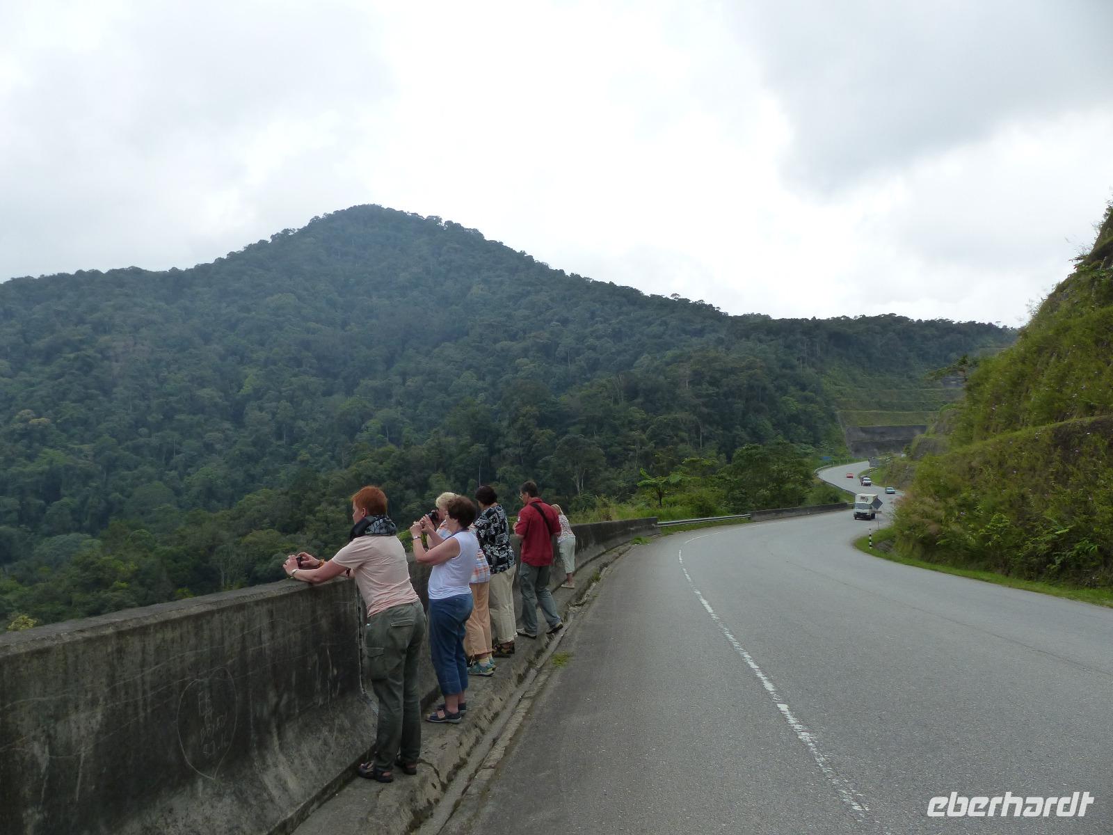 Nach einem leckeren Frühstück und dem wohl besten Kaffee der Reise unternehmen wir einen Tagesausflug in den Kinabalu Nationalpark, welcher im Jahr 2000 zur ersten World Heritage Site in Malaysia erklärt wurde. Leider ist es heute sehr bedeckt und in den höheren Regionen hängen die Wolken tief, sodass wir bei unserem ersten Stopp leider den 4095,2m hohen Mount Kinabalu nicht sehen, sondern nur erahnen können. Am späten Vormittag passieren wir dann den Eingang des Parks und besuchen noch vor unserer kleinen Wanderung den hiesigen botanischen Garten. Der Kinabalu Nationalpark ist dafür bekannt, dass er auf engstem Raum unterschiedliche Vegetationszonen mit einer einmaligen Artenvielfalt beheimatet. So wurden in diesem kleinen Garten viele Orchideen und andere seltene Pflanzen angesiedelt. Besonders beeindrucken die Kannenpflanzen, welche deutlich größer als die uns bereits bekannten sind. Im Anschluss begeben wir uns dann auf eine kleine Wanderung, welche uns erst etwas bergauf durch einen Nebelwald und dann wieder auf den Parkplatz zurückführt. Unterwegs erfahren wir durch Gordon allerhand über die einheimische Pflanzenwelt und auch unser Regenschutz kommt zum Einsatz. Auf der Hälfte der Strecke fängt es an zu regnen, sodass wir uns nun schneller zum Mittagessen begeben. Hier wartet ein leckeres Buffet auf uns und beim Essen auf der Terrasse wird uns noch einmal bewusst, wie angenehm die Temperaturen auf dieser Höhe doch sind. Bei unserer Rückkehr im Hotel regnet es leider noch immer, sodass wir uns für ein Abendessen auf der überdachten Dachterrasse des Hotels entscheiden. Neben leckeren Speisen können wir hier einen tollen Ausblick auf die Stadt genießen und den Abend gemeinsam ausklingen lassen.