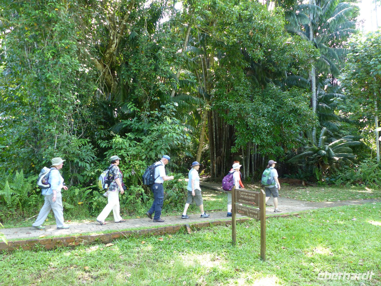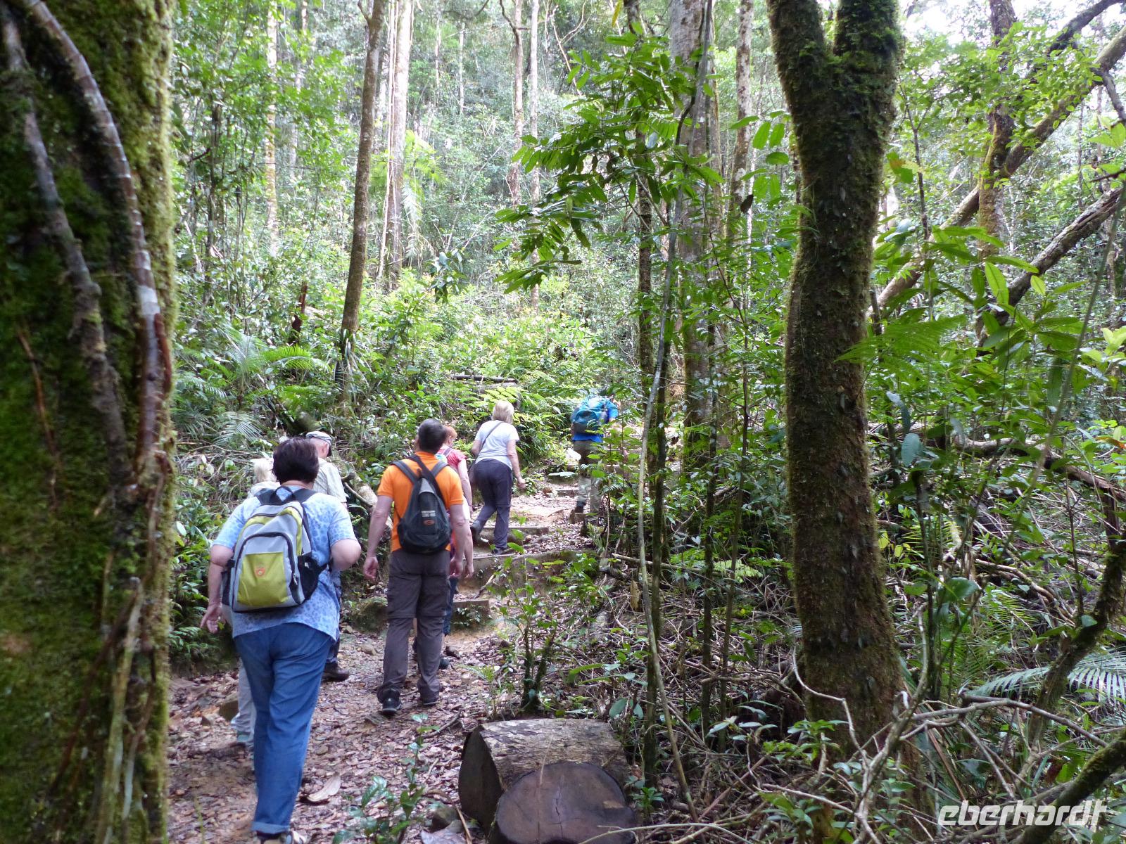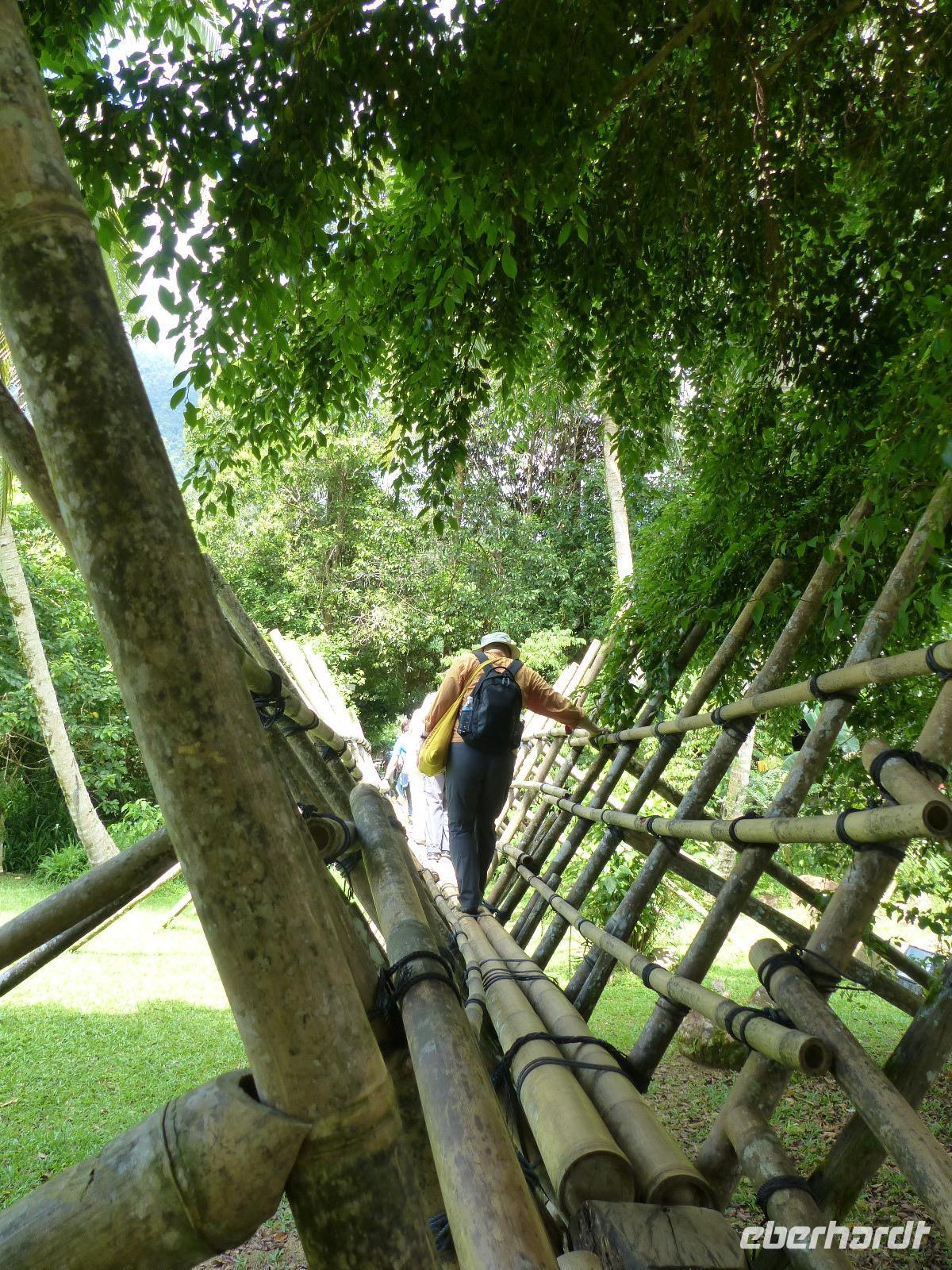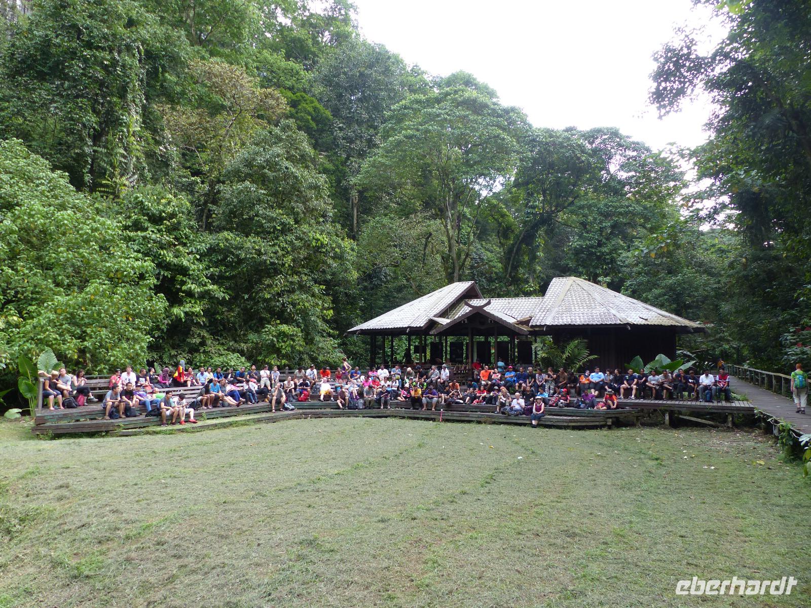 Nach einem leckeren Frühstück und dem wohl besten Kaffee der Reise unternehmen wir einen Tagesausflug in den Kinabalu Nationalpark, welcher im Jahr 2000 zur ersten World Heritage Site in Malaysia erklärt wurde. Leider ist es heute sehr bedeckt und in den höheren Regionen hängen die Wolken tief, sodass wir bei unserem ersten Stopp leider den 4095,2m hohen Mount Kinabalu nicht sehen, sondern nur erahnen können. Am späten Vormittag passieren wir dann den Eingang des Parks und besuchen noch vor unserer kleinen Wanderung den hiesigen botanischen Garten. Der Kinabalu Nationalpark ist dafür bekannt, dass er auf engstem Raum unterschiedliche Vegetationszonen mit einer einmaligen Artenvielfalt beheimatet. So wurden in diesem kleinen Garten viele Orchideen und andere seltene Pflanzen angesiedelt. Besonders beeindrucken die Kannenpflanzen, welche deutlich größer als die uns bereits bekannten sind. Im Anschluss begeben wir uns dann auf eine kleine Wanderung, welche uns erst etwas bergauf durch einen Nebelwald und dann wieder auf den Parkplatz zurückführt. Unterwegs erfahren wir durch Gordon allerhand über die einheimische Pflanzenwelt und auch unser Regenschutz kommt zum Einsatz. Auf der Hälfte der Strecke fängt es an zu regnen, sodass wir uns nun schneller zum Mittagessen begeben. Hier wartet ein leckeres Buffet auf uns und beim Essen auf der Terrasse wird uns noch einmal bewusst, wie angenehm die Temperaturen auf dieser Höhe doch sind. Bei unserer Rückkehr im Hotel regnet es leider noch immer, sodass wir uns für ein Abendessen auf der überdachten Dachterrasse des Hotels entscheiden. Neben leckeren Speisen können wir hier einen tollen Ausblick auf die Stadt genießen und den Abend gemeinsam ausklingen lassen.