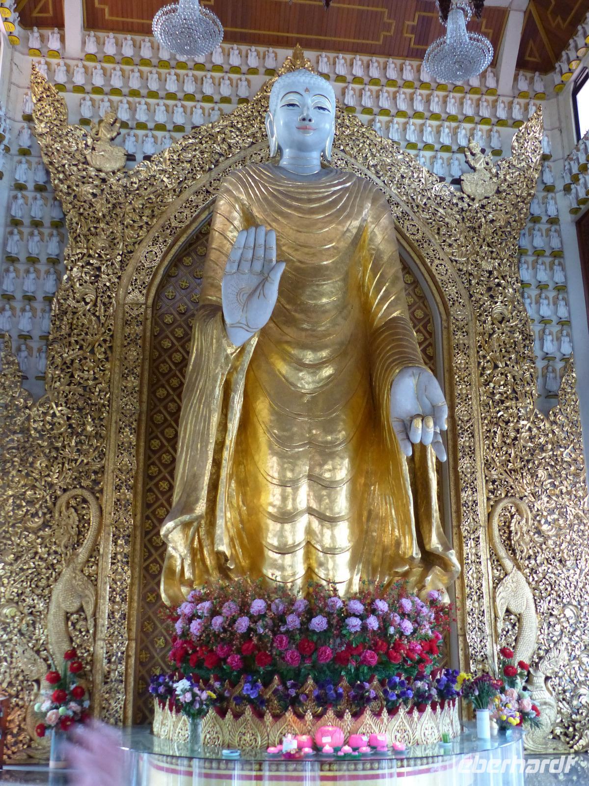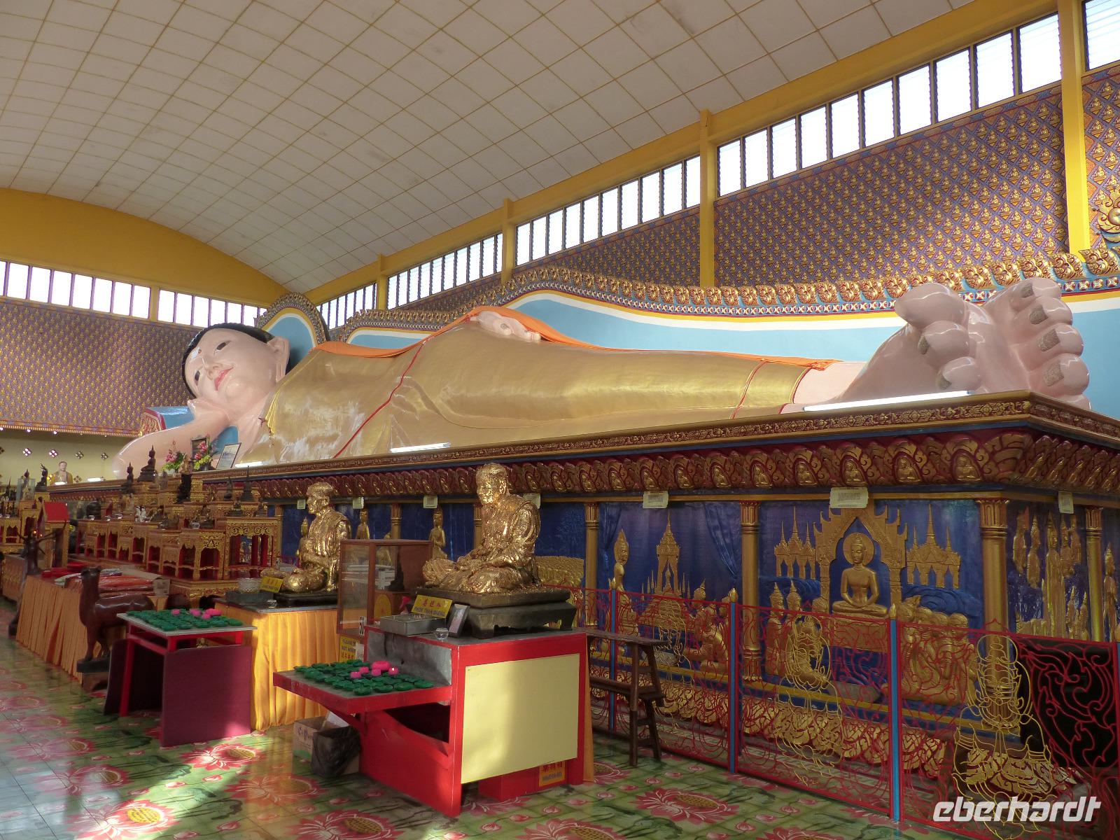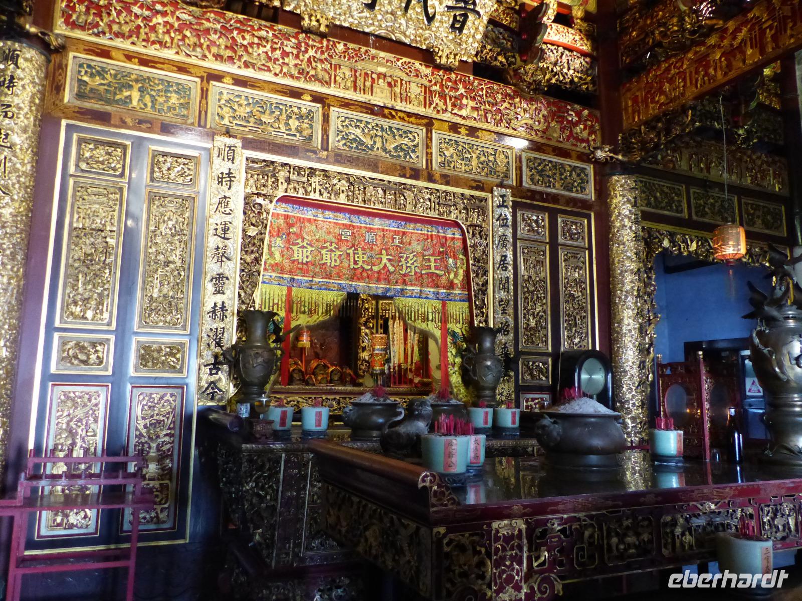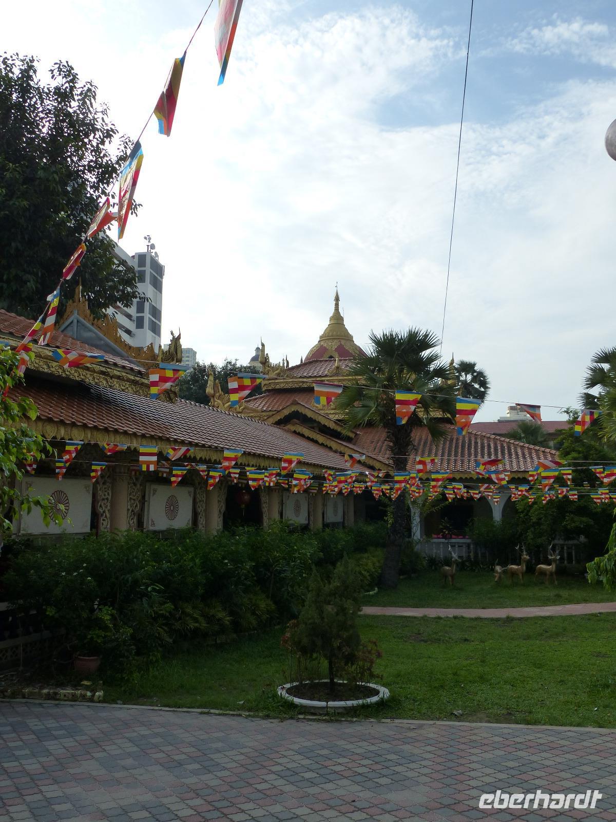 Mit gepackten Koffern im Gepäck heißt es heute Abschied nehmen vom Gunung Mulu Nationalpark. Anders als ursprünglich geplant, fliegen wir heute nicht direkt nach Kota Kinabalu, sondern über Miri, der zweit größten Stadt in Sarawak. Da wir hier einen längeren Aufenthalt haben, nutzen wir die Zeit um auch diese Stadt etwas näher kennen zu lernen. 1910 wurde in Miri die erste Ölquelle Sarawaks entdeckt, was die anfangs unscheinbare Küstenstadt stark expandieren lies. Noch heute erinnert ein Denkmal auf dem Canada Hill, welches liebevoll Grand Old Lady genannt wird, an den ersten Bohrturm der Stadt. Kurz nach dem Mittagessen steht selbstverständlich auch ein Besuch dessen an, wo wir zugleich einen tollen Ausblick über die Stadt genießen können. Doch bevor es soweit ist, fahren wir erst einmal in das Zentrum der Stadt, wo wir auf dem Weg den größten taoistischen Tempel in ganz Südostasien besuchen. Der Lian Hua San Tempel beeindruckt vor allem durch sein gigantisches Eingangstor und seinen reichverzierten Bau. Da heute zugleich ein Feiertag ist und die Buddhisten den Geburtstag Buddhas feiern, besuchen wir die buddhistische Gemeinde der Stadt. Mit einem freundlichen Lächeln werden wir herzlich begrüßt und in Empfang genommen. Eine reichliche halbe Stunde verbringen wir hier, da die Atmosphäre so einmalig ist. Bevor wir dann erneut in den Flieger steigen, halten wir auch an einem einheimischen Obst- und Gemüsemarkt, bei dem wir mit offenen Ohren Nickis Erklärungen ein letztes Mal lauschen. Dann heißt es Abschied nehmen und auf nach Kota Kinabalu, der Hauptstadt des ebenso auf Borneo gelegenen Bundesstaates Sabah. Auf dem Flughafen werden wir von unserem neuen Reiseleiter Gordon in Empfang genommen. Schon auf dem Weg zum Hotel erfahren wir einige Informationen über die Stadt, welche wir dann am Abend gemeinsam in der Gruppe zu Fuß entdecken.