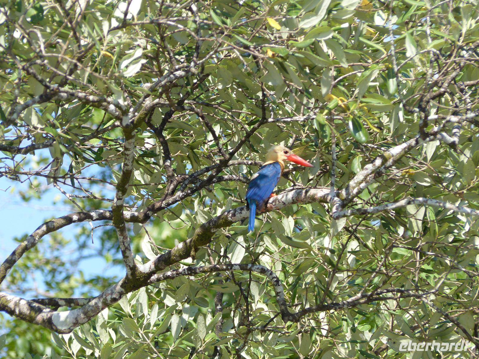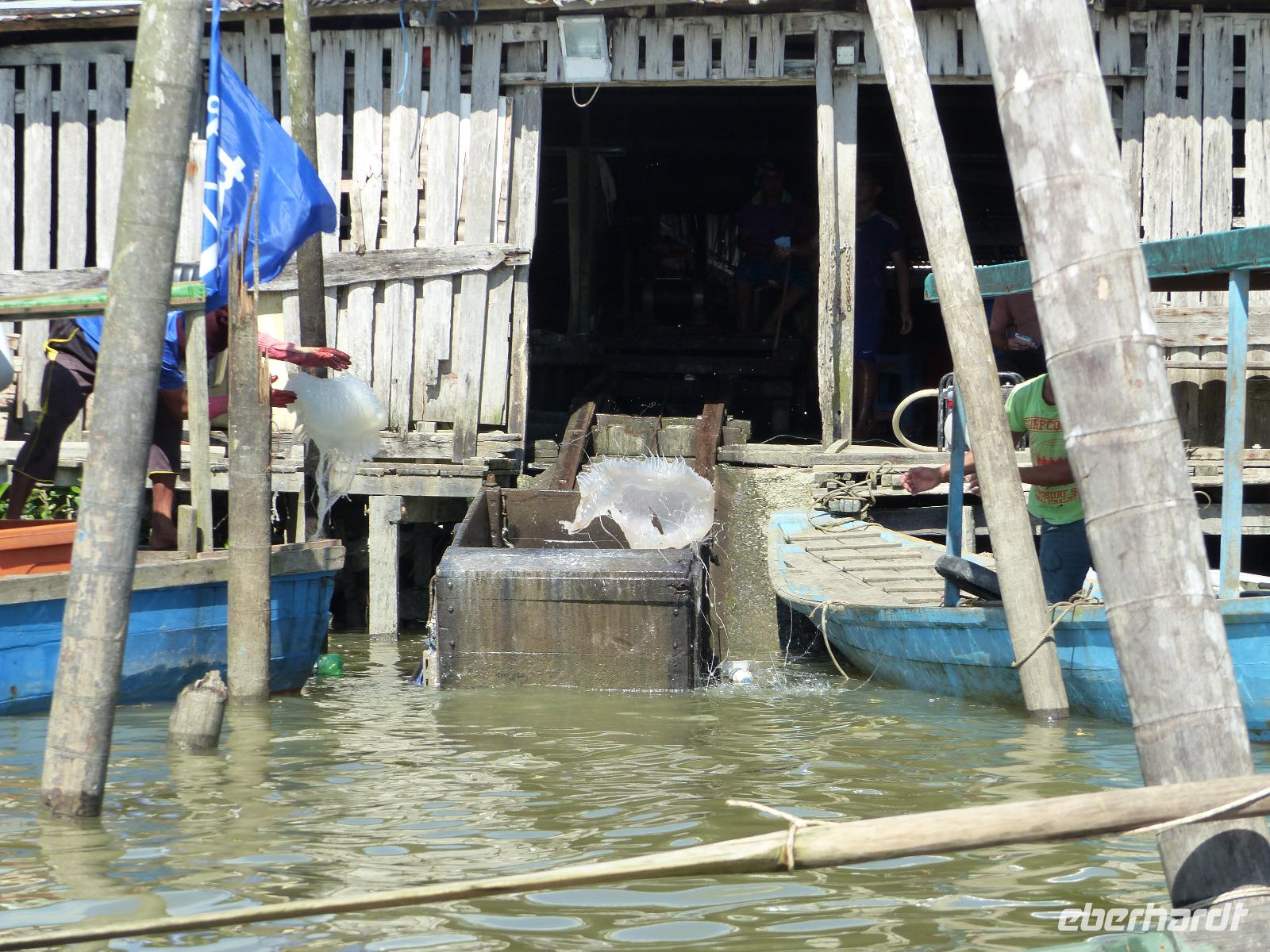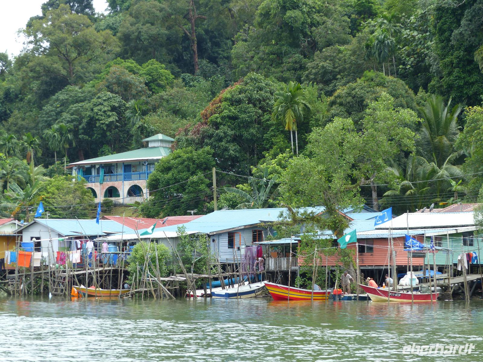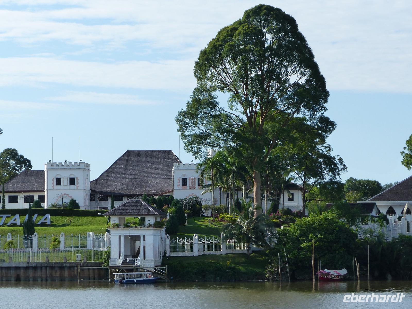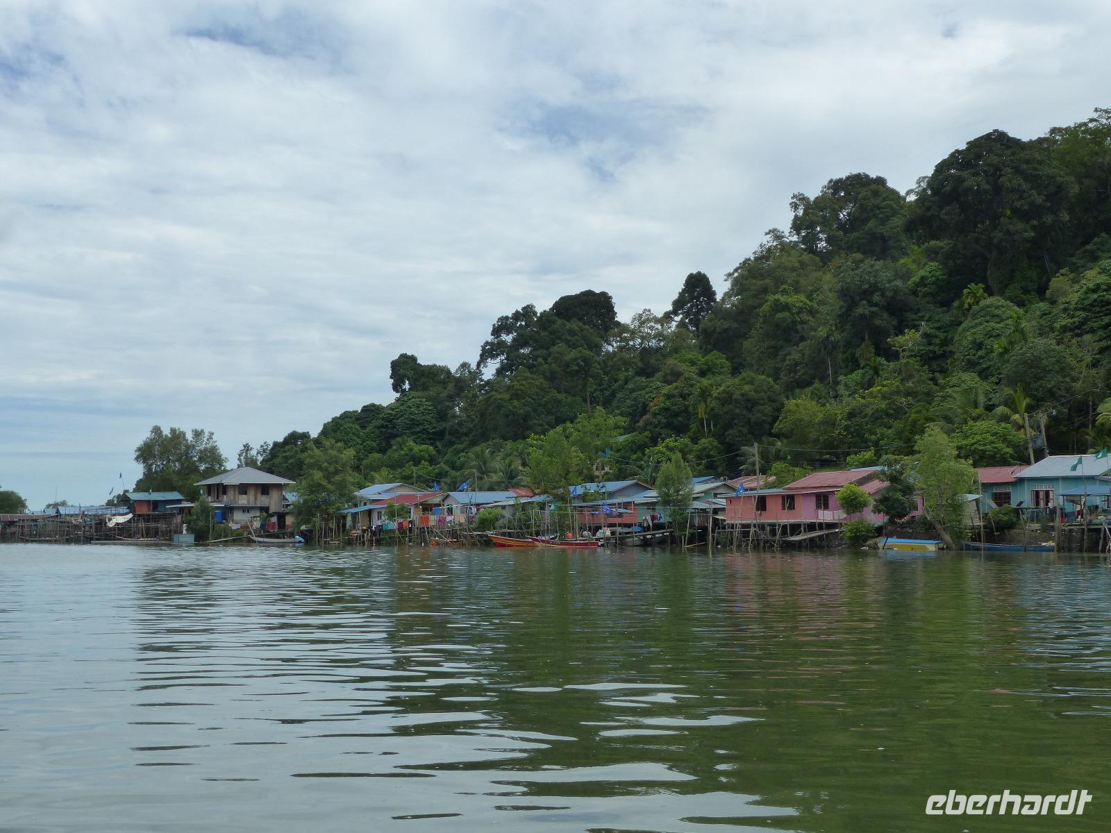 Gegen 9 Uhr starten wir heute unsere Tour in Richtung Santubong Halbinsel. Wir verlassen Kuching und fahren ca. eine halbe Stunde mit dem Bus bevor wir diesen gegen ein Boot eintauschen. Das Wetter ist heute ideal für Tierbeobachtungen, denn es regnet nicht und zugleich ist es nicht zu heiß, da Wolken eine direkte Sonneneinstrahlung verhindern. Unsere Bootsfahrt führt uns Flussabwärts in den Mündungsbereich des Santubong-Flusses. Hier halten wir nun besonders unsere Augen offen, denn die seltenen Irrawaddy Delfine sind hier mit etwas Glück im Wasser zu entdecken. Eine wulstige Stirn, eine auffallend kurze Schnautze und eine Körperlänge von 2,8 Meter sind charakteristisch für diese stark bedrohte Tierart. Dann wird das Boot auf einmal langsamer und etwas rosanes taucht kurz an der Wasseroberfläche auf- mit staunen stellen wir fest, so eben eine andere Delfinart gesehen zu haben- einen Indopazifischen Buckeldelfin. Mit wachsamen Augen beobachten wir weiter und es dauert nicht lange, und auch der erste Irrawaddy Delfin zeigt sich- ein wunderschönes und einmaliges Erlebnis! Während unserer Fahrt in den Kuching Wetlands Nationalpark, können wir nun immer wieder an verschiedenen Stellen Irrawaddy Delfine entdecken. Aber auch ein Krokodil zeigt sich uns am Ufer während wir durch die Mangroven fahren. Bevor es dann zurück zur Bootsanlegestelle geht, steigen wir noch in einem malaiischen Fischerdorf aus und unternehmen einen kleinen Spaziergang. Passend zur Mittagszeit begeben wir uns weiter nach Damai, wo wir im Cultural Village zuerst einige leckere einheimische Speisen, wie Hühnchen im Bambusrohr, probieren und dann eine Führung gemeinsam mit unserer Reiseleiterin Nicki durch die Anlage unternehmen. Wir besichtigen die unterschiedlichen Behausungen der Dayak, Malaiien und Chinesen und lernen somit viel über deren unterschiedliche Kultur und Lebensweise kennen. Bei einer anschließenden Tanzvorführung lauschen wir einheimischer Musik und schauen den traditionellen Tänzen der verschiedenen Gruppen zu. Nach der Rückkehr in Kuching am späten Nachmittag, lassen wir uns das Abendessen in einem gemütlichen Restaurant direkt an der Wasserfront schmecken.