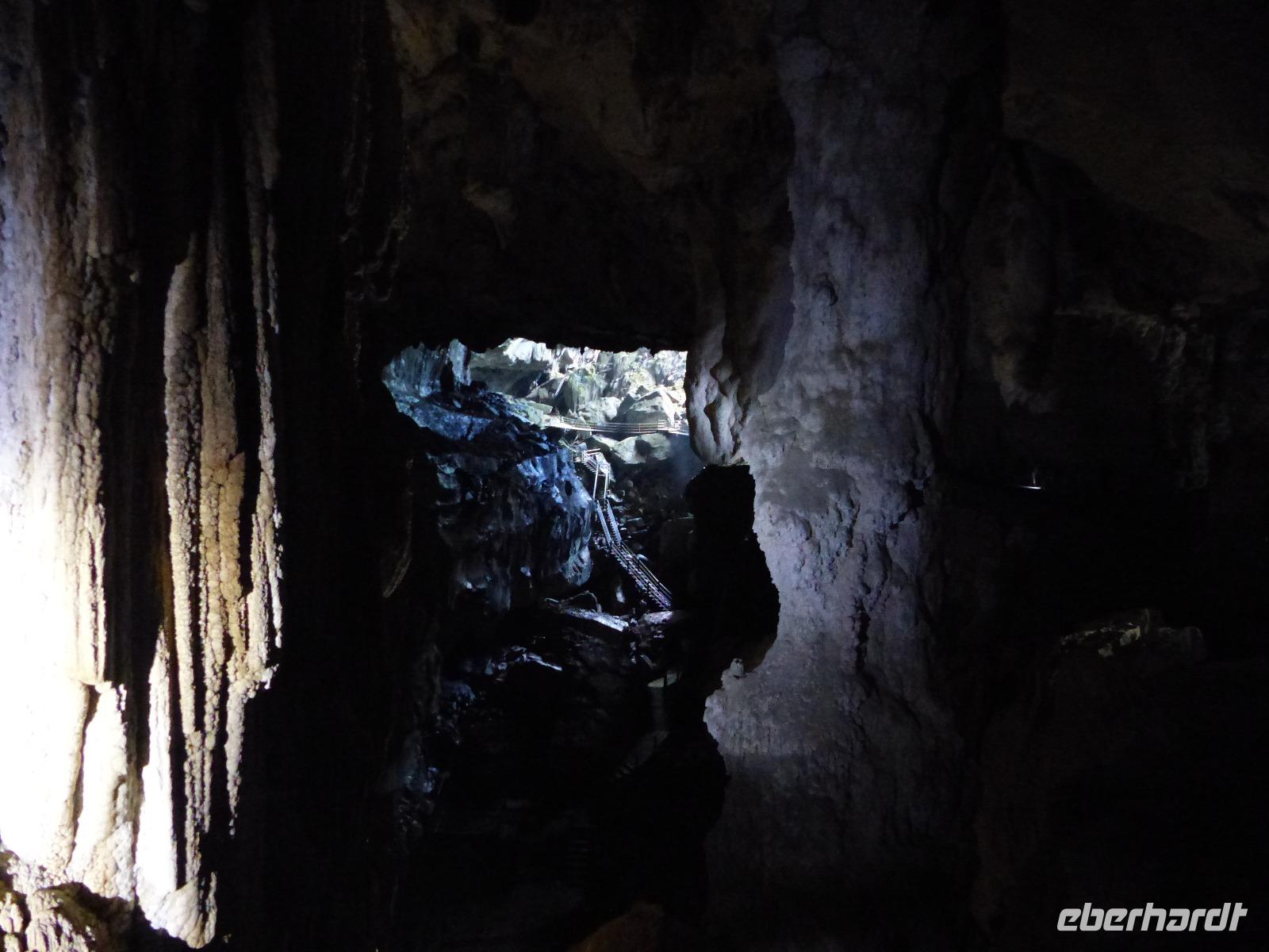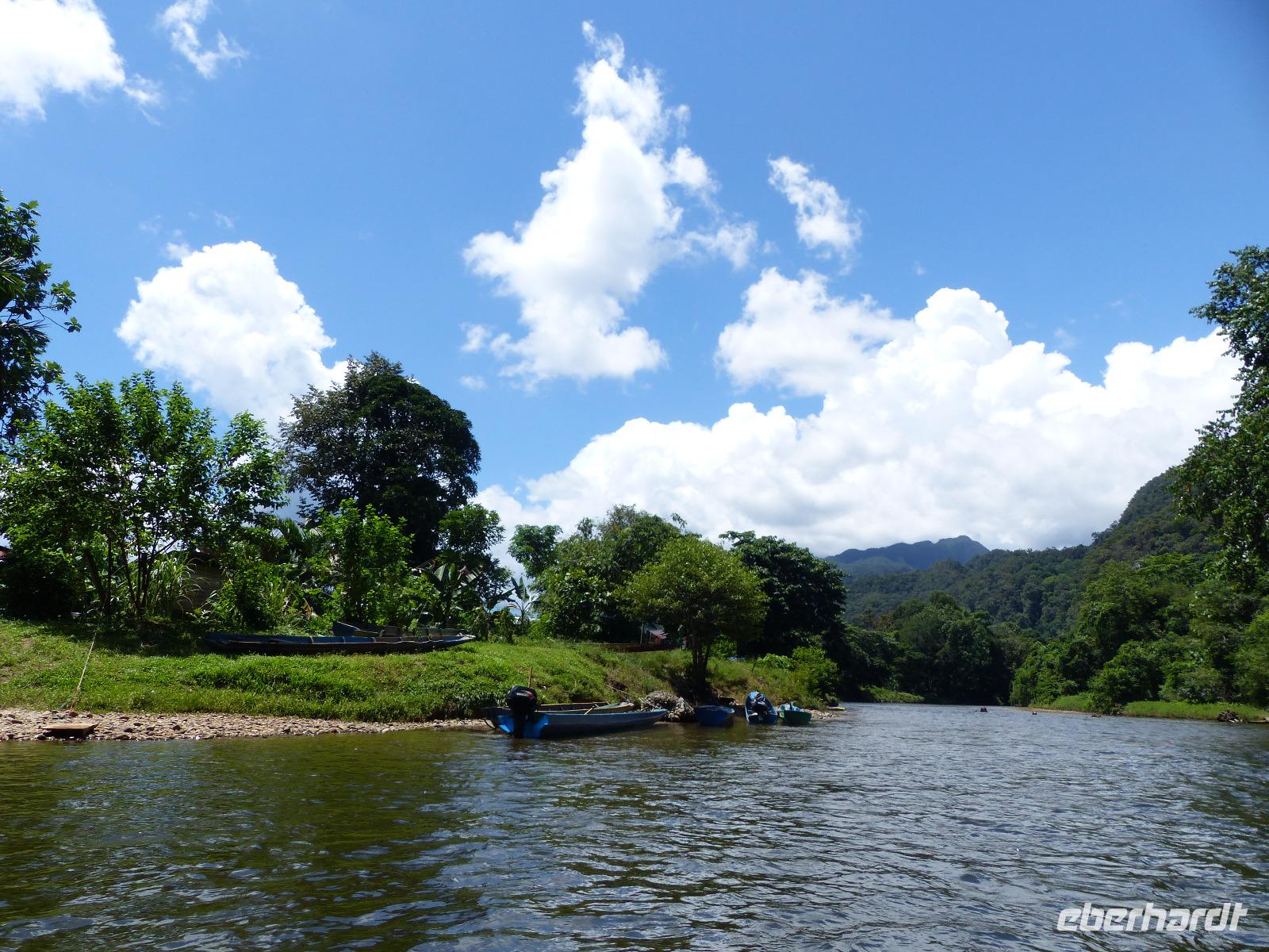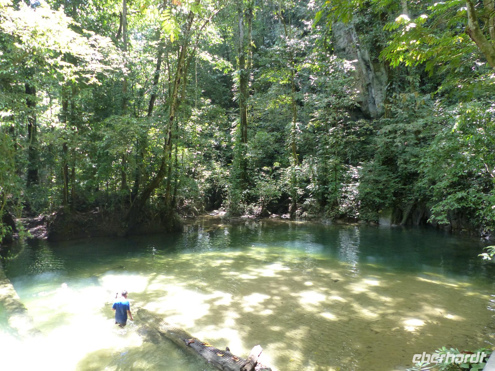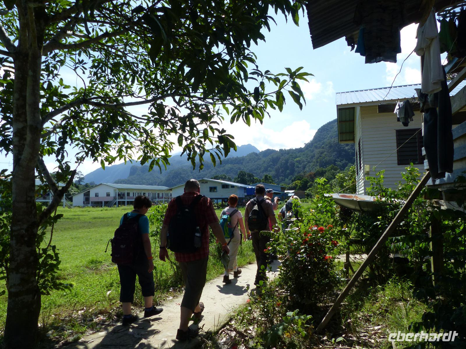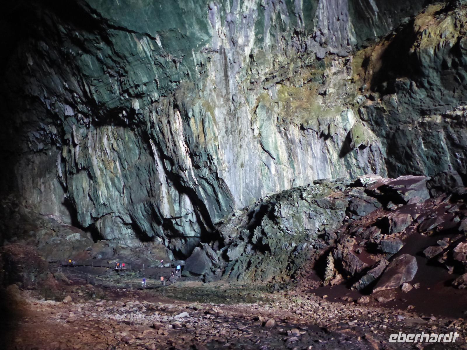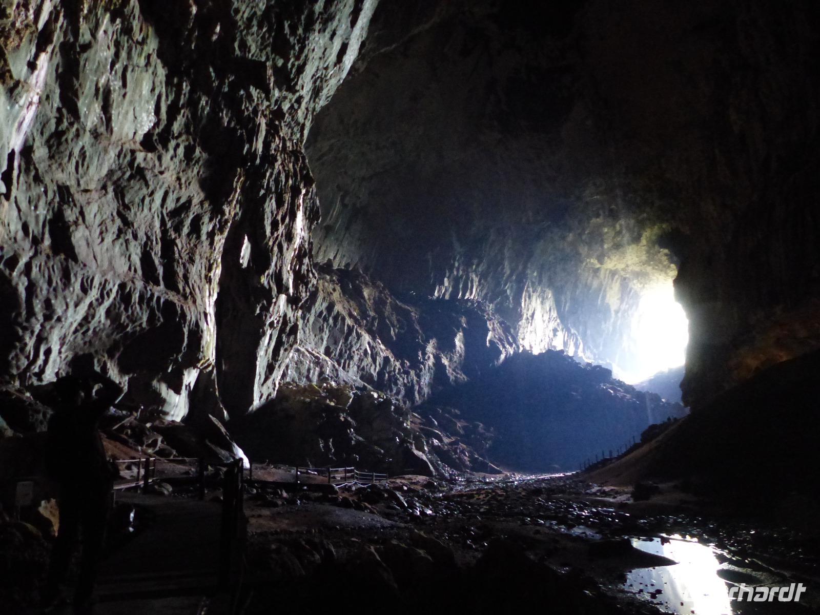 Nach einem ausgedehnten Frühstück begeben wir uns heute erneut auf Höhlentour. Diesmal bewegen wir uns aber nicht nur zu Fuß, sondern auch mit einem traditionellen Langboot fort. Direkt vom Bootssteg des Hotels fahren wir auf dem Fluss entlang bis wir zu einer kleinen Siedlung kommen. Hier steigen wir aus und besuchen den hiesigen Markt, wo verschiedene Handwerksarbeiten zum Kauf angeboten werden. Die sonst als Nomaden lebenden Penan haben sich hier niedergelassen und leben nun von und mit dem Park, durch dessen Besucher sie unteranderem ihr Einkommen erzielen. So wird zum Beispiel das Blasrohrschießen demonstriert, wo sich der ein oder andere von uns auch selbst daran versucht. Im Anschluss geht es für uns weiter zur ersten Höhle des Tages - der Wind Cave. Nach einem kurzen Anstieg haben wir den Eingang der Höhle erreicht und begeben uns in deren Inneres. Besonders fasziniert natürlich die Königskammer, welche mit ihren verschiedenen Stalagtiten und Stalagmiten erneut wunderschöne Gebilde in unseren Köpfen entstehen lässt. Auf einem kleinen Plankenweg spazieren wir im Anschluss weiter zur Clear Water Cave, welche sich nur durch eine Vielzahl an Stufen besuchen lässt. Doch für all diejenigen, die diese Anstrengung nicht in Kauf nehmen möchten, bietet ein klarer natürlicher Pool Erfrischung und ein kleiner Rastplatz Erholung. Für alle anderen heißt es noch einmal schwitzen, und nach ca.200 Stufen bergauf können wir eines der längsten Höhlensysteme der Welt bewundern. Um allerdings die Höhle etwas entdecken zu können, muss man im Inneren erneut diverse Stufen in Kauf nehmen. Eine Treppe führt hinab in ein Labyrinth aus Passagen und Höhlen, welches vom gleichnamigen Clearwater-Fluss durchflossen wird. Als wir wieder bei unserem Picknick-Platz ankommen, hat Kate bereits den Tisch gedeckt und wir können direkt das von ihr selbst gekochte Essen probieren. Nach einer kleinen Pause geht es dann langsam wieder mit dem Boot zurück in Richtung Hotel, wo der ein oder andere die freie Zeit nutzt etwas am Pool zu entspannen oder im Park eine Wanderung durch die Baumwipfel zu unternehmen. Zum Abendessen sind wir dann alle wieder gemeinsam im Restaurant und lassen uns leckere Speisen schmecken. Auch der in Sarawak bekannte Kek Lapis (Schichtkuchen) wird heute als Geburtstagskuchen probiert.