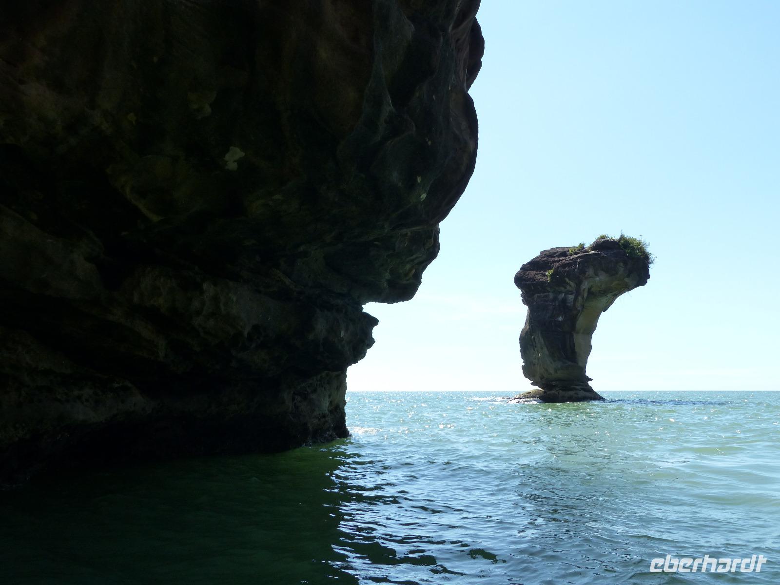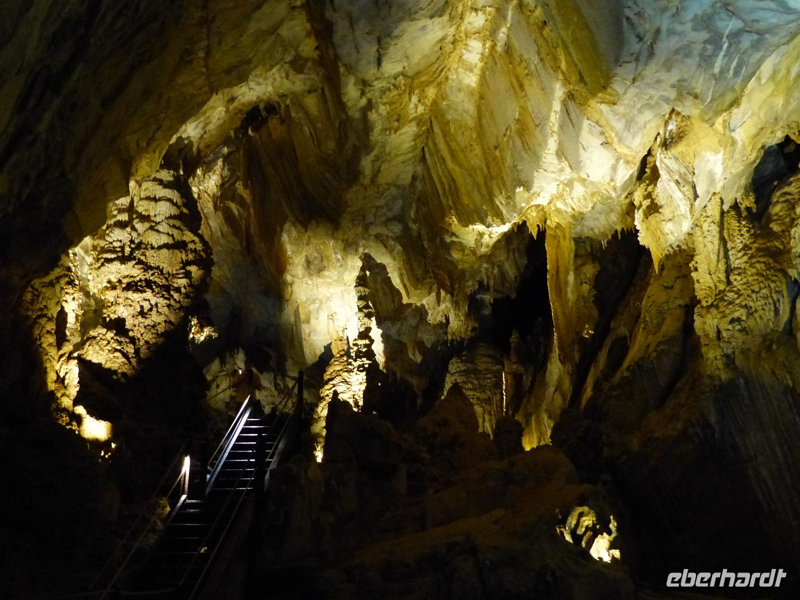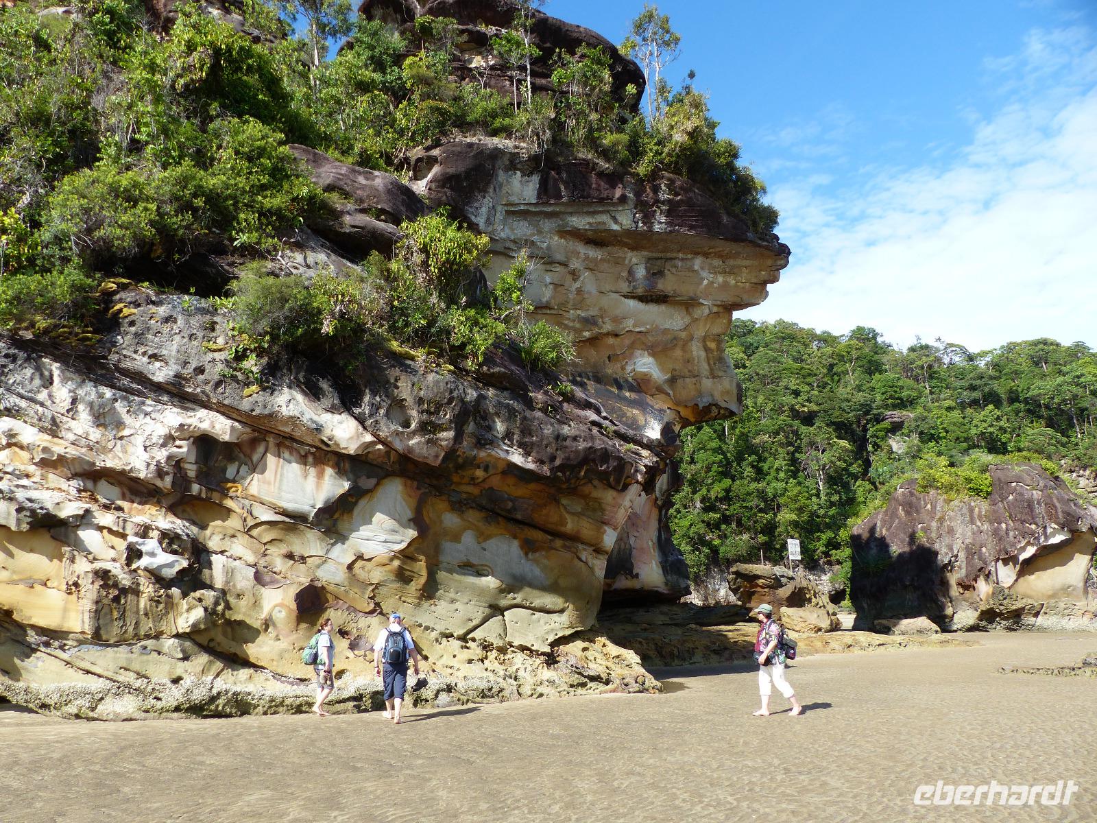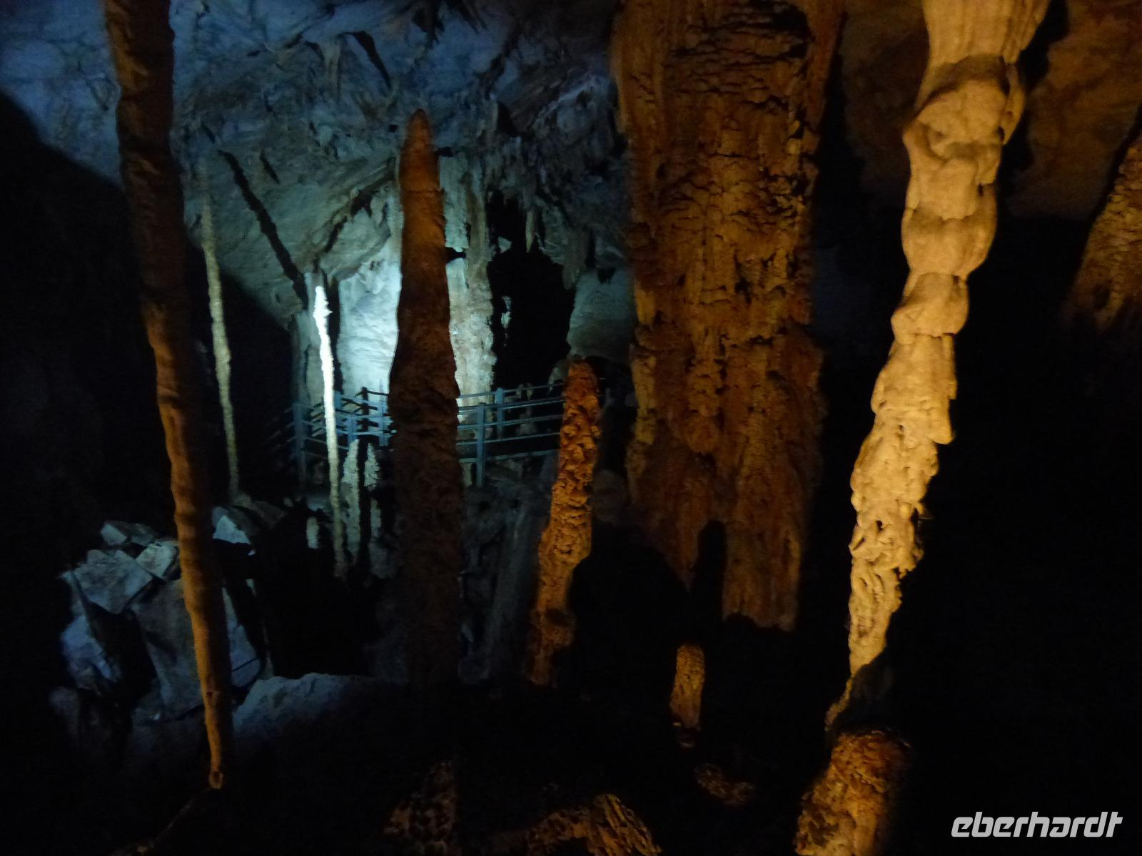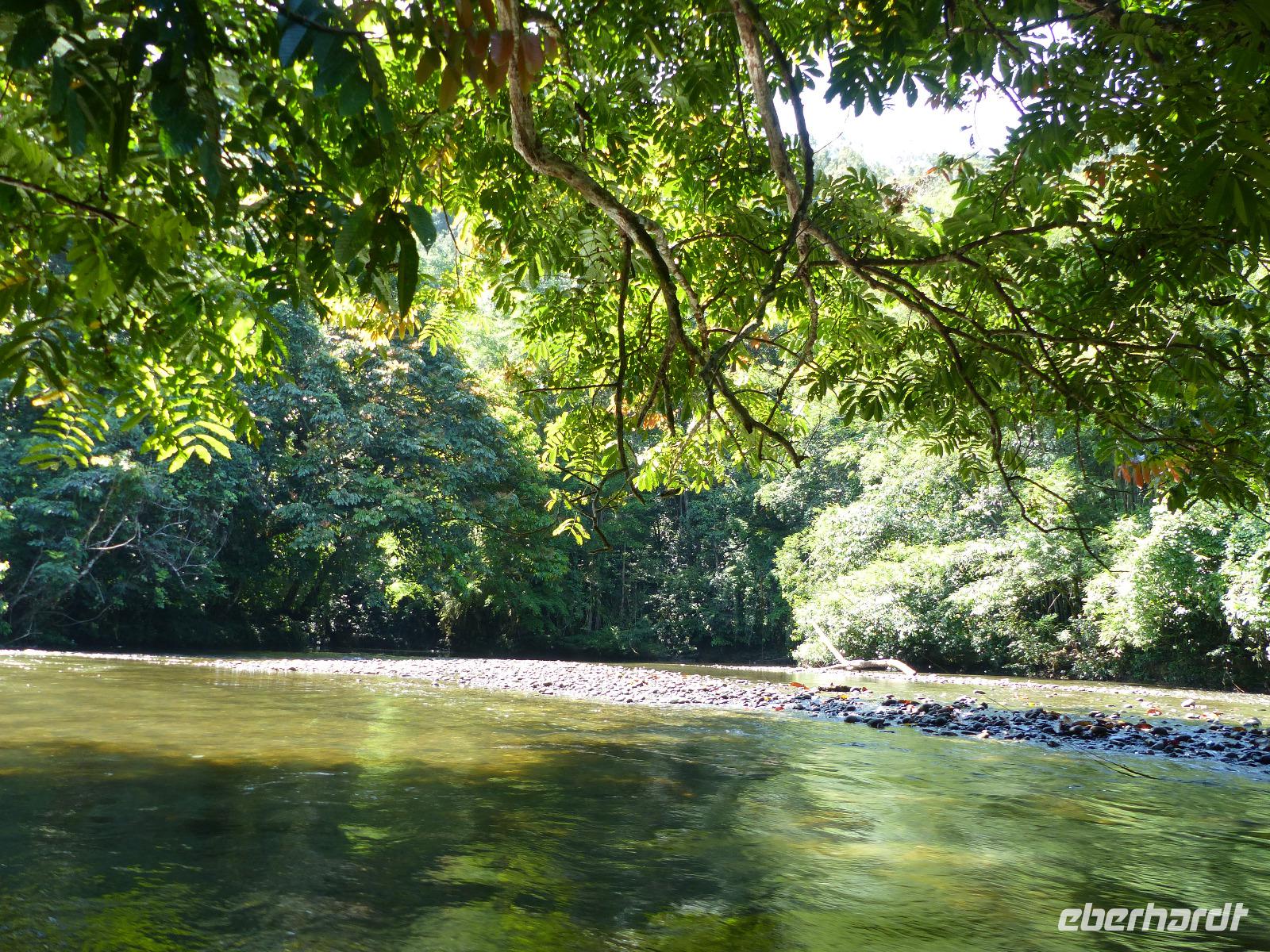 Nach einem ausgedehnten Frühstück begeben wir uns heute erneut auf Höhlentour. Diesmal bewegen wir uns aber nicht nur zu Fuß, sondern auch mit einem traditionellen Langboot fort. Direkt vom Bootssteg des Hotels fahren wir auf dem Fluss entlang bis wir zu einer kleinen Siedlung kommen. Hier steigen wir aus und besuchen den hiesigen Markt, wo verschiedene Handwerksarbeiten zum Kauf angeboten werden. Die sonst als Nomaden lebenden Penan haben sich hier niedergelassen und leben nun von und mit dem Park, durch dessen Besucher sie unteranderem ihr Einkommen erzielen. So wird zum Beispiel das Blasrohrschießen demonstriert, wo sich der ein oder andere von uns auch selbst daran versucht. Im Anschluss geht es für uns weiter zur ersten Höhle des Tages - der Wind Cave. Nach einem kurzen Anstieg haben wir den Eingang der Höhle erreicht und begeben uns in deren Inneres. Besonders fasziniert natürlich die Königskammer, welche mit ihren verschiedenen Stalagtiten und Stalagmiten erneut wunderschöne Gebilde in unseren Köpfen entstehen lässt. Auf einem kleinen Plankenweg spazieren wir im Anschluss weiter zur Clear Water Cave, welche sich nur durch eine Vielzahl an Stufen besuchen lässt. Doch für all diejenigen, die diese Anstrengung nicht in Kauf nehmen möchten, bietet ein klarer natürlicher Pool Erfrischung und ein kleiner Rastplatz Erholung. Für alle anderen heißt es noch einmal schwitzen, und nach ca.200 Stufen bergauf können wir eines der längsten Höhlensysteme der Welt bewundern. Um allerdings die Höhle etwas entdecken zu können, muss man im Inneren erneut diverse Stufen in Kauf nehmen. Eine Treppe führt hinab in ein Labyrinth aus Passagen und Höhlen, welches vom gleichnamigen Clearwater-Fluss durchflossen wird. Als wir wieder bei unserem Picknick-Platz ankommen, hat Kate bereits den Tisch gedeckt und wir können direkt das von ihr selbst gekochte Essen probieren. Nach einer kleinen Pause geht es dann langsam wieder mit dem Boot zurück in Richtung Hotel, wo der ein oder andere die freie Zeit nutzt etwas am Pool zu entspannen oder im Park eine Wanderung durch die Baumwipfel zu unternehmen. Zum Abendessen sind wir dann alle wieder gemeinsam im Restaurant und lassen uns leckere Speisen schmecken. Auch der in Sarawak bekannte Kek Lapis (Schichtkuchen) wird heute als Geburtstagskuchen probiert.
