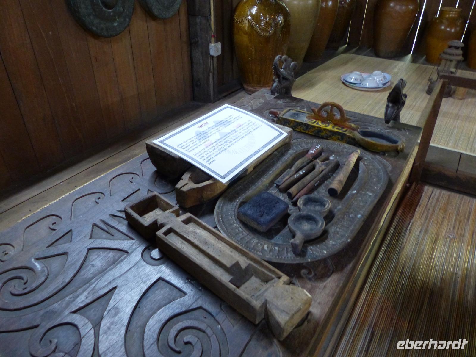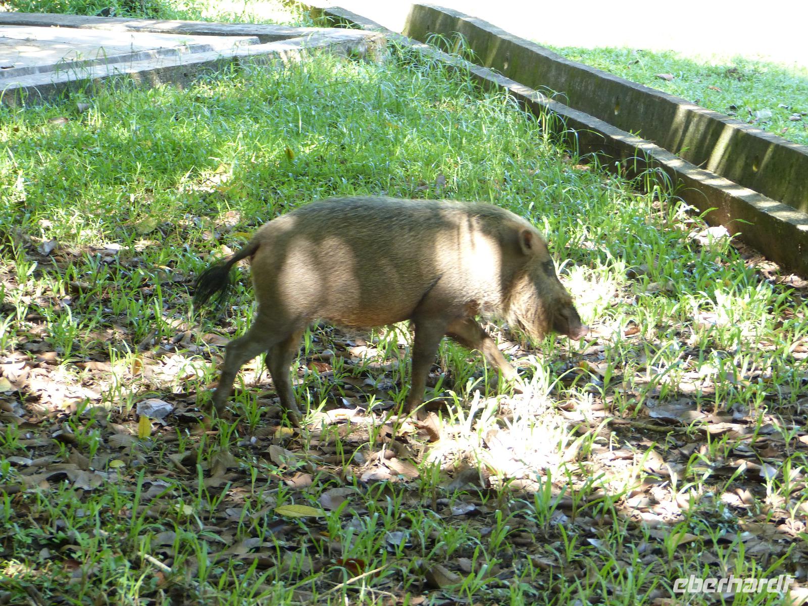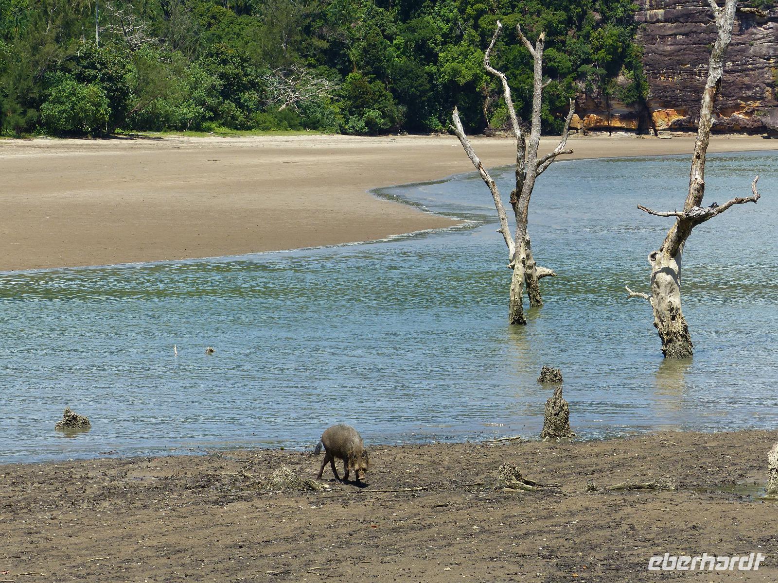 Nicht allzu spät unternehmen wir heute einen Ganztagesausflug in den Bako Nationalpark, einem der kleinsten und zu gleich ältesten Nationalparks in Sarawak. Mit dem Bus geht es zunächst aus Kuching raus, bis wir im Bako Dorf ankommen. Da keine Straße in den Nationalpark hinein führt , wechseln wir hier das Transportmittel und fahren per Boot weiter. Aufgrund des niedrigen Wasserspiegels (Ebbe) steigen wir direkt am Strand aus. Wir klettern aus den Booten heraus und werden sogleich von einer beeindruckenden Natur empfangen- insgesamt 7 von 9 Vegetationszonen sind hier im Park vertreten! Nach dem wir unsere Füße vom Sand befreit und etwas Mückenschutz aufgetragen haben, begeben wir uns auf einen ersten Entdeckungsspaziergang, denn bereits ringsherum um das Hauptgebäude des Parks sind oftmals viele der hier lebenden Tiere zu beobachten. Und wir haben Glück, eines der sehr selten zu sehenden Tiere erwartet uns schlafenderweise nach wenigen Schritten. Ein fliegender Lemur, dessen Name sehr irreführend ist, da er weder mit einem Lemur verwandt ist, noch Flugeigenschaften besitzt. In unmittelbarer Nähe beginnt dann ein weiteres Suchspiel, eine Lanzenotter ist im dichten Grün kaum zu erkennen. Langsam begeben wir uns weiter in Richtung Bootsanlegestelle und lauschen Nickis Erklärungen zu vielen Pflanzen die den Wegesrand säumen. Es ist erstaunlich wie viele Pflanzen als Apotheke oder Baumarkt genutzt werden können. So beeindruckt zum Beispiel die Nibong Palme, deren Holz gut für den Hausbau geeignet und das Palmenmark essbar ist, sowie die Blätter als Wasserbehälter dienen. Bei unserem Spaziergang durch die Mangroven, lernen wir in Bako 3 verschiedene Typen kennen. Leider können wir die hier lebenden Langnasenaffen, welche nur auf Borneo vorkommen, nicht entdecken. Aber dafür überrascht uns eines der vielen Bartschweine mit einem Spaziergang am Strand. Nach einem kleinen Snack am Mittag, geht es dann auf eine kleine Wanderung. Entlang des Delima Trails laufen wir zuerst einen Plankenweg entlang und biegen dann auf einen Waldweg ab. Nun geht es weiter über Stock und Stein bis hin zu den Mangroven. Hier pausieren wir etwas und ändern kurzerhand unseren Plan- einmal einsteigen bitte! Als kleine Überraschung haben wir unsere Boote bereits hierher bestellt und eine kleine extra Fahrt inkludiert. Bald heißt es Abschied nehmen vom wunderschönen Bako Nationalpark, sodass wir am Nachmittag in Kuching zurück sind. Wie versprochen, unternehmen wir noch den letzten Teil unserer Stadtführung- die alte Staatsmosche, die Indiastreet und die durch einen Schleichweg zu erreichende Gambierstreet, welche mit allerhand Gewürzen auf uns wartet, stehen auf dem Programm.