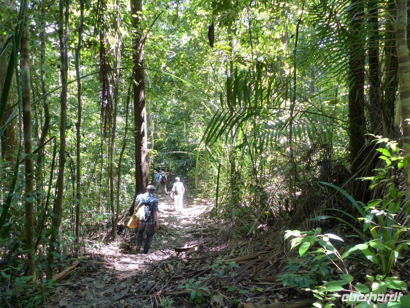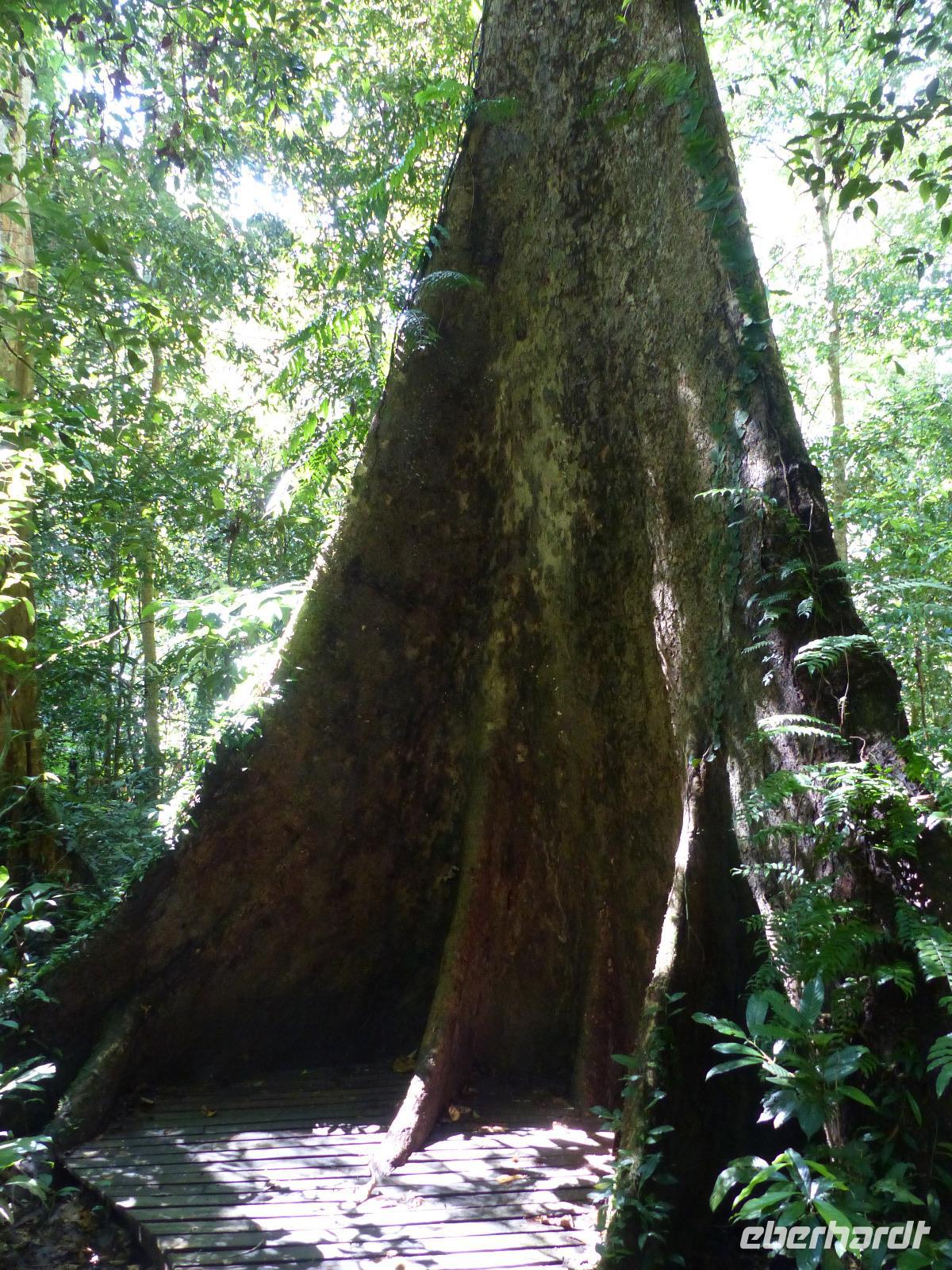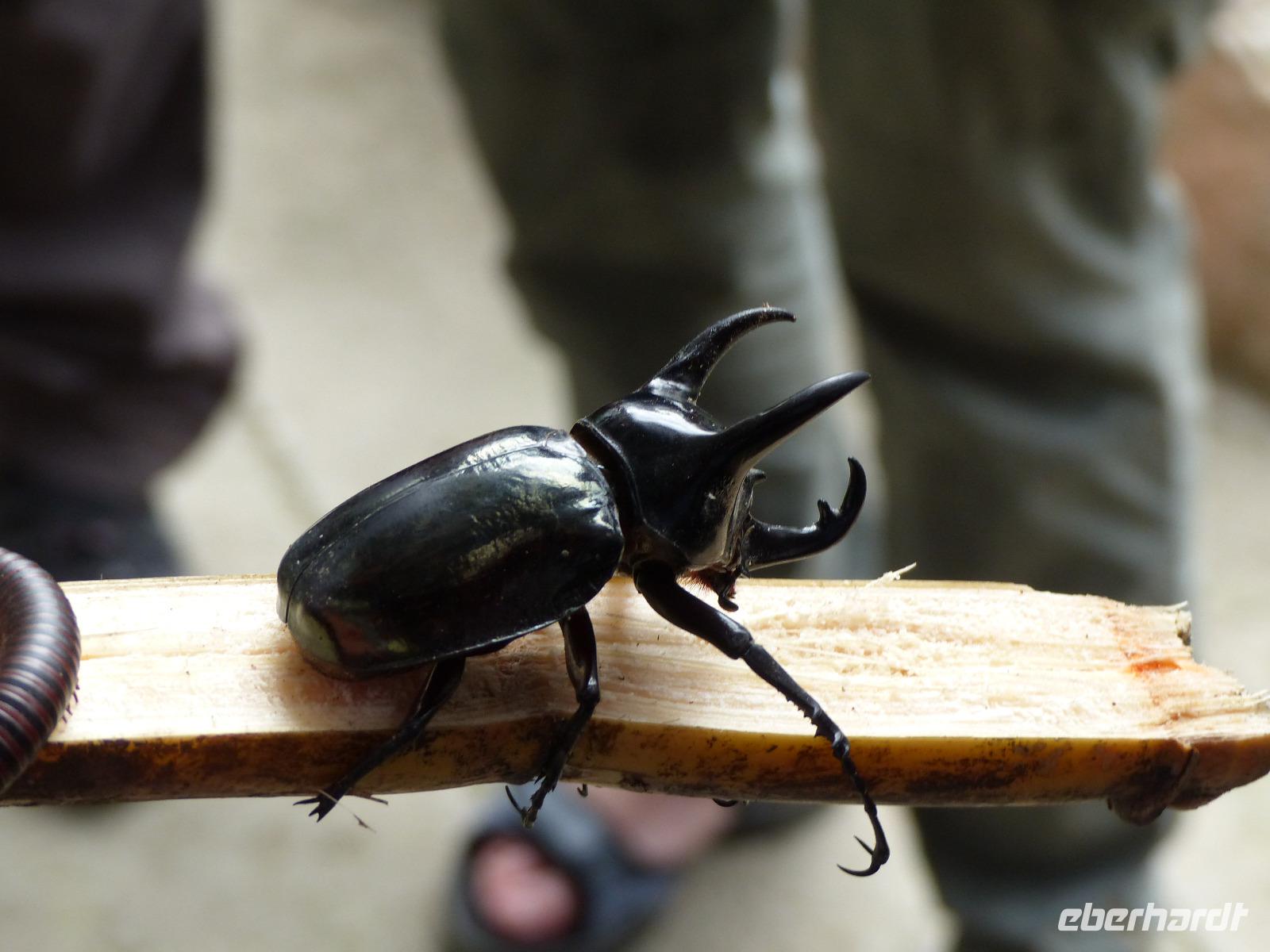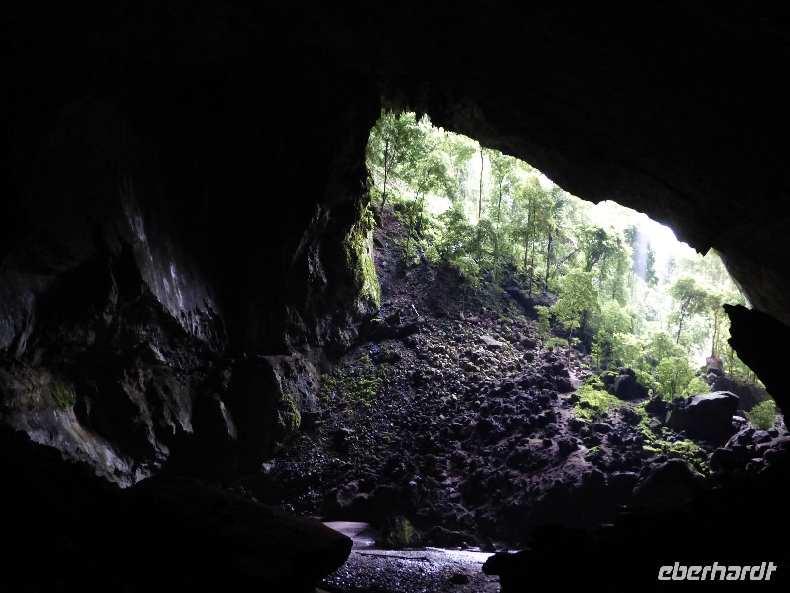 Nach dem alle Koffer gepackt sind, geht es für uns heute weiter in die dschungelbedeckte Bergwelt Borneos. Mulu wartet mit seinen einzigartigen Höhlen auf uns. Mit einer Propellermaschine verlassen wir Kuching und landen gegen Mittag in unserer neuen Destination. Um keine Zeit zu verlieren, begeben wir uns direkt in den Park und essen hier eine Kleinigkeit zu Mittag. Dann machen wir uns fertig und unser Ausflug zur Lang und Deer Cave beginnt. Über einen Plankenweg begeben wir uns zu den beiden Höhlen und staunen schon gleich zu Beginn wieder über diese wunderschöne Natur- und Pflanzenwelt. Nicki und Kate halten beide die Augen und Ohren offen, sodass wir erneut neue kleine Tierchen und Pflanzen entdecken können. So zeigt sich zum Beispiel ein Laternenkäfer, welcher besonders durch seine auffällige „Nase" begeistert. Nach rund 4 Kilometern entspanntem Laufen, kommen wir bei den beiden Höhlen an und beginnen unmittelbar mit der Besichtigung. Zuerst geht es für uns in die Lang Cave, welche direkt nach ihrem Entdecker Lang Belarek benannt wurde. Sie ist nicht die größte, aber wohl mit einer der schönsten die der Gunung Mulu Nationalpark zu bieten hat. Viele in unterschiedlichsten Formen vorkommende Stalagmiten, Stalagtiten und Vorhänge erwarten uns hier. Im Anschluss geht es dann in die wohl beeindruckendste Höhle im Park, wenn nicht sogar weltweit- der Deer Cave, der längsten Höhlenpassage der Welt. Nach dem Verlassen der Höhle nehmen wir außerhalb Platz und warten auf ein Naturschauspiel der Extraklasse. Wenn alle Bedingungen passen, verlassen hier Millionen von Fledermäusen zur Dämmerung die Höhlen und schwärmen zur Futtersuche aus. Und nach etwas Geduld können wir tatsächlich die unterschiedlichsten Formationen am Himmel entdecken. Verschwitzt aber begeistert, begeben wir uns im Dunklen auf unseren Rückweg und kommen am Abend in unseren Resort an. Bei einem leckeren Abendessen lassen wir den Tag ausklingen.