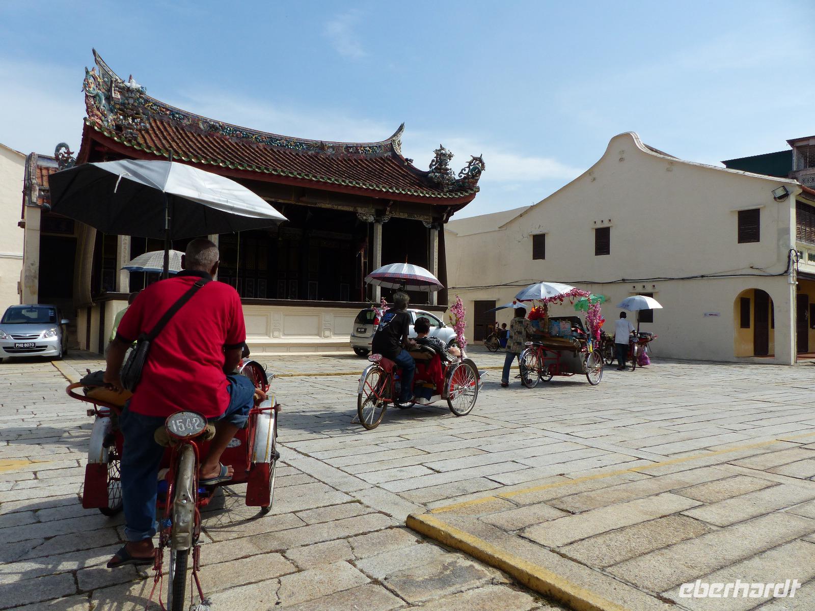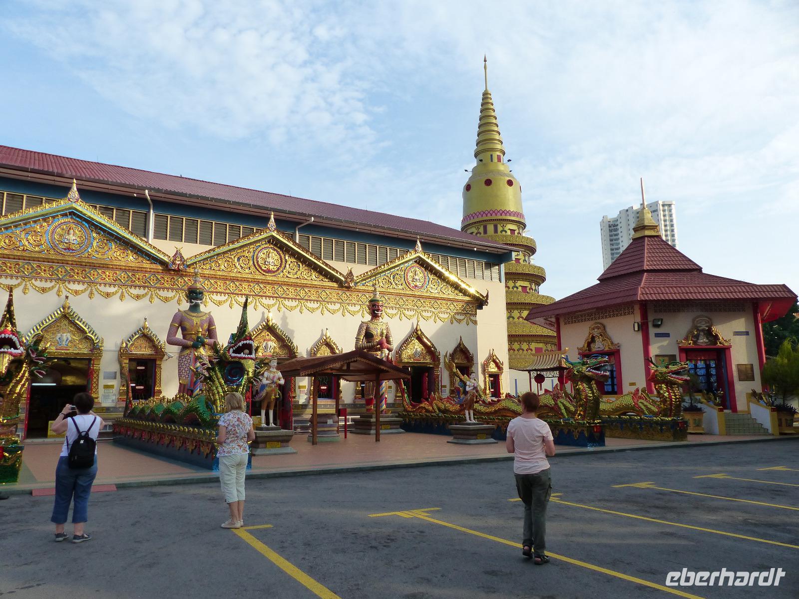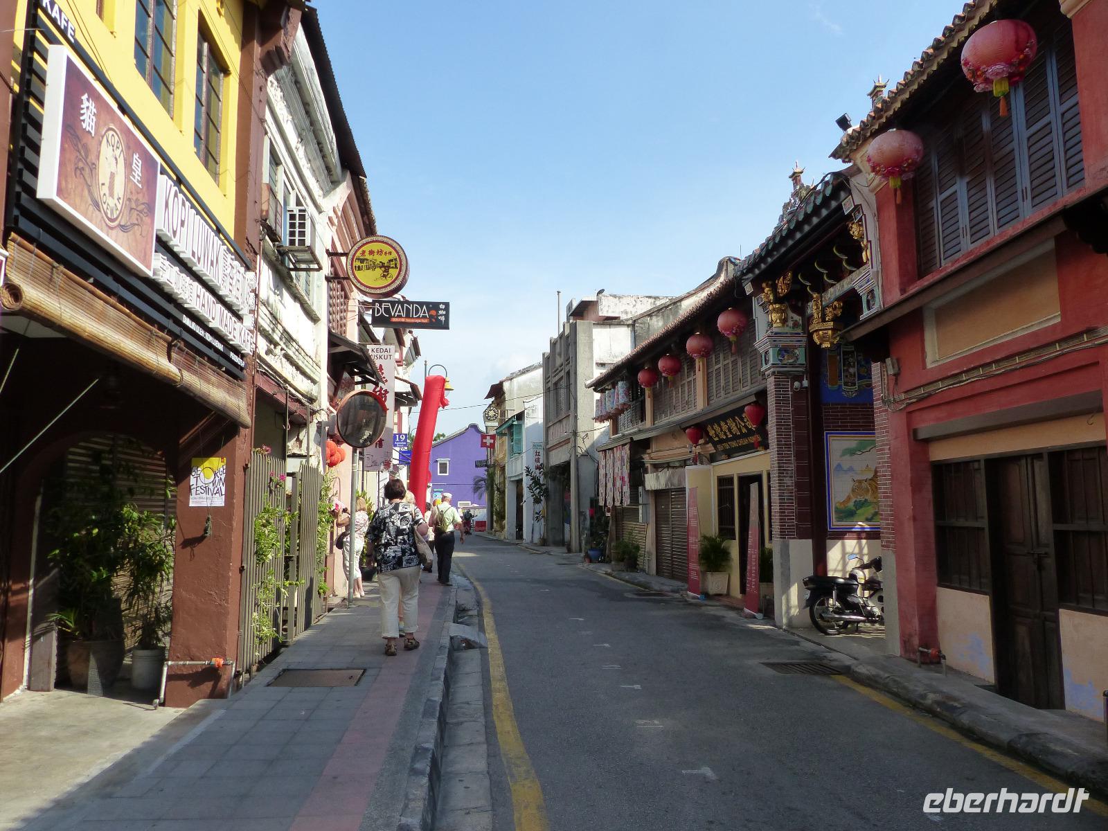 Der heutige Tag beginnt für uns ganz entspannt. Erst am Vormittag treffen wir uns mit gepackten Koffern in der Lobby des Hotels und treten unsere Weiterreise nach Westmalaysia an. Mit einem kurzen Fotostopp an der Staatsmoschee Kota Kinabalus werden wir zum Flughafen gebracht. Es heißt nun Abschied nehmen von der einmaligen Natur und Kultur Borneos, welche uns in der kurzen Zeit doch sehr begeistert und fasziniert hat. Unsere Reise führt uns nun in einen anderen Teil Malaysias. Mit einem kurzen Umsteigestopp in Kuala Lumpur fliegen wir gegen Mittag auf die Insel Penang, wo wir von unserem neuen Reiseleiter Eddie herzlich begrüßt werden. Am frühen Abend geht es für uns direkt ins Hotel, wo wir nach einer kurzen Erfrischungspause bereits unser Abendessen serviert bekommen. Im Anschluss unternehmen wir gemeinsam in der Gruppe einen kleinen Abendspaziergang. Vorbei an unzähligen Garküchen, halten wir an einem kleinen Wagen und kaufen ein kleines Päckchen mundgerechte Durian. Die auch unter dem Namen Stinkfrucht bekannte Frucht, hat zur Zeit Saison, und wer möchte sich die Chance entgehen lassen, diese unter den Einheimischen beliebte Frucht nicht einmal probiert zu haben?! Unsere Meinung: nunja, ein Hochgenuss ist es für uns Europäer nicht, aber Durian ist definitiv essbar und doch fast schmackhafter als Anfangs angenommen.