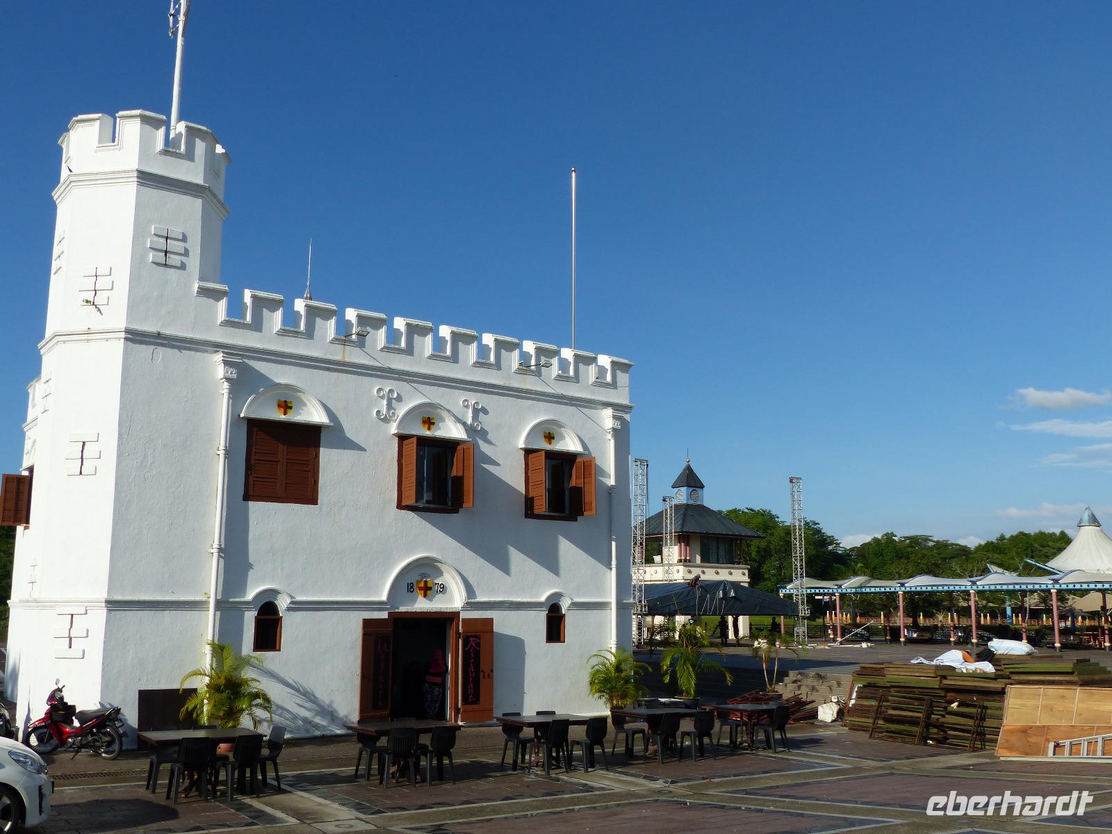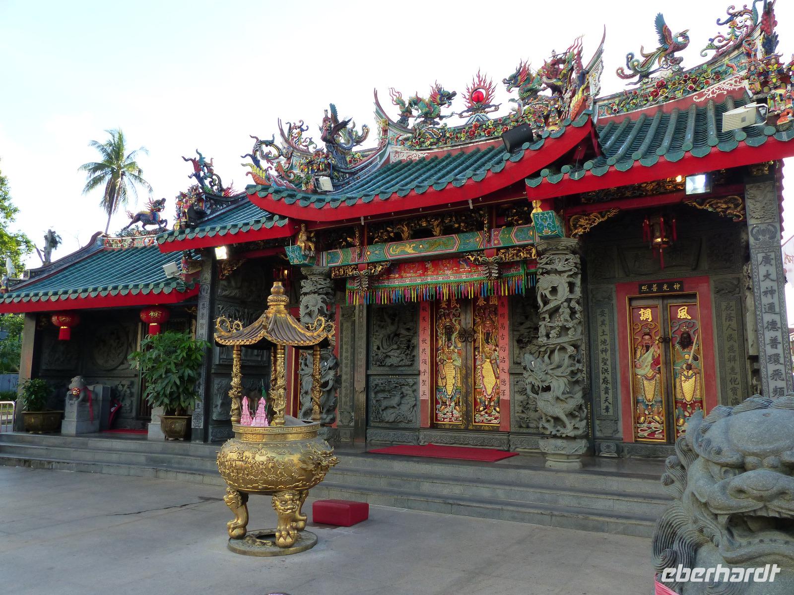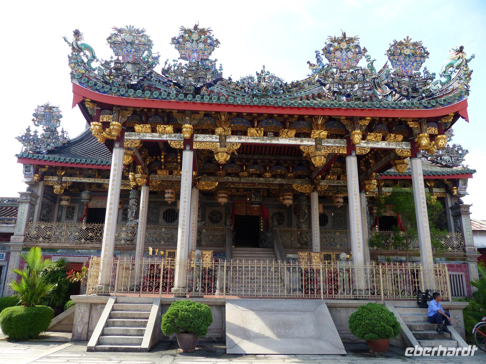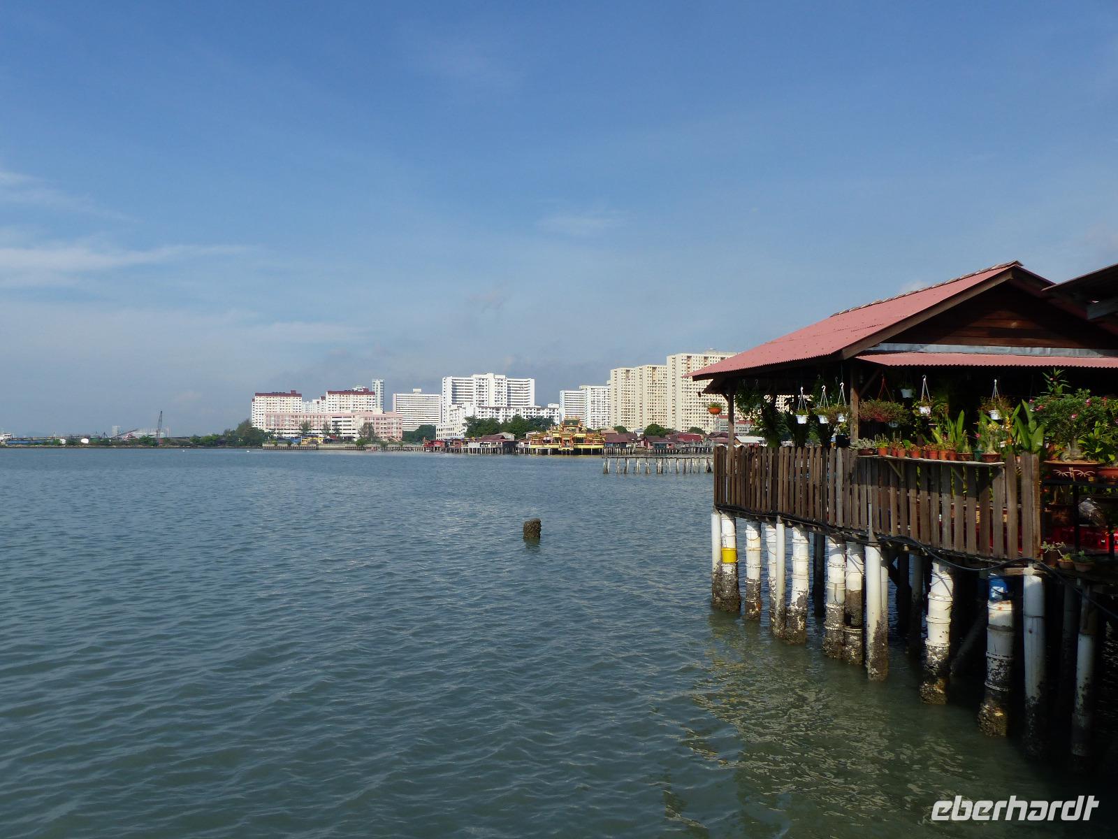 Der heutige Tag beginnt für uns ganz entspannt. Erst am Vormittag treffen wir uns mit gepackten Koffern in der Lobby des Hotels und treten unsere Weiterreise nach Westmalaysia an. Mit einem kurzen Fotostopp an der Staatsmoschee Kota Kinabalus werden wir zum Flughafen gebracht. Es heißt nun Abschied nehmen von der einmaligen Natur und Kultur Borneos, welche uns in der kurzen Zeit doch sehr begeistert und fasziniert hat. Unsere Reise führt uns nun in einen anderen Teil Malaysias. Mit einem kurzen Umsteigestopp in Kuala Lumpur fliegen wir gegen Mittag auf die Insel Penang, wo wir von unserem neuen Reiseleiter Eddie herzlich begrüßt werden. Am frühen Abend geht es für uns direkt ins Hotel, wo wir nach einer kurzen Erfrischungspause bereits unser Abendessen serviert bekommen. Im Anschluss unternehmen wir gemeinsam in der Gruppe einen kleinen Abendspaziergang. Vorbei an unzähligen Garküchen, halten wir an einem kleinen Wagen und kaufen ein kleines Päckchen mundgerechte Durian. Die auch unter dem Namen Stinkfrucht bekannte Frucht, hat zur Zeit Saison, und wer möchte sich die Chance entgehen lassen, diese unter den Einheimischen beliebte Frucht nicht einmal probiert zu haben?! Unsere Meinung: nunja, ein Hochgenuss ist es für uns Europäer nicht, aber Durian ist definitiv essbar und doch fast schmackhafter als Anfangs angenommen.