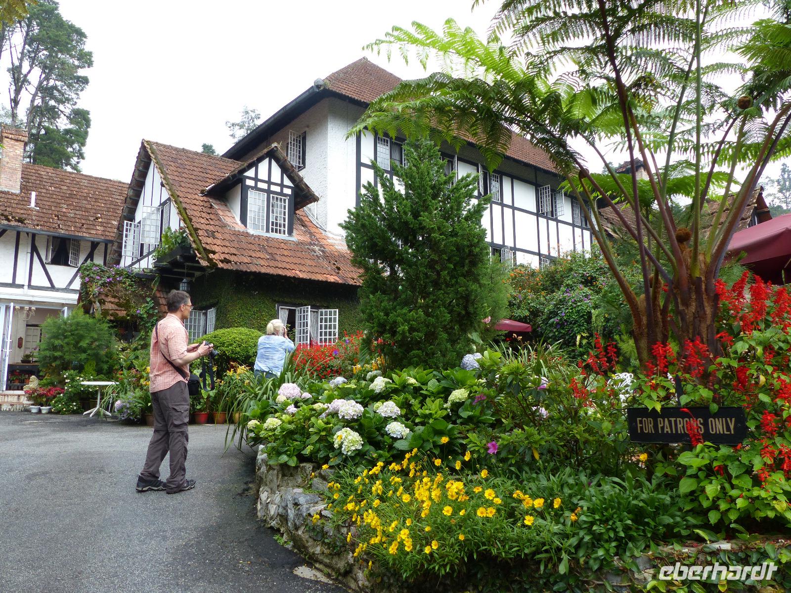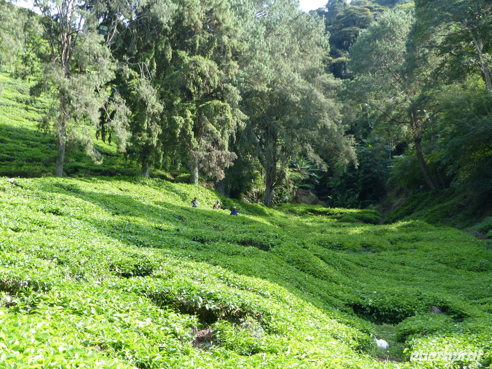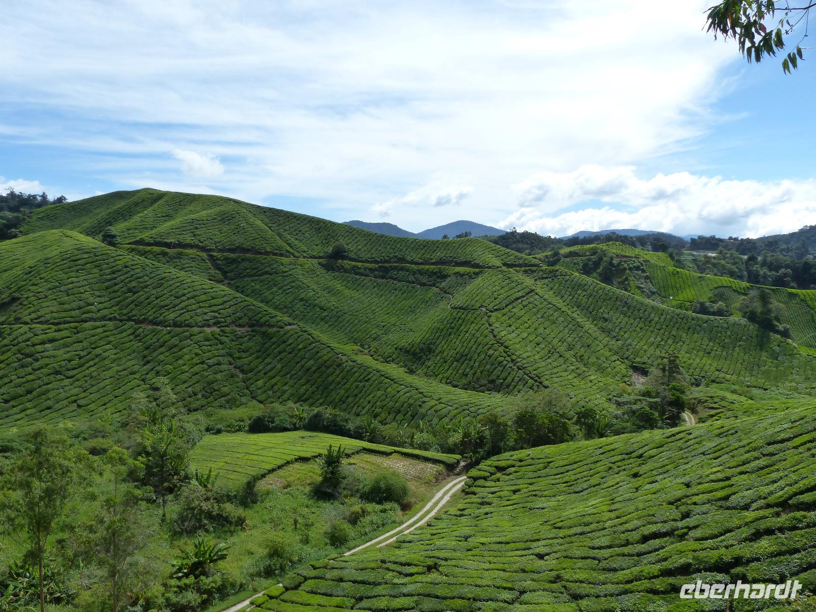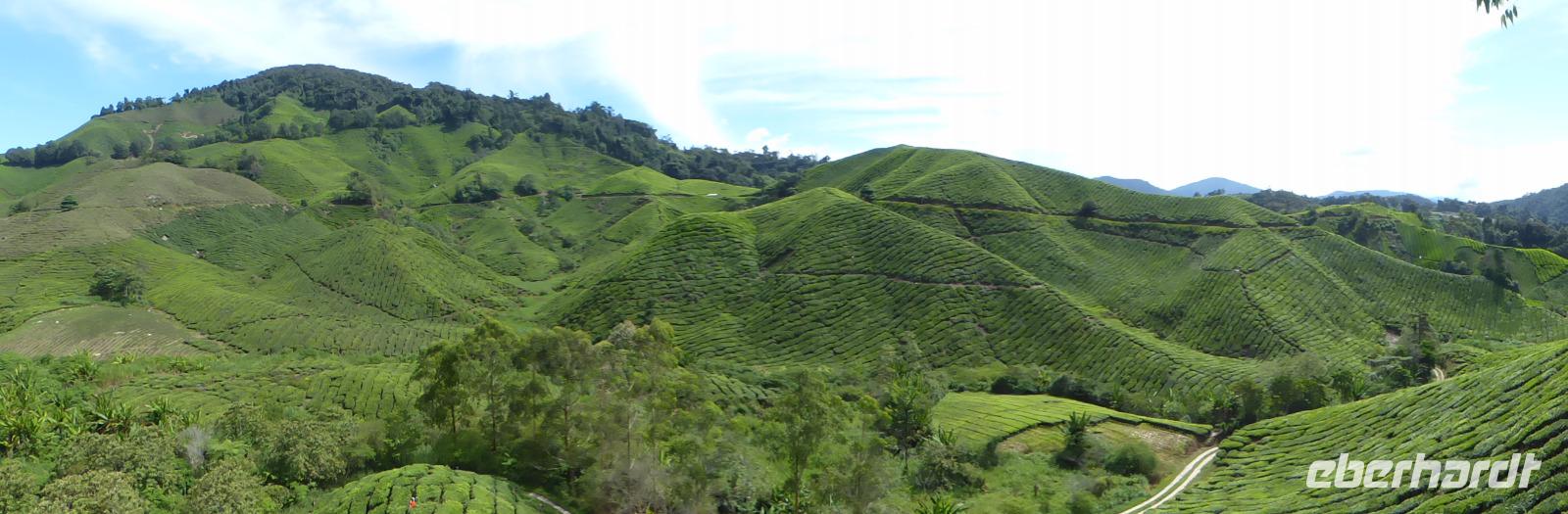 Mit herrlichem Sonnenschein und wunderbar angenehmen Temperaturen beginnen wir heute unseren Tag. Nach einem ausgedehnten Frühstück fahren wir zuerst mit unserem Bus und später mit einem alten Schulbus in das Teeanbaugebiet der Firma BOH - Best of Highlands. Über 4000 Hektar gehören zu der im Jahre 1929 gegründeten Plantage. Nach einem kleinen Spaziergang entlang der Teesträucher führt uns Eddie in die Fabrik, sodass wir auch einen Einblick über den Tee-Verarbeitungsprozess erhalten. Natürlich darf im Anschluss eine Tasse Tee nicht fehlen. Im angrenzenden Café nehmen wir uns daher die Zeit und genießen einen frischen schwarzen Tee. Dann geht es für uns weiter und der Besuch einer Schmetterlingsfarm steht auf dem Programm. Doch was wir hier erleben, steigt über unsere Vorstellung hinaus. Nicht nur Schmetterlinge sind hier zu Hause, sondern noch viele andere kleine Tiere und das in regelrechter Tuchfühlung mit uns. So krabbelt bei einem die Gottesanbeterin auf der Hand, wobei bei einem anderen das Stabinsekt auf der Brust sitzt. Natürlich darf der auf dem Kopf nieder gelassene Rajah Brook nicht außer Acht gelassen werden! Gegen Mittag spazieren wir dann noch über einen einheimischen Markt und lassen die Vergangenheit der Cameron Highlands in einer Art kleinem Museum an uns vorbei ziehen. Unser Mittagessen oder diesmal fast schon Kaffeetrinken, lassen wir uns in einem Lokal in Tanah Rata schmecken. Hier haben wir auf ca. 1500m im Anschluss etwas Freizeit, sodass jeder den kleinen Ort individuell entdecken kann. Wieder im Hotel, wartet in nicht allzu großer Ferne unser heutiges Abendessen auf uns. Steamboat- für fast alle eine neue Form asiatisch zu essen!