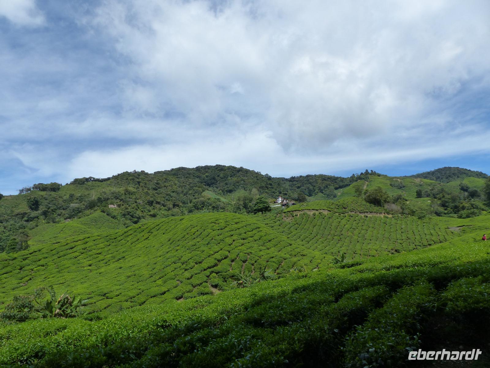 Nicht allzu spät beginnen wir diesen Tag mit dem Besuch von Georg Town, dem alten kolonialen Zentrum der Insel Penang. Zum Unesco Weltkulturerbe gehörend, beeindruckt diese historische Stadt vor allem durch Ihre religiöse Vielfalt und die Architektur der alten herrschaftlichen Paläste. Wir beginnen unsere Entdeckungstour vorerst mit dem Besuch zweier buddhistischer Tempel und starten anschließend zu Fuß am Chew Jetty, einer kleinen Clan-Siedlung in der Nähe des Hafens. Einfache Holzhäuser, welche auf Pfählen bis zu 100m ins Meer hinausgebaut und nur über einen Plankenweg zu erreichen sind. Von hier spazieren wir weiter- eine der vielen Gassen entlang. Auf dem Weg zum Clan Haus Khoo Kongsi, kommen wir an einigen sehr schönen Graffiti-Kunstwerken vorbei. Im Jahr 2012 sind diese beeindruckenden Bilder von dem litauischen Künstler Ernest Zacharevic während eines Festivals entstanden. Wir machen alle viele Fotos und nach Tagen im Dschungel Borneos, freut sich auch der ein oder andere über kleine Geschäfte zum Einkaufen. Nach der Besichtigung des alten Clan Hauses, werden wir von Rikscha Fahrern abgeholt und auf eine 30 minütige Fahrt durch Georg Town mitgenommen. Wir fahren entlang der Straße der Harmonie und können hierbei entdecken, wie nah viele der religiösen Stätten in unmittelbarer Nähe zu einander gebaut sind. Egal ob Hindu, Moslem oder Buddhist, alle leben friedlich neben- und miteinander. Am Fort Cornwallis wechseln wir dann wieder das Transportmittel und verlassen die Insel Penang langsam. Unser nächstes Ziel sind die Cameron Highlands, ein Hochplateau, welches vor allem für sein angenehmes Klima, seine grünen Teesträucher und märchenhafte Mooswälder bekannt ist. Wir checken am späten Nachmittag in unserem Hotel ein und genießen eine angenehm kühle Nacht.