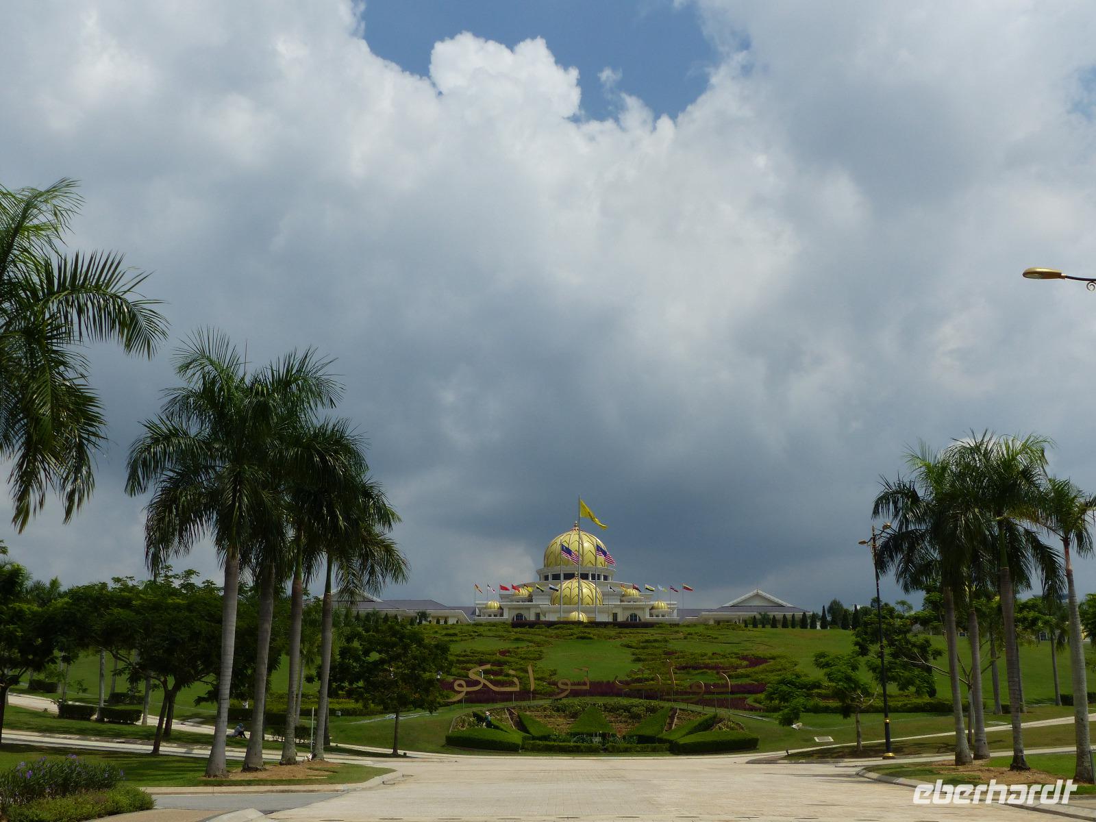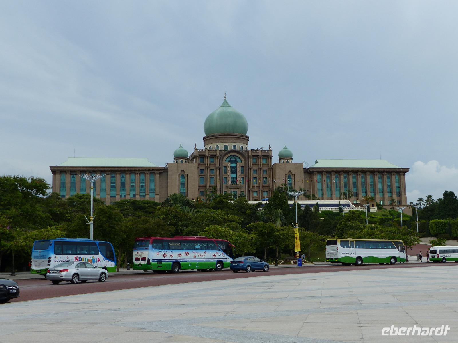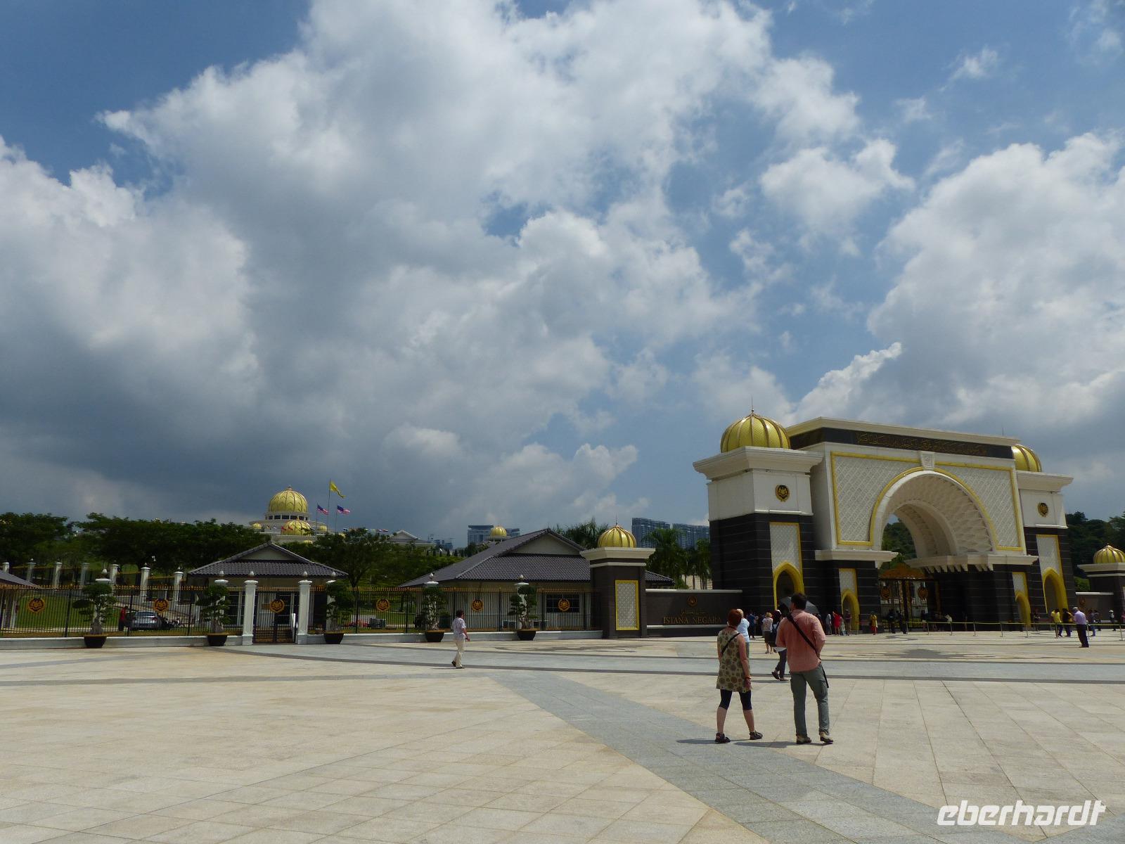 Am Vormittag heißt es für alle ein letztes Mal packen, denn unsere Heimreise steht kurz vor der Tür. Doch bevor es soweit ist, genießen wir den letzten Tag noch einmal in vollen Zügen. Zunächst zieht es uns nordöstlich von Kuala Lumpur in die Batu Cave, eine Höhle welche vor allem für Hinduisten eine große Rolle spielt. Die goldene Figur (Murugan) beeindruckt bereits aus der Ferne. Über die Mittagszeit kehren wir ins Stadtzentrum von Kuala Lumpur zurück und schlendern gemütlich über den Zentralmarkt und wenig später auch durch Chinatown. Nach einem letzten gemeinsamen Mittagessen verlassen wir die Stadt und begeben uns auf den Weg nach Putrajaya, dem heutigen Verwaltungszentrum von Kuala Lumpur. Der gesamte Bezirk wirkt futuristisch und sehr gepflegt. Einen längeren Stopp haben wir bei der Putra-Moschee. Nachdem wir erst der Annahme waren, diese nun nicht mehr von innen sehen zu können, war die Überraschung groß, als es doch für uns kurz möglich war. Alle Damen bekommen ein Gewand und wir werden freundlich von einem Sicherheitsmann durch einen kleinen Teil der Anlage geführt. Die Moschee selbst besitzt ein 116m hohes Minarett und ist im islamisch-persischen Stil errichtet wurden. Im Anschluss begeben wir uns nun direkt zum Flughafen, wo noch vor dem Abflug eine frische Dusche auf uns wartet. Auch nehmen wir Abschied von Eddie, aber schau ma mar, vielleicht sehen wir ihn mal daheeme? ;)