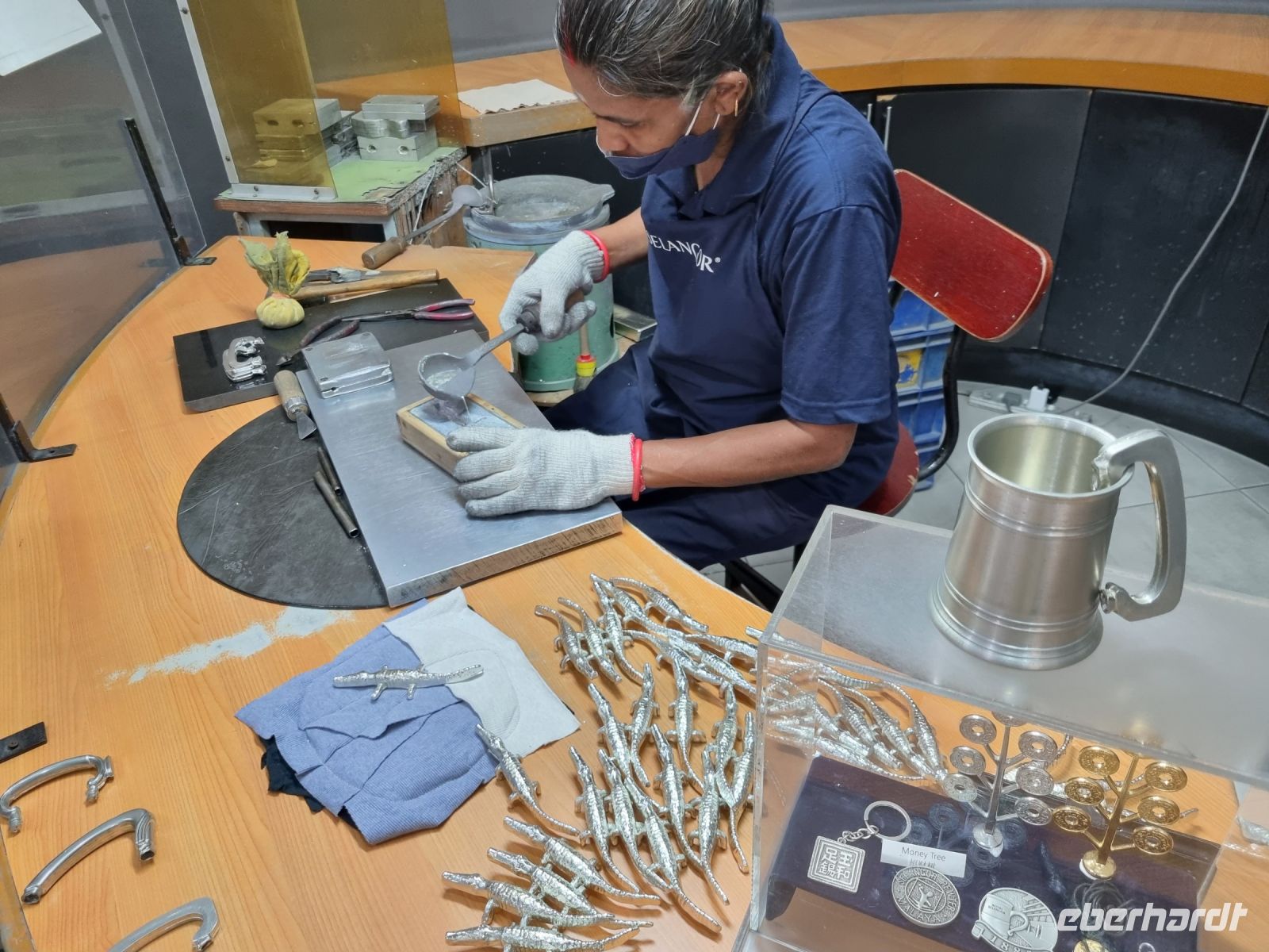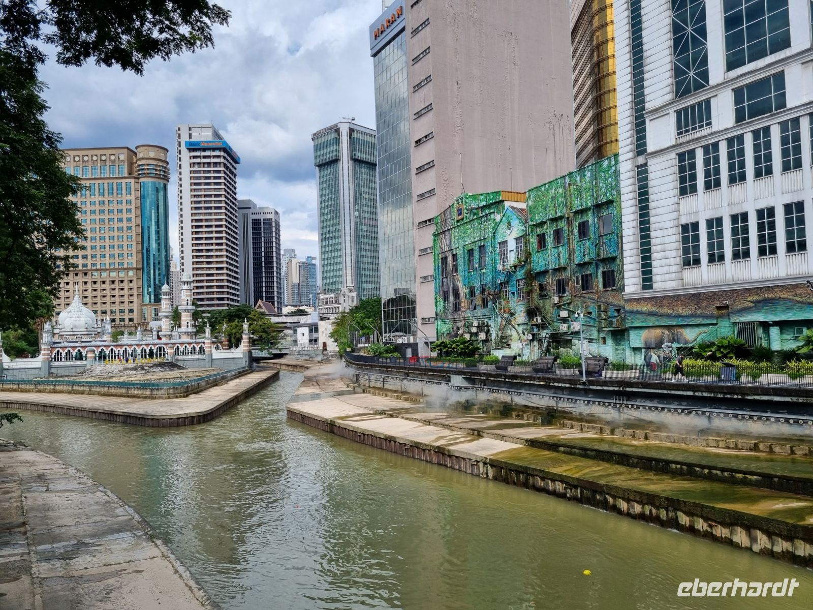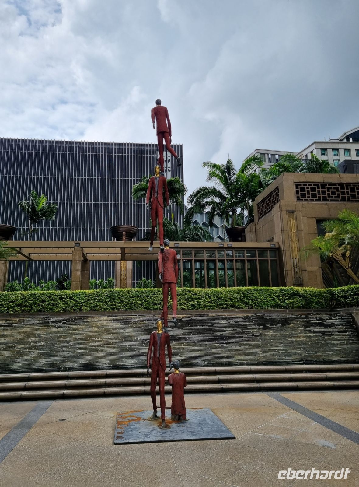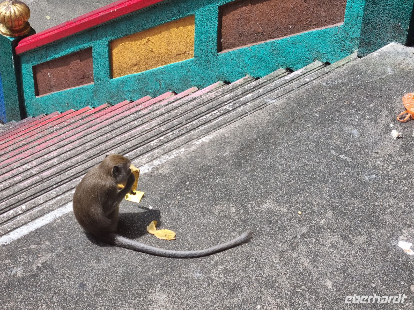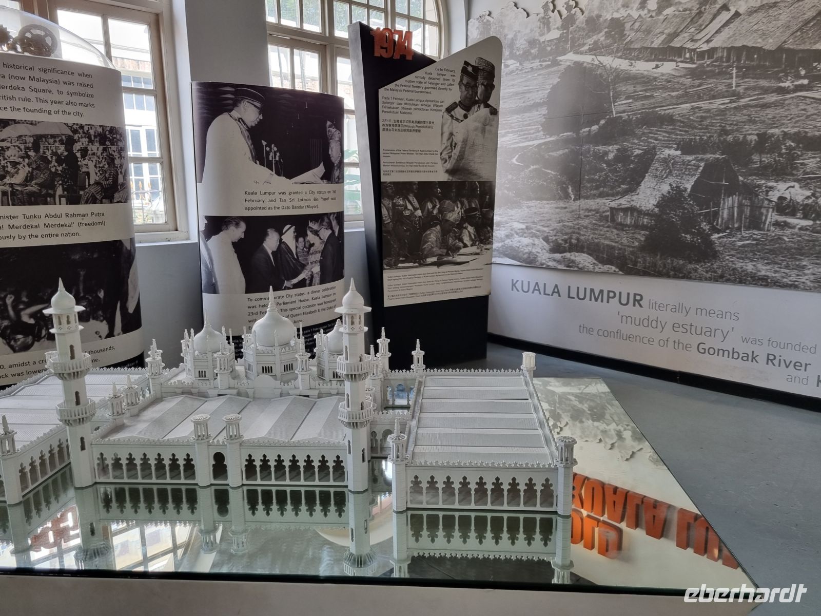 Den ersten Stopp unserer heutigen Rundfahrt legten wir an der Zinnfabrik Royal Sengalor ein. Malaysia ist immerhin sehr stolz auf seine Zinnvorkommen und die langjährige Geschichte der Zinnverarbeitung. In dieser Fabrik wurde uns auf beeindruckende Weise sowohl die Geschichte als auch die Verarbeitung von Zinn anschaulich dargestellt. Zinn ist nach wie vor eines der wichtigsten Exportgüter des Landes und wurde früher sogar als Zahlungsmittel verwendet. Figuren, Teller, Vasen, Schmuck, Dosen, Bilderrahmen usw. mit stilvollen oder modernen Ornamenten werden hier in mühevoller Handarbeit hergestellt... Danach fuhren wir weiter zu den Heiligen Grotten von Batu, riesigen Höhlen in Kalksteinfelsen, in denen sich Tempel und Schreine befinden. Sie sind eine beliebte Pilgerstätte für die Hindus in Malaysia. Uns amüsierten die kleinen Affen, die uns dabei zusahen, wie wir die 280 Stufen hinaufstiegen. Von oben konnte man einen großen Teil von Kuala Lumpur sehen. In der Grotte selbst tropft es ununterbrochen und Affen, Tauben bzw. Fledermäuse haben hier oben ihr zuhause. Nach diesem eindrucksvollen Besuch stoppten wir am Königspalast, welchen wir durch das Haupttor bewundern konnten, denn eine Innenbesichtigung war leider nicht möglich. Später spazieren wir vorbei am architektonisch beeindruckenden Alten Bahnhof und der Nationalmoschee und gelangten ins Unabhängigkeitsviertel, wo 1957 zum ersten Mal die malayische Flagge gehisste wurde. Hier besuchten wir auch die Kuala Lumpur City Gallery, wo wir Simons Erläuterungen noch einmal verbildlicht sahen. Eine kleine Kaffeepause mit süßen Leckereien gehörte ebenso dazu. Danach durfte allerdings ein kurzer Abstecher an den Zusammenfluss von Gombak und Klang nicht fehlen, denn genau diese beiden Flüsse gaben der Stadt, die 1857 an deren Zusammenfluss gegründet wurde, ihren Namen, der übersetzt "Schlammige Flussmündung" bedeutet. Ihre Gründer waren Bergleute bzw. Zinnsucher, die sie unter Führung des malayischen Rajas Abdullah mitten im Urwald anlegten. Aufgrund des anwachsenden Zinnhandels wuchs der Ort stetig von einer verschlafenen Siedlung zur großen Stadt an. Damit schloss sich der Kreis zur Stadtgeschichte für uns und wir gelangten nochmals zu den Petronas Twin Towers, um in einer der dortigen Malls unser heutiges Abendessen einzunehmen.
