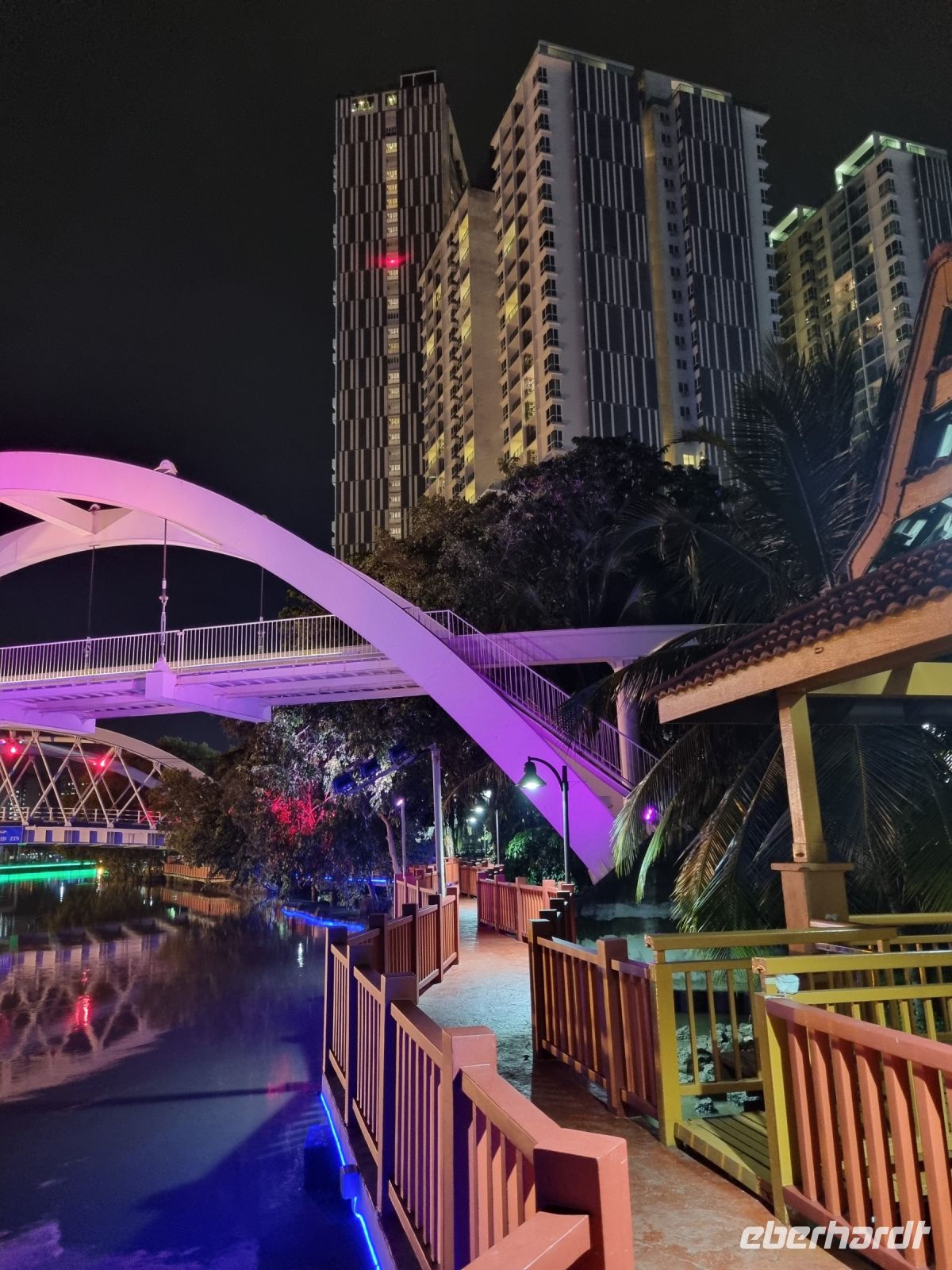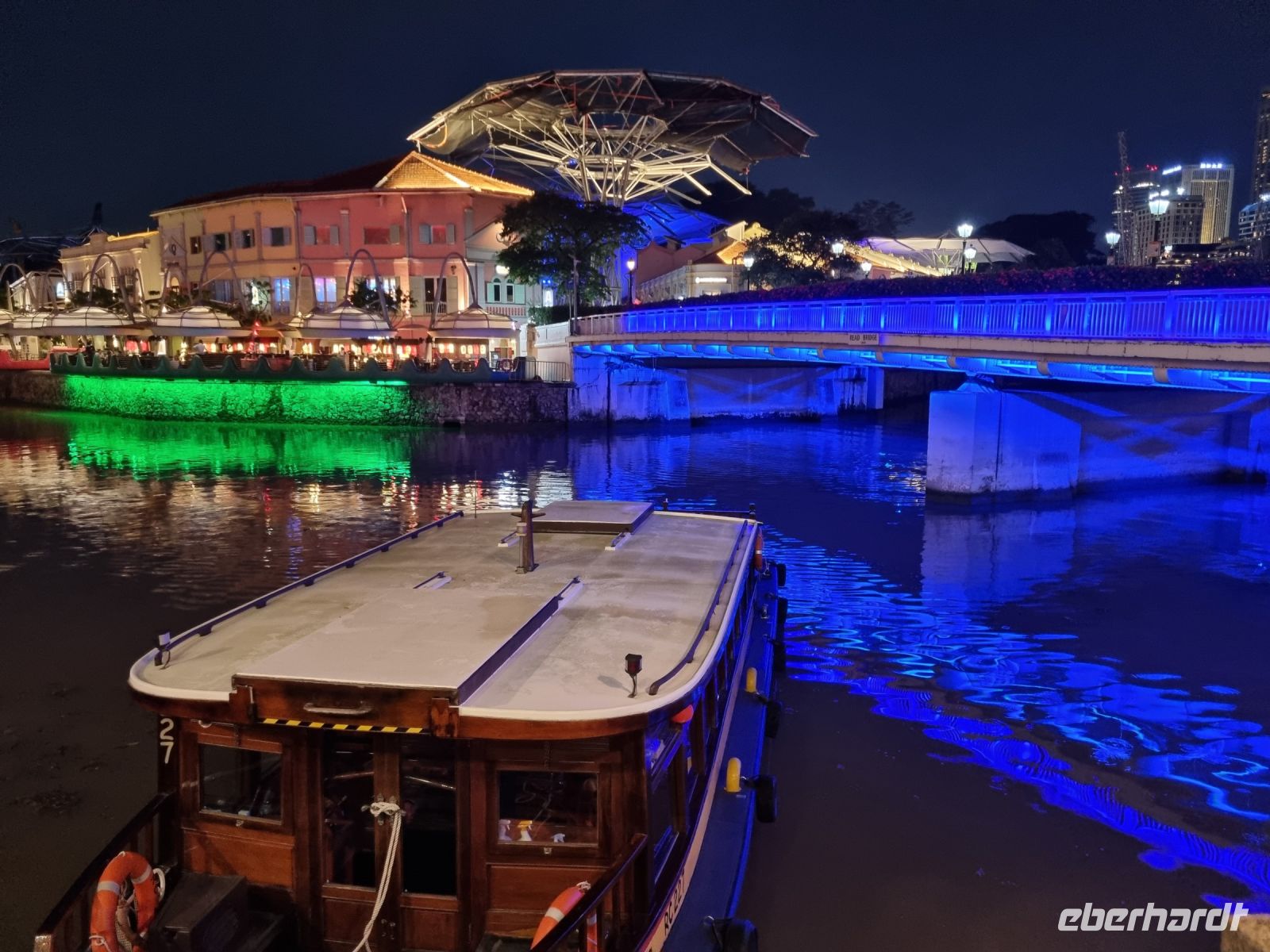 Der heutige Vormittag stand ganz im Zeichen des Botanischen Gartens von Singapur! Unweit der berühmten Orchard Road wurde bereits 1859 der Singapore Botanic Garden eröffnet. Kurze Zeit später pflanzte man hier die ersten Gummibaumsetzlinge, die in London aus gestohlenen brasilianischen Samen gezüchtet worden waren. Damit war der Siegeszug der Gummiplantagen gelegt, die schon bald große Teile British Malaysias bedecken sollten. Heute zählt der gepflegte und gehegte Garten zum Unesco-Weltkulturerbe. Ein Besuch der Hauptattraktion, des Orchideengartens, durfte für uns natürlich nicht fehlen! Wir waren sehr beeindruckt von der mit mehr als 1.000 Orchideenarten größten Orchideensammlung der Welt – prachtvolle Farben und Düfte begleiteten uns! Gegen Mittag stand ein weiterer Höhepunkt des Tages an, die Fahrt mit dem gigantischen Riesenrad Singapore-Flyer. Es war nicht viel los und so hatten wir eine Gondel für uns ganz allein. In 30 Minuten fuhren wir eine komplette Runde und konnten uns in Ruhe in alle Himmelsrichtungen umschauen. Dabei sahen wir auch ein paar Inseln, darunter Sentosa, aber auch weiter rüber nach Malaysia bzw. Indonesien. Wir hatten sehr großes Glück mit dem Wetter, denn kurz nach unserer Riesenrad-Fahrt musste der Betrieb aufgrund schlechten Wetters eingestellt werden. Am späten Nachmittag beruhigte sich das Wetter wieder und so unternahmen wir dann noch eine entspannte Fahrt auf dem etwa 4 Kilometer langen Singapore River, dessen Lauf im südlichen Teil der Stadt beginnt und in der Marina Bay im Zentrum endet. Durch seinen gewundenen Verlauf teilt er verschiedene Stadtgebiete Singapurs voneinander, so trennt der Fluss das eigentliche City Centre von Chinatown. Am Ufer dieses geschichtsträchtigen Flusses hatten wir zuvor bereits mehrfach gestanden, aber von der Wasserseite aus betrachtet ergaben sich noch der ein oder andere Blickwinkel. Obwohl der Fluss heute als Verkehrsader keine Bedeutung mehr besitzt, so war er historisch gesehen sehr wichtig. Denn hier landete im Jahr 1819 Sir Stamford Raffles und begann damit, den Handelsstützpunkt auszubauen. Von dieser wirtschaftlichen Bedeutung des 19. Jahrhunderts ist er heute natürlich meilenweit entfernt, doch die zahlreichen schönen Brücken, die wundervoll angelegten Gehwege und die zahlreichen Sehenswürdigkeiten sowie die angrenzende Skyline der Stadt lohnen in jedem Fall. Unser heutiges letztes Abendessen in Singapur erlebten wir in einem Seafood-Spezialitätenrestaurant in Clarke Quay, wo wir uns unter anderem auch an Krabben und anderen exotischen Meeresgetieren versuchen konnten. Es war köstlich und ein toller Abschluss einer wunderschönen Zeit in Singapur!