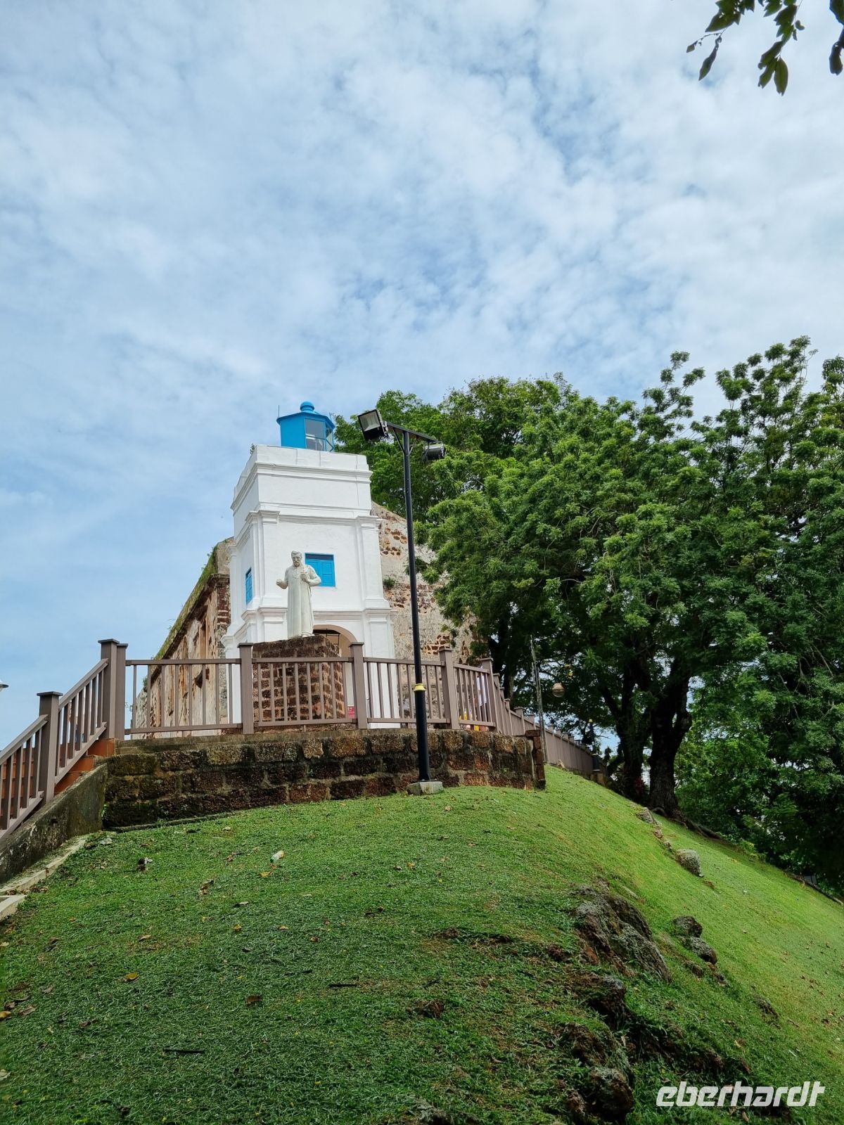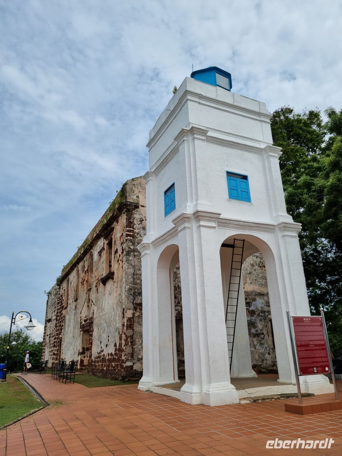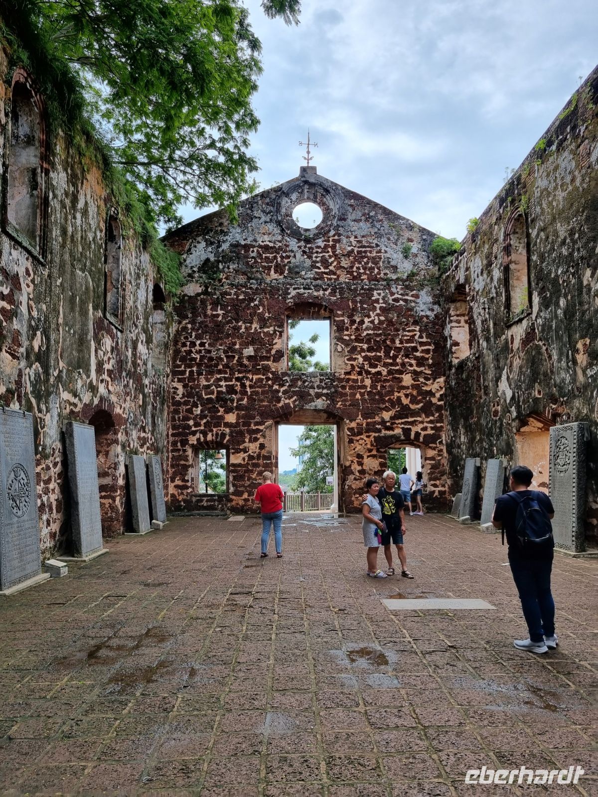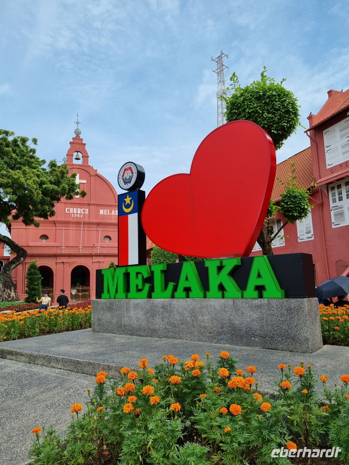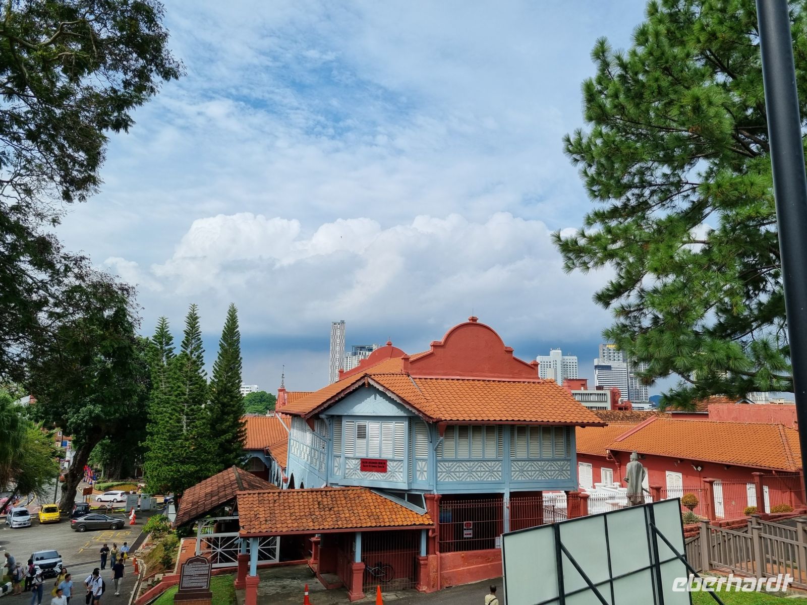Gemeinsam mit Berit machten wir uns heute früh zum Grenzübergang von Singapur nach Malaysia auf. Leider mussten wir uns kurz vor der Grenze von unserer sympathischen örtlichen Reiseleiterin Berit verabschieden, der ich an dieser Stelle nochmals ganz herzlich für ihre liebevolle und gleichzeitig professionelle Art bedanken möchte. Schnell waren die Ausreiseformalitäten für Singapur erledigt und bei der Einreise nach Malaysia war dann unsere Geduld gefragt. Eine reichlich 2-stündige Wartezeit und wir hatten es schließlich geschafft und waren in Malaysia angekommen, wo wir bereits kurz nach der Zollkontrolle von unserem örtlichen Reiseleiter Simon in Empfang genommen wurden. Erstes Geld wurde umgetauscht und schließlich konnte es mit dem neuen malaysischen Bus nach Malakka weitergehen. Simon gab uns bereits unterwegs viele Informationen zu Land und Leuten. In Malakka angekommen, unternahmen wir einen Stadtrundgang. Wir besuchten die Ruinen der St Paul's Church, welche hoch auf einem Hügel gelegen sind und konnten von hier aus über einen großen Teil von Malakka blicken. Weiter gelangten wir durch das berühmte Holländerviertel und über die Einkaufsstraße Jonker Street in China Town zu einigen Tempelanlagen der Stadt. Am frühen Abend checkten wir schließlich in unserem komfortablen Hotel ein, wo wir den Abend bei einem gemeinsamen schmackhaften Abendessen im Panorama-Restaurant des Hotels hoch über den Dächern der Stadt ausklingen ließen. Wir hatten außerdem das große Glück, die Aussichtsplattform im 43. Stock des Sky-Towers, des höchsten Gebäudes in Malakka zu besuchen. Hier standen wir nun auf 163 Metern über dem Straßenniveau und erfreuten uns an einem herrlichen 360-Grad-Panoramablick auf diese historische Stadt und dessen Umgebung, bevor die Sonne langsam unterging...