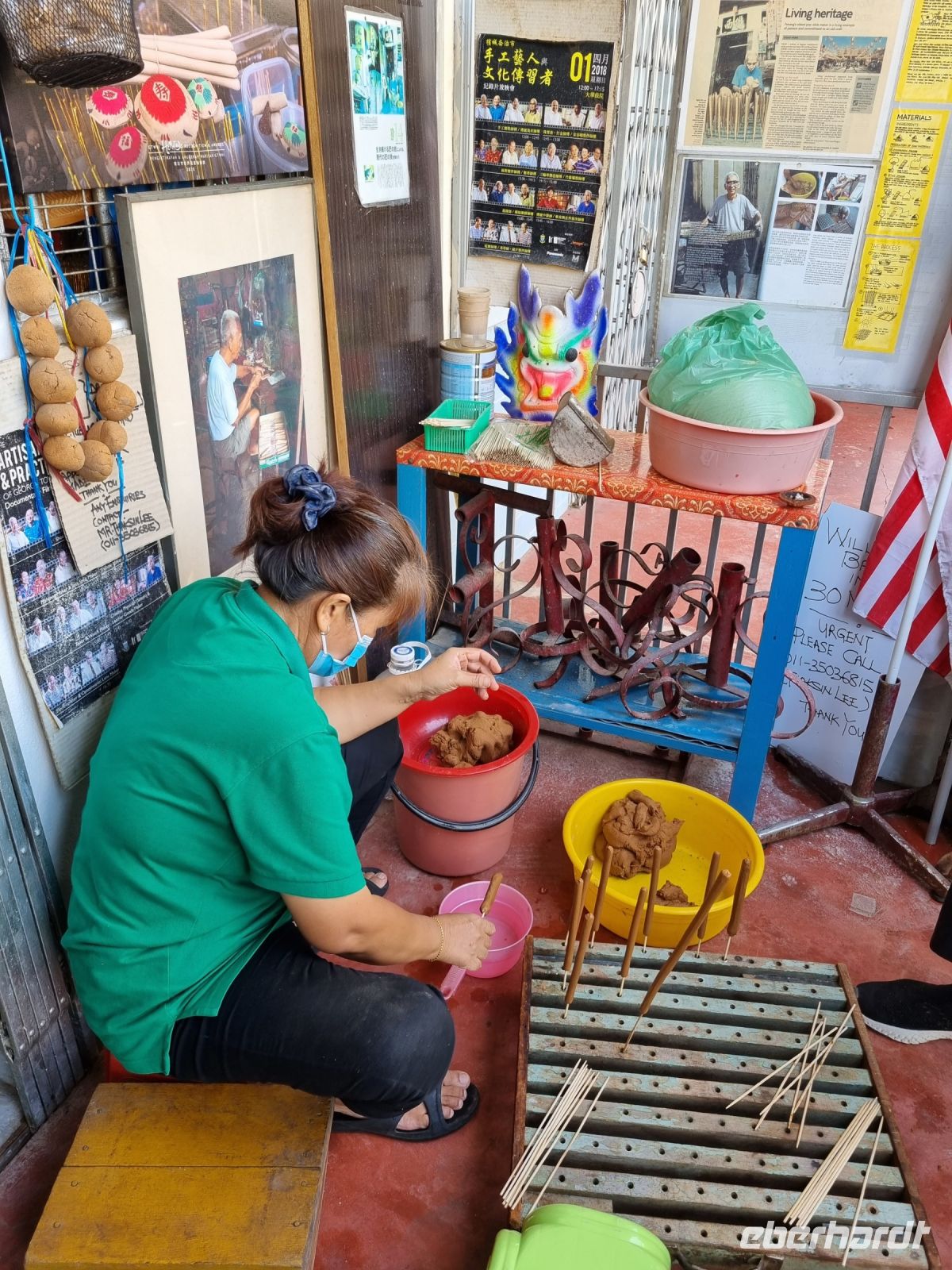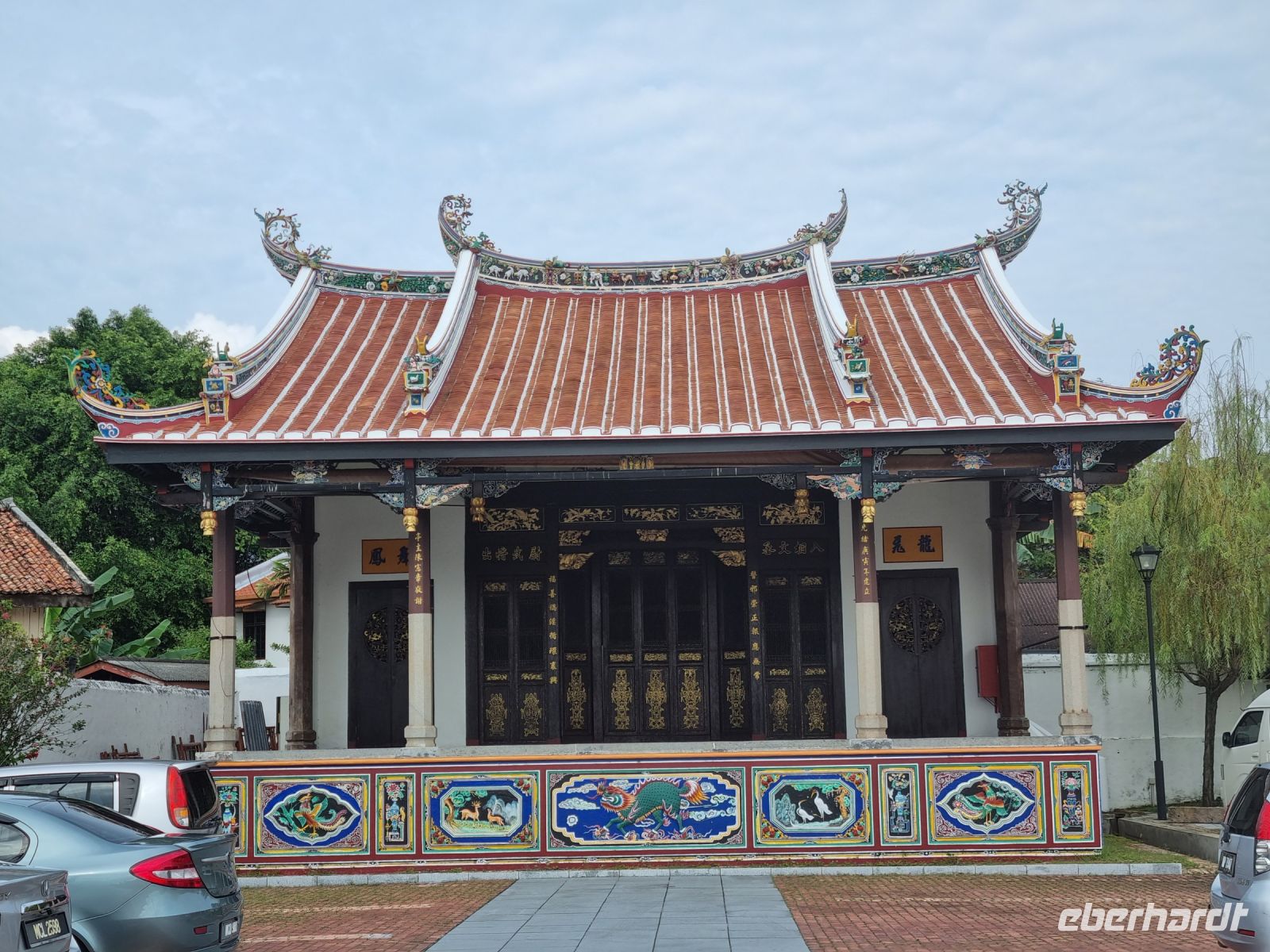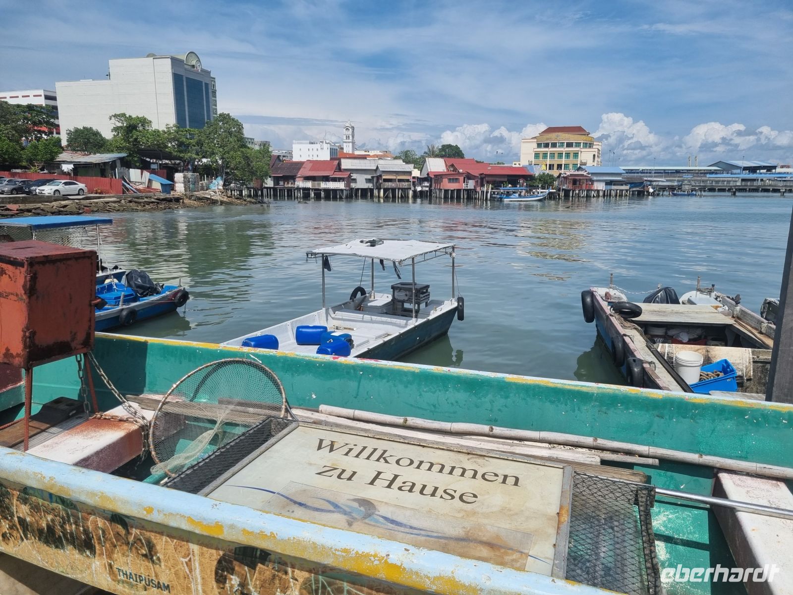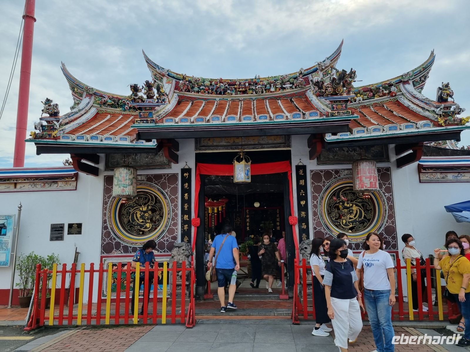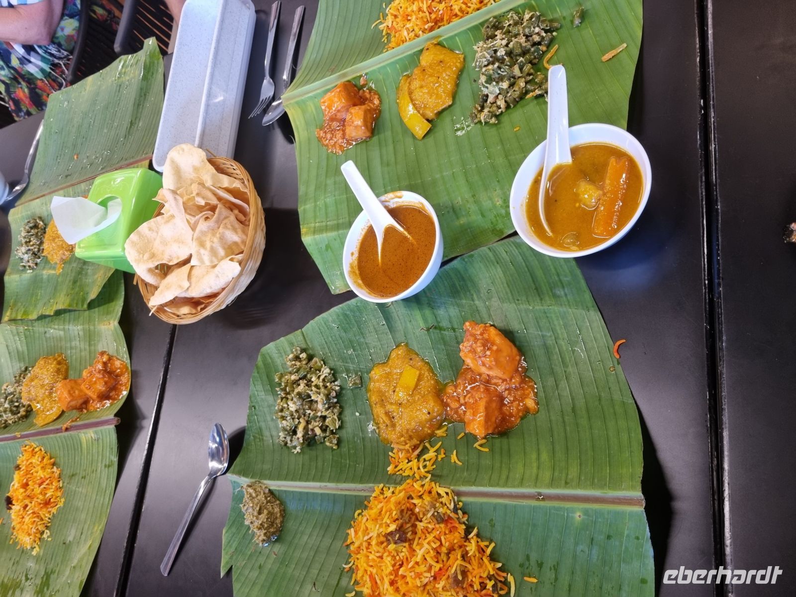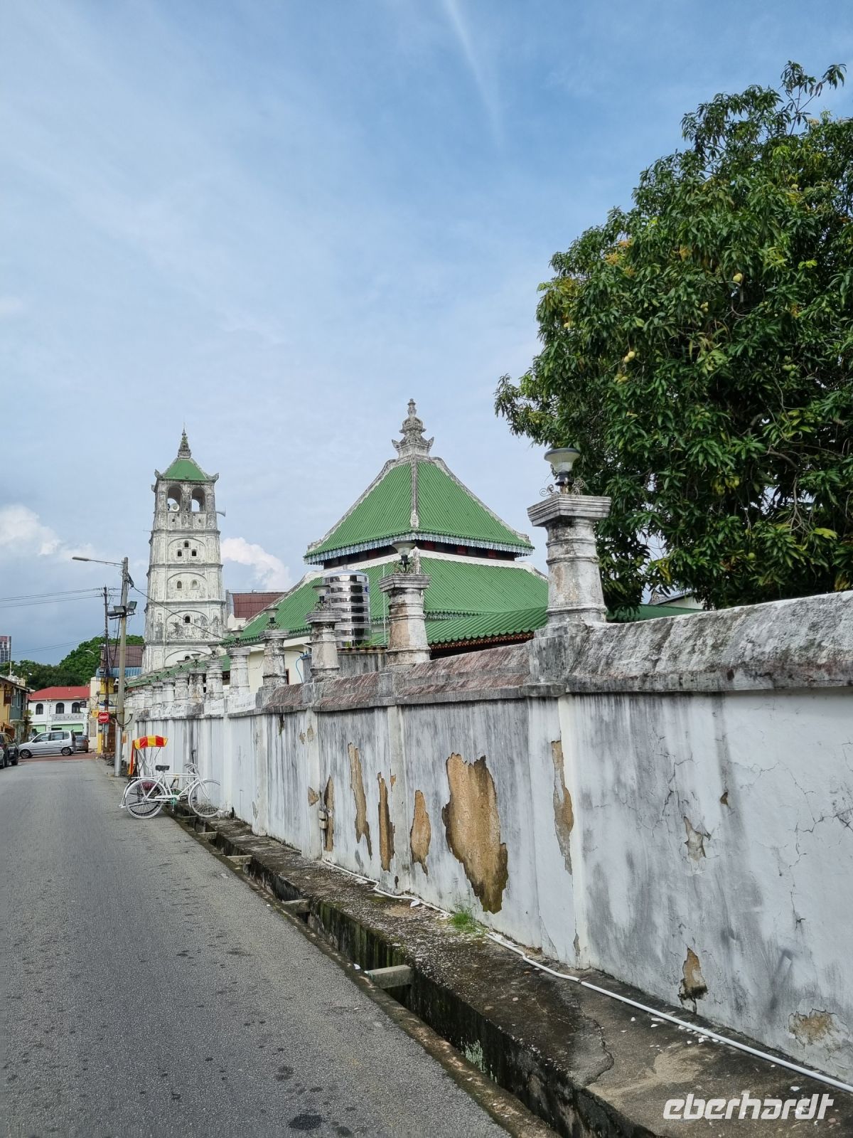 Unsere Stadtrundfahrt durch Georgetown startete mit dem Bus. Der Vormittag stand ganz im Zeichen der handwerklichen Traditionen. Auf dem lokalen Markt konnten wir zunächst einige Köstlichkeiten verkosten und in einer kleinen Seitenstraße besuchten wir einen der ältesten Räucherstäbchen-Macher des Landes. Hier konnten wir uns die Herstellung der verschiedenen Produkte ansehen und bekamen sogar ein kleines Geschenk mit auf den Weg. Das Mittagessen nahmen wir in einem netten indischen Lokal mit einer sehr guter Küche ein, wo wir sogar von Bananenblättern essen konnten. Nach einer kleinen Pause im Hotel wurden wir am Nachmittag von Rikschas abgeholt und setzten damit unsere Stadtrundfahrt fort. Neben dem Rathaus besichtigten wir auch den Hafen von Georgetown und bewunderten die berühmte Straßenkunst von Penang. Weiter ging es zum Khoo Kongsi, einem chinesischen Klanhaus, welches mit viel Gold verziert ist. Mit den Rikschas legten wir abschließend noch einen kleinen Stopp in Little India ein, um ggfs. Gewürze oder andere Spezialitäten einzukaufen.