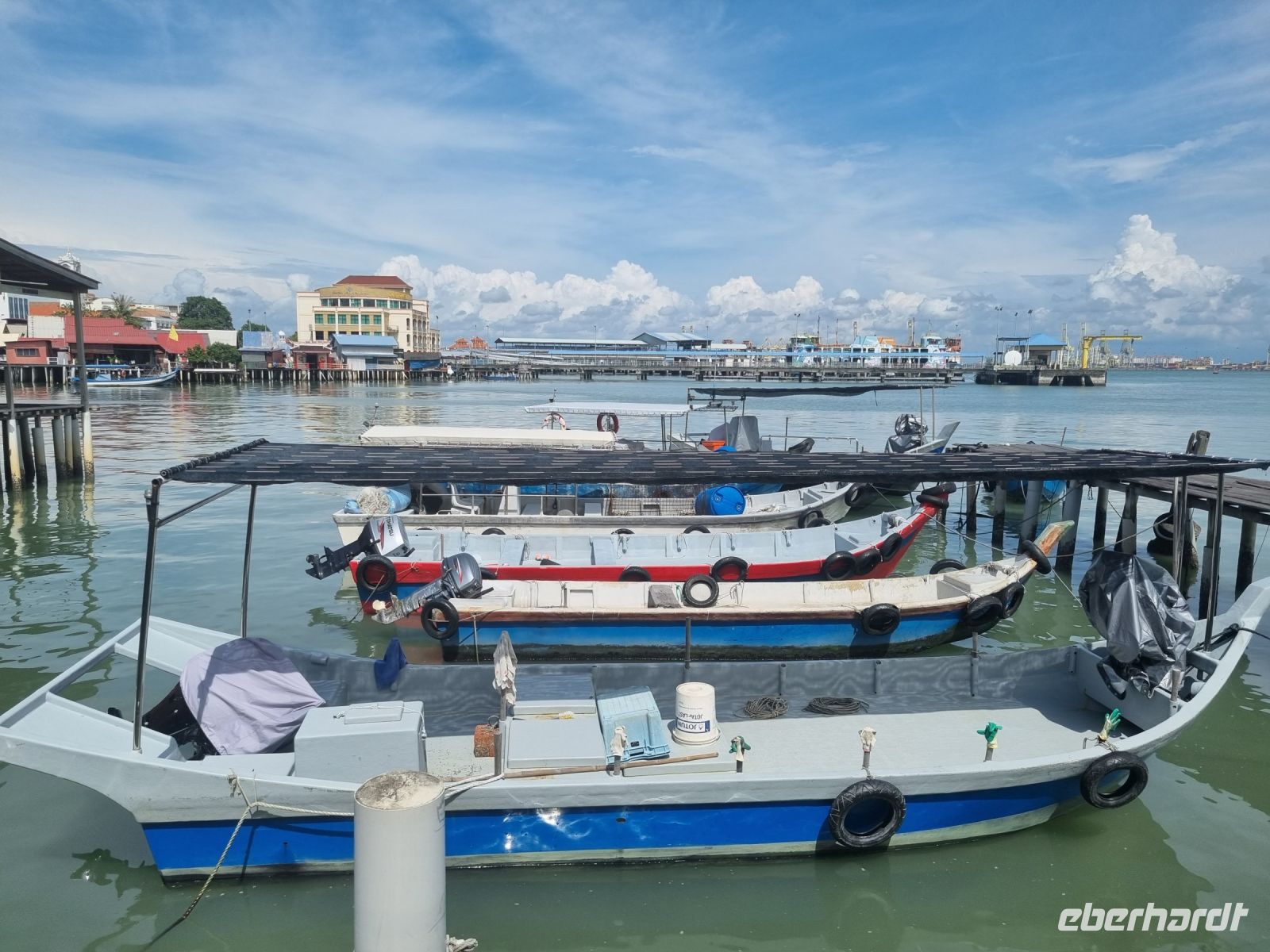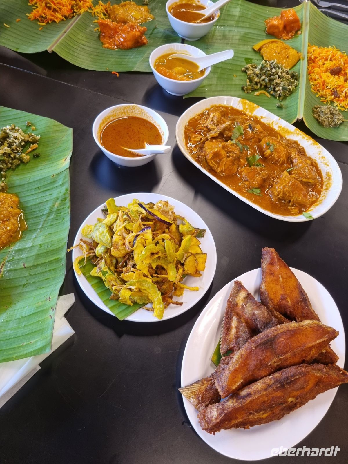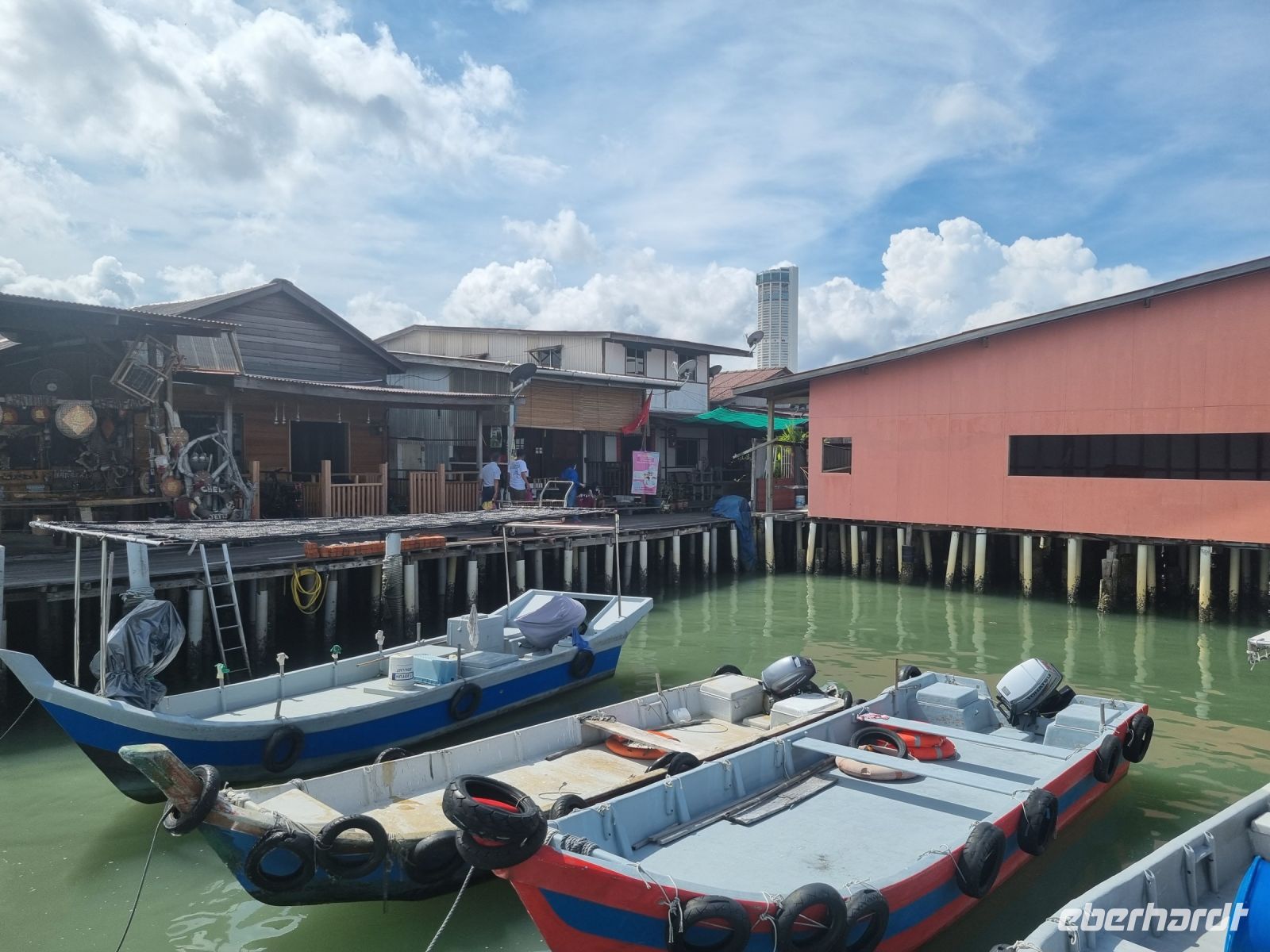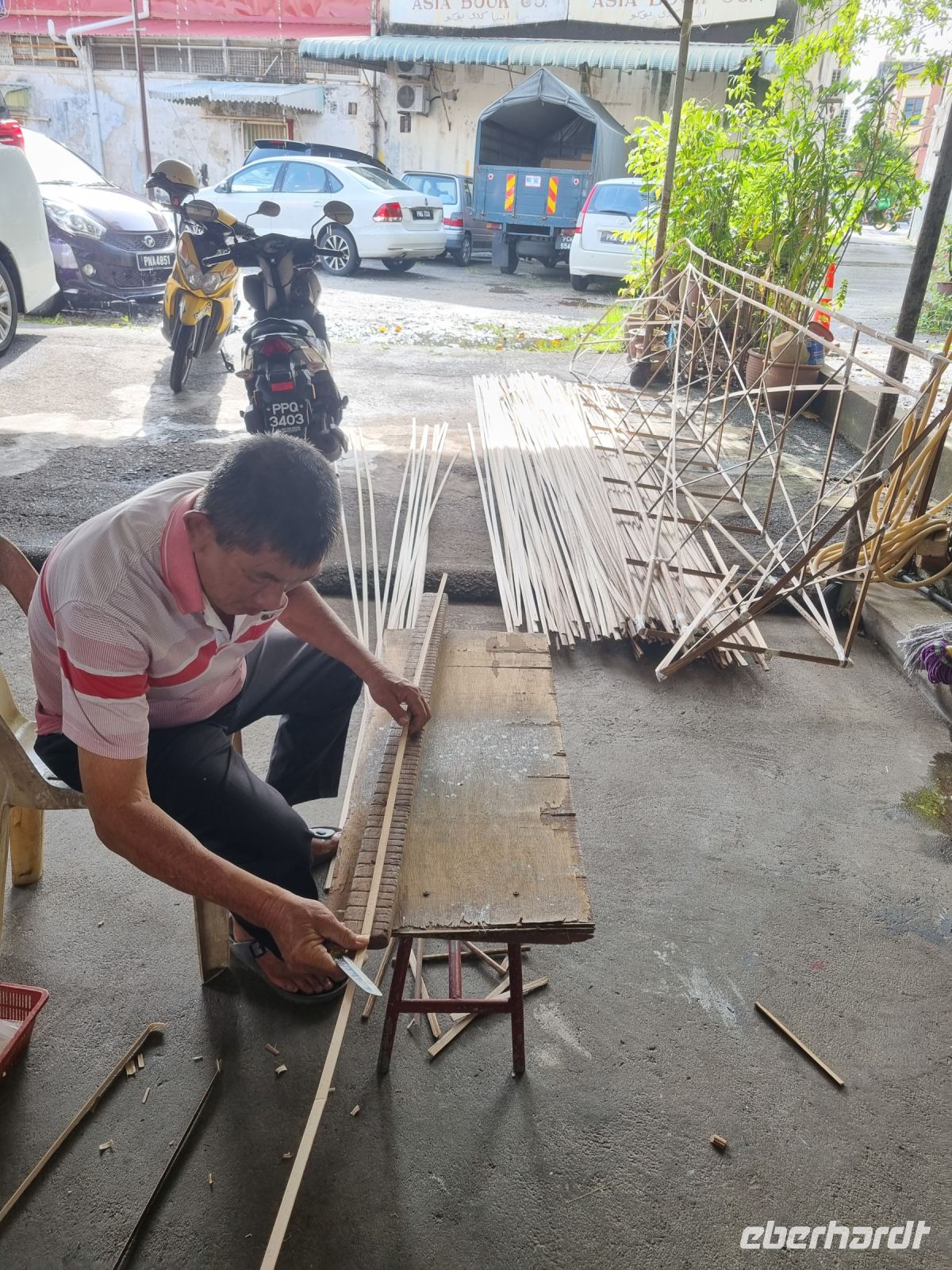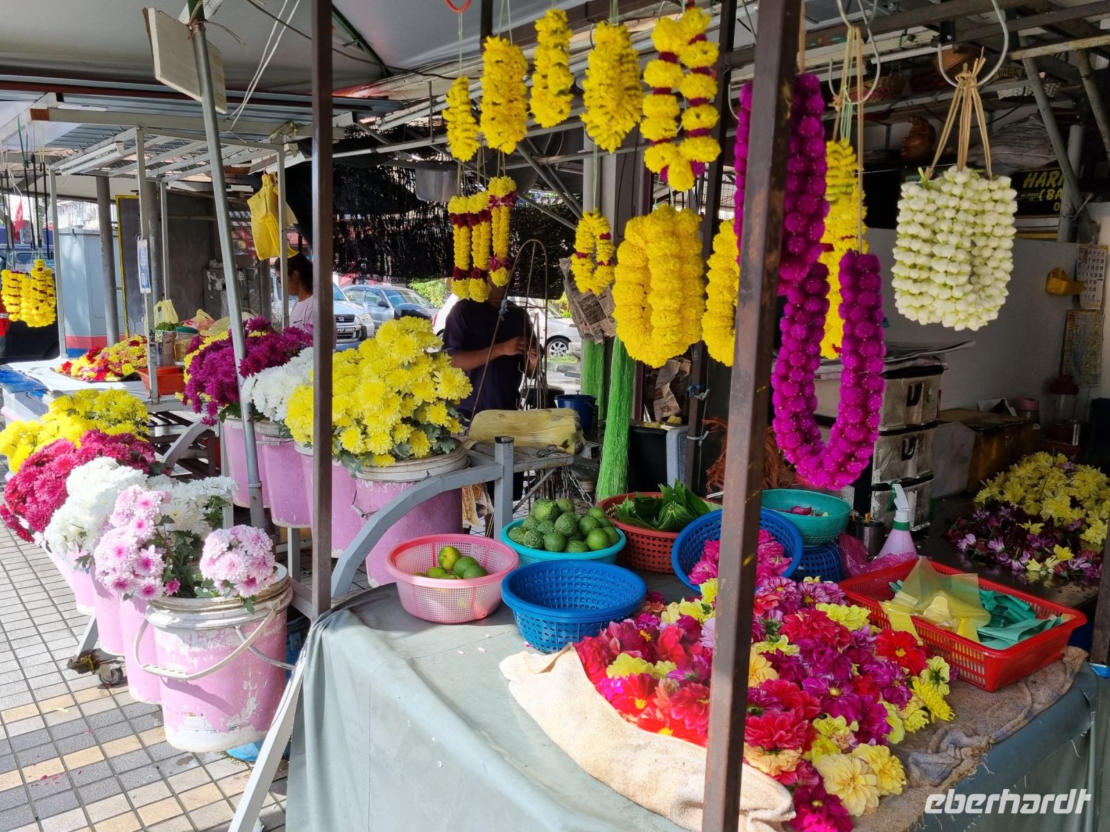 Unsere Stadtrundfahrt durch Georgetown startete mit dem Bus. Der Vormittag stand ganz im Zeichen der handwerklichen Traditionen. Auf dem lokalen Markt konnten wir zunächst einige Köstlichkeiten verkosten und in einer kleinen Seitenstraße besuchten wir einen der ältesten Räucherstäbchen-Macher des Landes. Hier konnten wir uns die Herstellung der verschiedenen Produkte ansehen und bekamen sogar ein kleines Geschenk mit auf den Weg. Das Mittagessen nahmen wir in einem netten indischen Lokal mit einer sehr guter Küche ein, wo wir sogar von Bananenblättern essen konnten. Nach einer kleinen Pause im Hotel wurden wir am Nachmittag von Rikschas abgeholt und setzten damit unsere Stadtrundfahrt fort. Neben dem Rathaus besichtigten wir auch den Hafen von Georgetown und bewunderten die berühmte Straßenkunst von Penang. Weiter ging es zum Khoo Kongsi, einem chinesischen Klanhaus, welches mit viel Gold verziert ist. Mit den Rikschas legten wir abschließend noch einen kleinen Stopp in Little India ein, um ggfs. Gewürze oder andere Spezialitäten einzukaufen.
