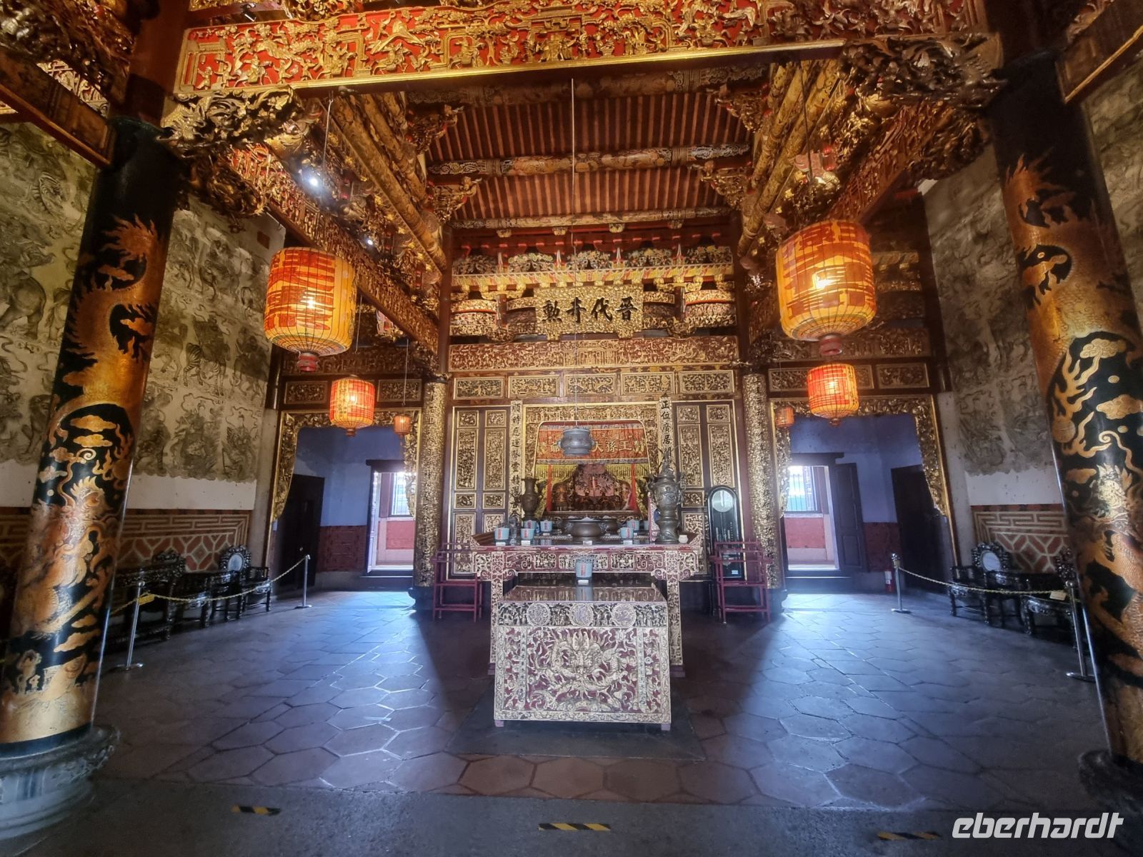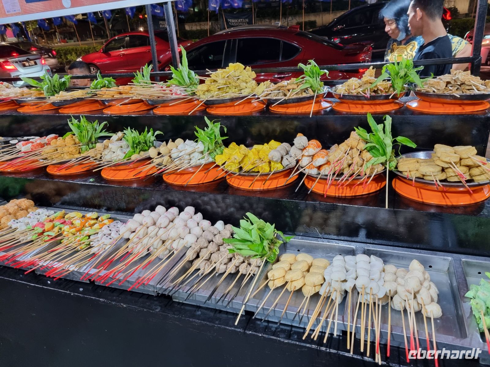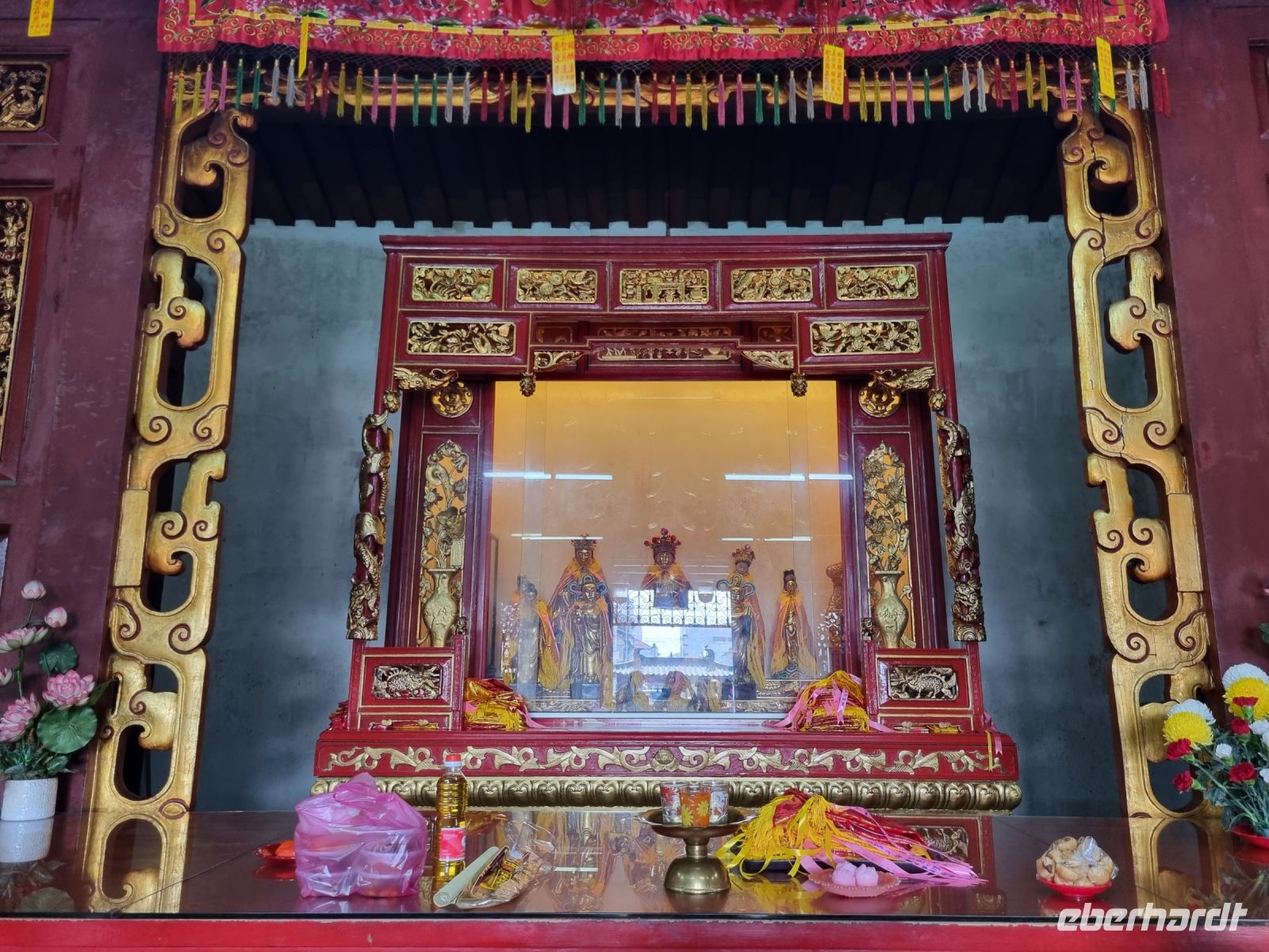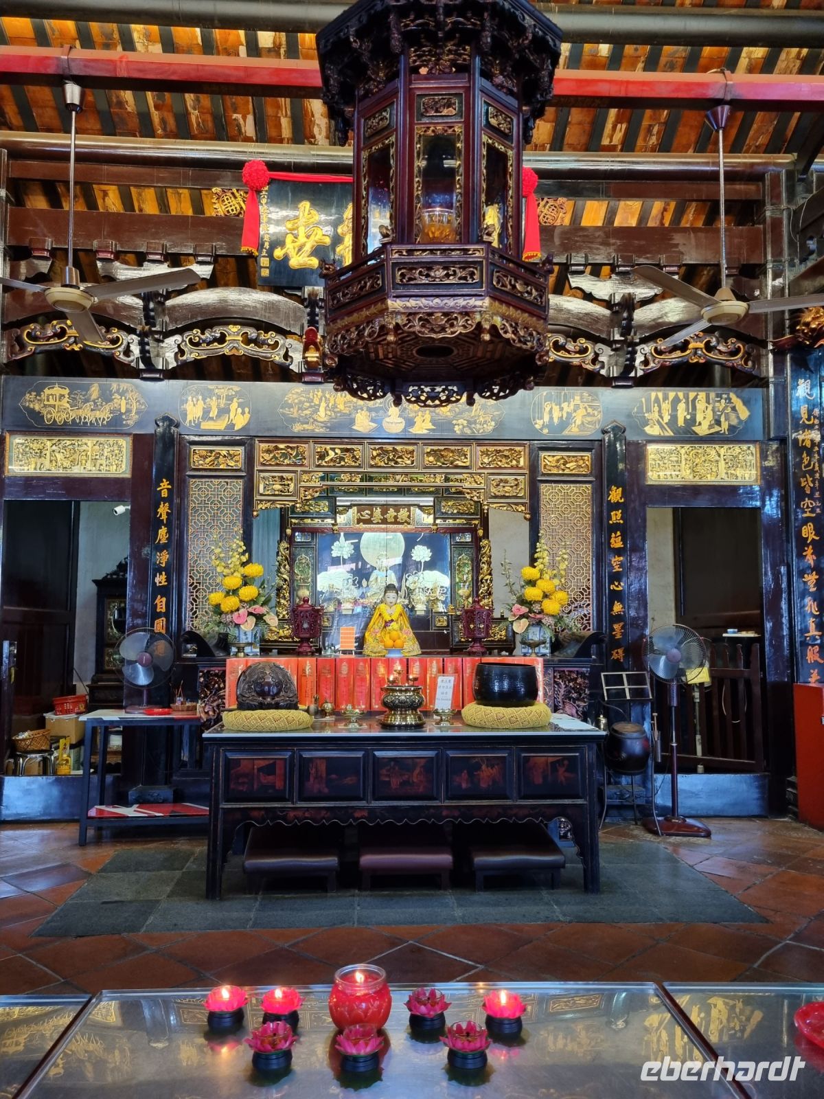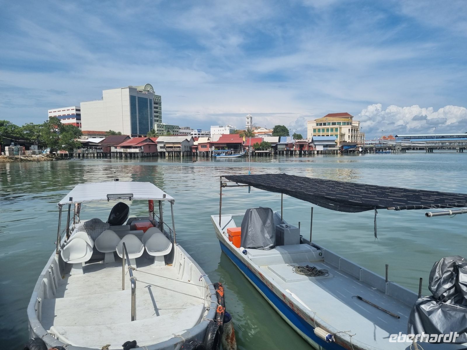 Unsere Stadtrundfahrt durch Georgetown startete mit dem Bus. Der Vormittag stand ganz im Zeichen der handwerklichen Traditionen. Auf dem lokalen Markt konnten wir zunächst einige Köstlichkeiten verkosten und in einer kleinen Seitenstraße besuchten wir einen der ältesten Räucherstäbchen-Macher des Landes. Hier konnten wir uns die Herstellung der verschiedenen Produkte ansehen und bekamen sogar ein kleines Geschenk mit auf den Weg. Das Mittagessen nahmen wir in einem netten indischen Lokal mit einer sehr guter Küche ein, wo wir sogar von Bananenblättern essen konnten. Nach einer kleinen Pause im Hotel wurden wir am Nachmittag von Rikschas abgeholt und setzten damit unsere Stadtrundfahrt fort. Neben dem Rathaus besichtigten wir auch den Hafen von Georgetown und bewunderten die berühmte Straßenkunst von Penang. Weiter ging es zum Khoo Kongsi, einem chinesischen Klanhaus, welches mit viel Gold verziert ist. Mit den Rikschas legten wir abschließend noch einen kleinen Stopp in Little India ein, um ggfs. Gewürze oder andere Spezialitäten einzukaufen.