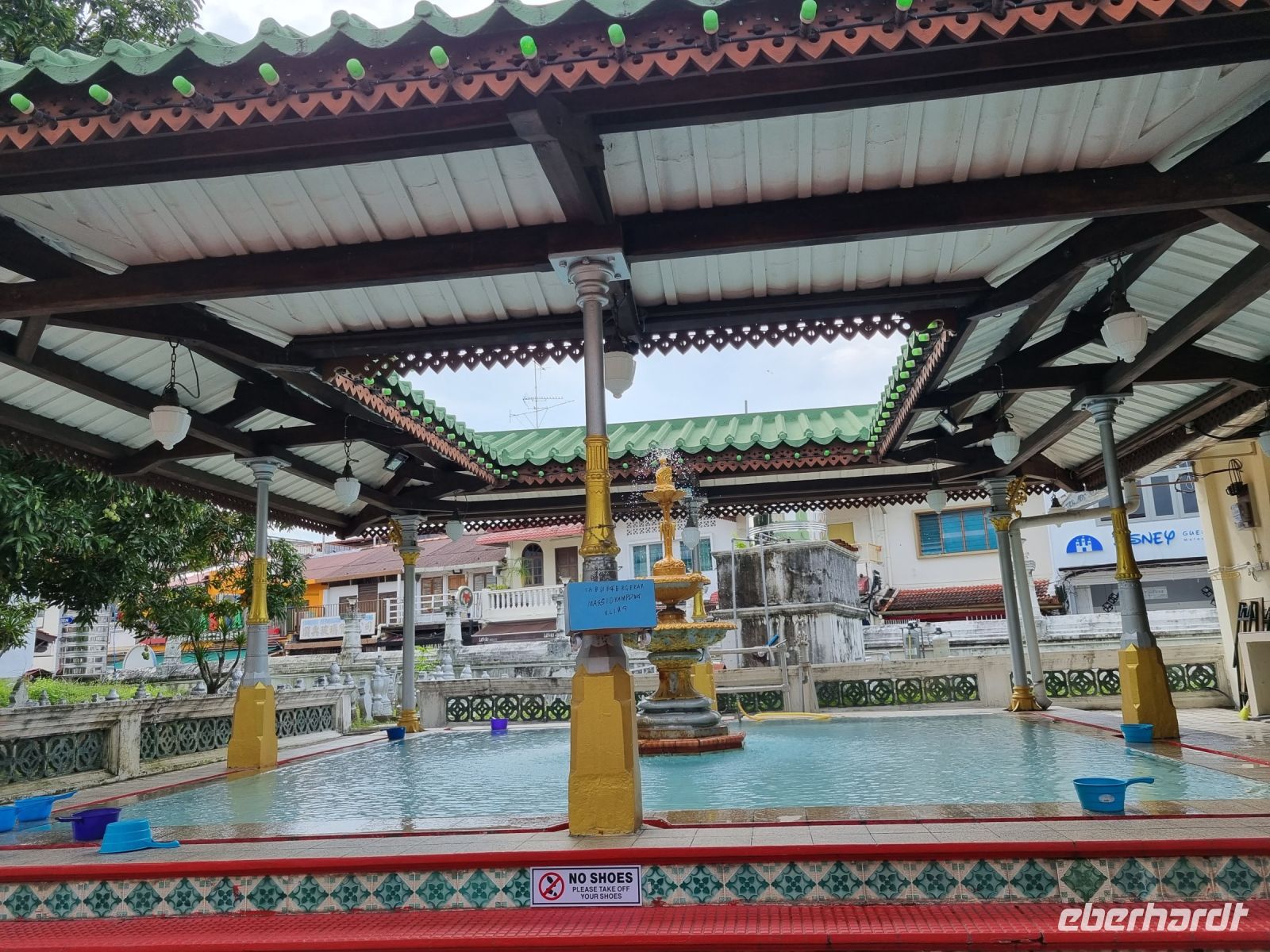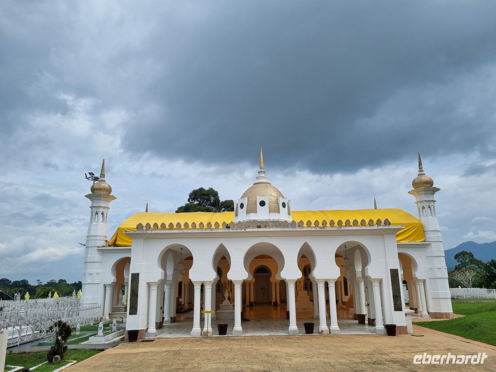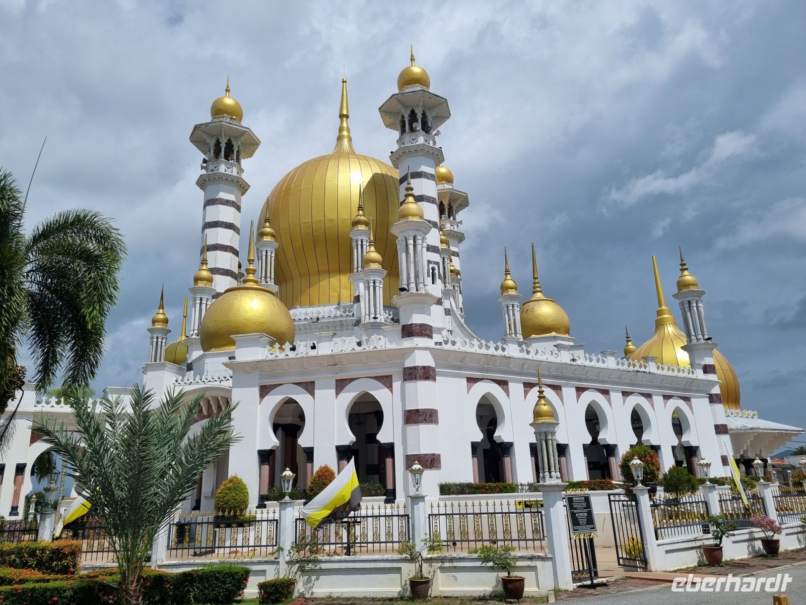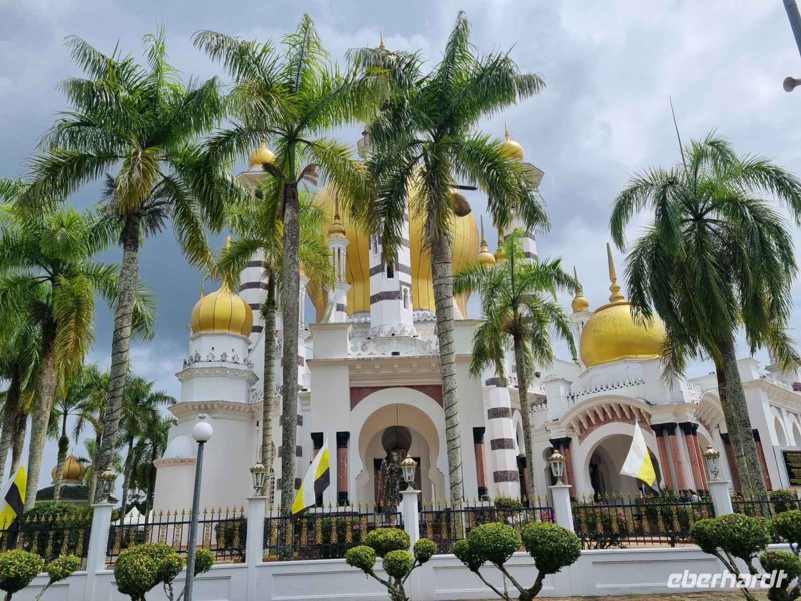 Nach dem Frühstück verabschiedeten wir unsere drei Badeurlaubs-Verlängerer und machten uns auf den Weg in Richtung Süden. Wir legten einen Zwischenstopp in der alten Sultansstadt Kuala Kangsar ein. Diese Stadt überzeugt mit hübschen Gebäuden, einem grünen Park, dem Sultanspalast und der Ubudiah Moschee. Hier angekommen, besuchten wir zunächst eine Töpferei und konnten uns auch selbst an der Kunst versuchen. Simon erklärte uns kurz die Herstellung und die verschiedenen Arten der Fertigung. Höhepunkt unseres Aufenthaltes in Kuaka Kangsar war zweifelsfrei die Besichtigung der hiesigen Moschee. Weißer italienischer Marmor, reich verzierte Minarette und goldene Kuppeln – die Anfang des 20. Jahrhunderts gebaute Ubudiah Moschee kann sich wirklich sehen lassen...! Den benachbarten Sultanspalast von Kuala Kangsar, Istana Iskandariah, durften wir leider nur von Weiten von außen sehen. Der Palast ist noch immer die offizielle Residenz der Sultane von Perak. Er wurde in den 1930er Jahren errichtet und liegt auf einem Hügel. Auch er leuchtet in weißem Marmor und ist mit goldenen Kuppeln verziert. Abschließend schauten wir noch kurz in einer Werkstatt, in der Malaien-Dolche gefertigt werden, vorbei. Wir sahen wie die verschiedenen Metalle erhitzt und gefaltet werden, um einen traditionellen Dolch herzustellen. Gegen Mittag verließen wir die Stadt, denn weitere knapp 300 Kilometer lagen noch vor uns! Viel Stau bei Kuala Lumpur erschwerte uns den Weg zum etwa 50 Kilometer südlich der Stadt gelegenen Flughafen KLIA. Dennoch erreichten wir diesen noch rechtzeitig. Wir verabschiedeten uns von Simon und machen uns auf den Weg nach Singapur. Gemeinsam traten wir unseren nächtlichen Rückflug nach Deutschland an. Auch diesmal hatten wir Glück, denn der Flieger war nicht ausgebucht und somit hatten wir teilweise komfortable 2 Sitzplätze für uns...
