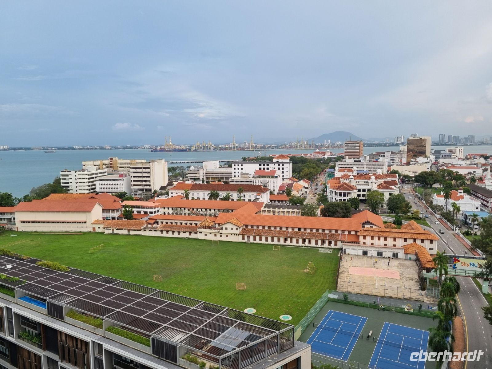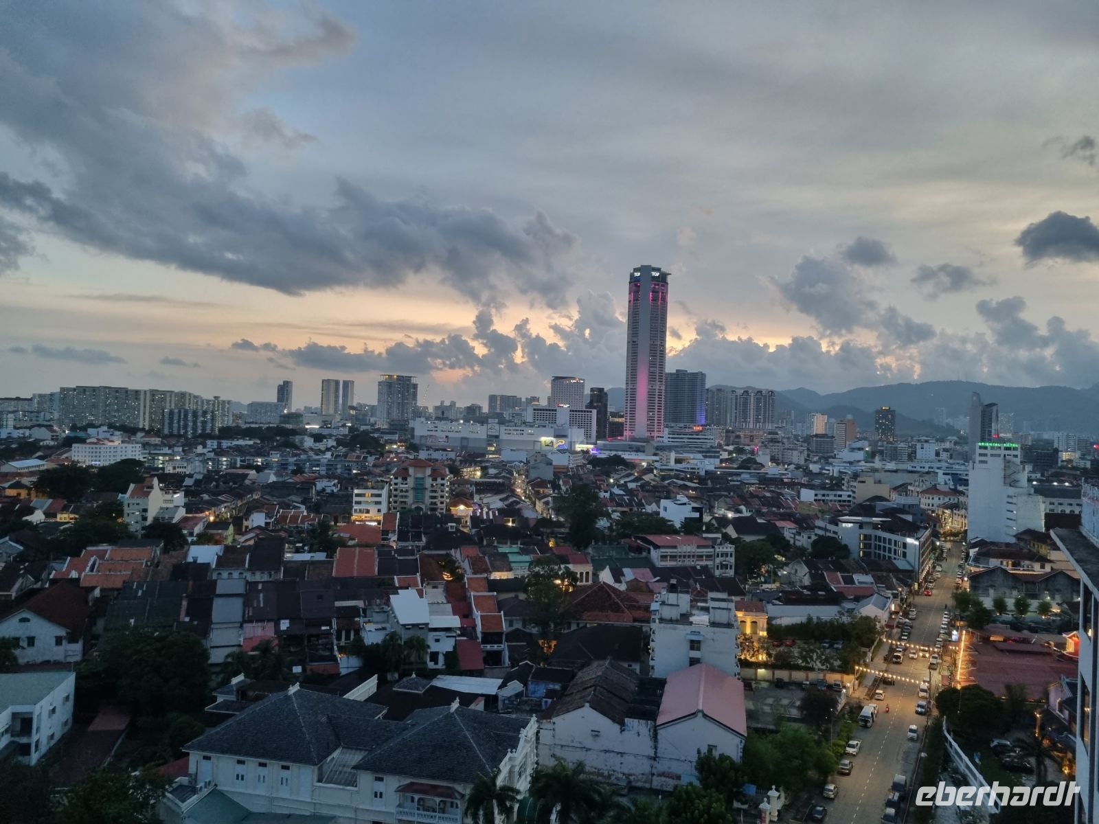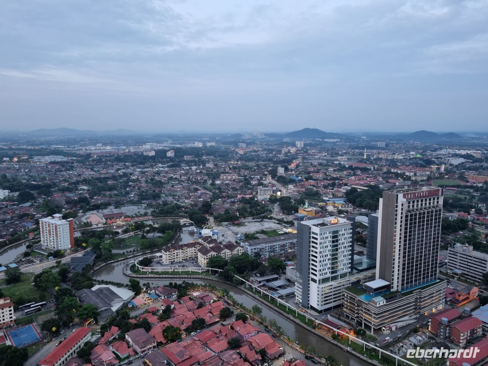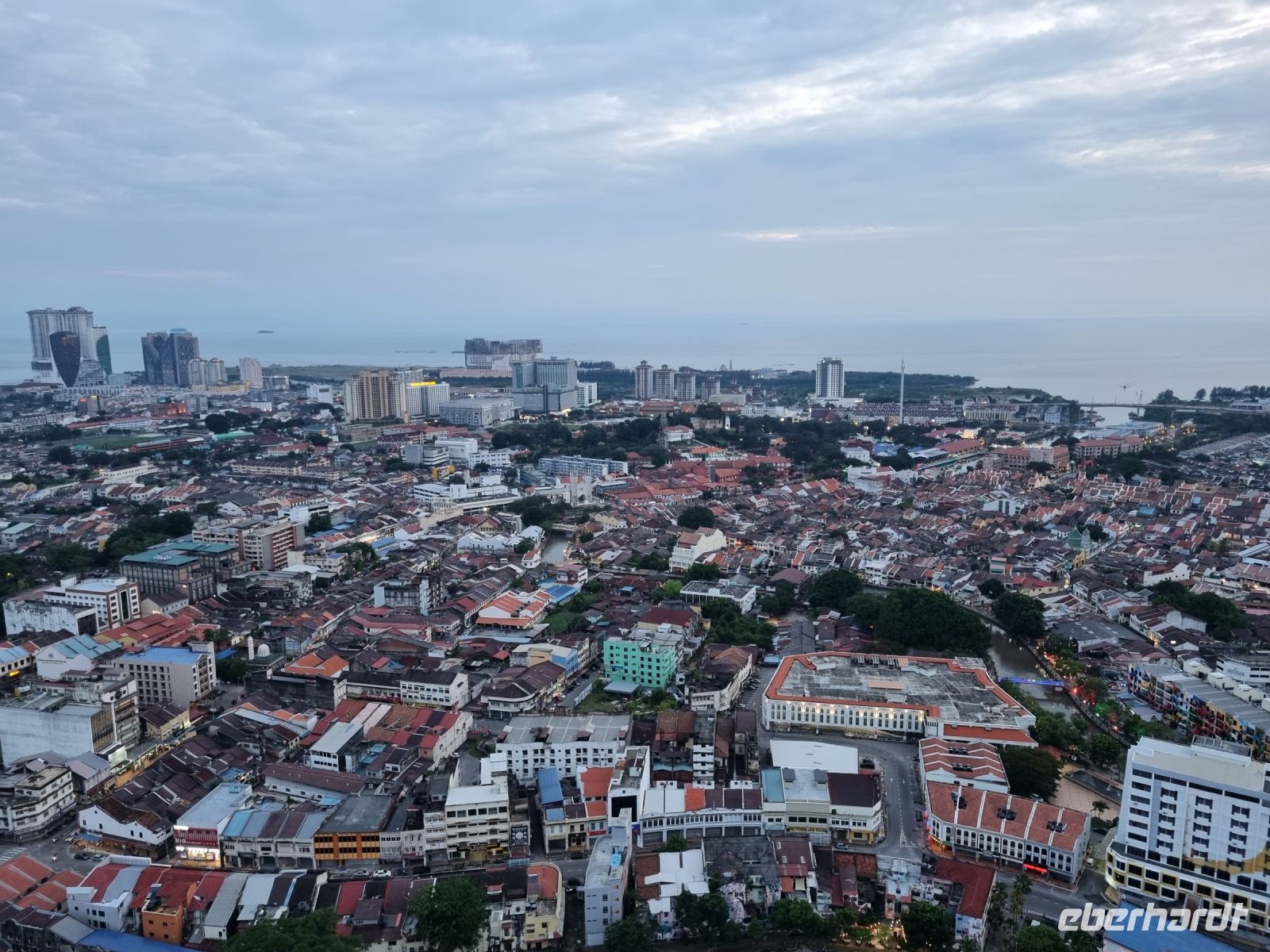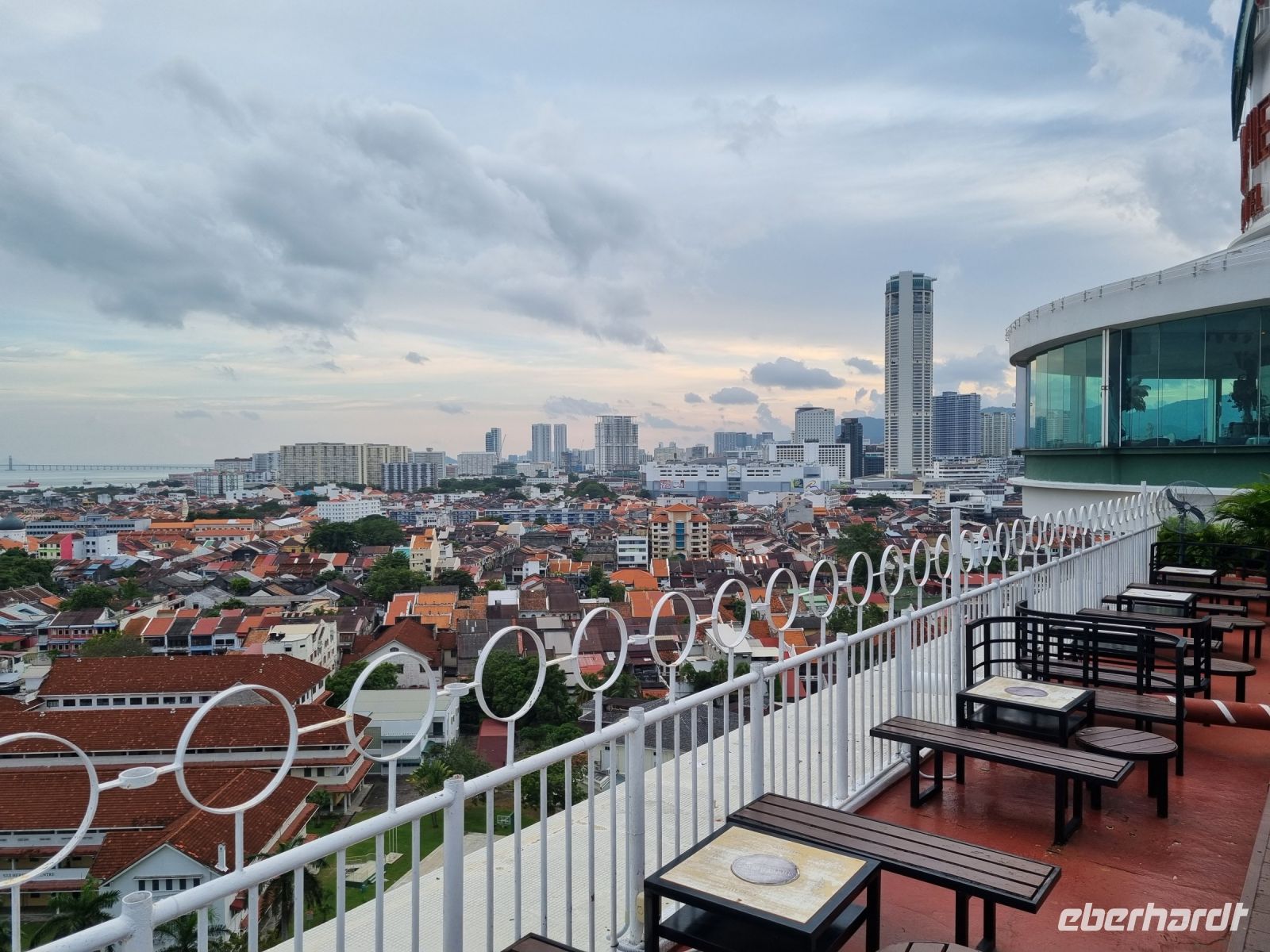 Eine Tempelgruppe liegt sechs Kilometer südlich von Ipoh am Fuße des Felsens Gunung Rapat. Drei buddhistische Tempel stehen hier direkt nebeneinander und wir sind zu Fuß von einem zum anderen gelaufen, um uns alles anzuschauen und einen kleinen Eindruck zu gewinnen. Unsere Mittagspause verbrachten wir im Stadtzentrum von Ipoh, wo wir eine lokale Köstlichkeit probierten – Huhn mit Reis und Sojasprossen. Sehr klassisch und an sich eigentlich nichts Besonderes! Im Anschluss ging es weiter in die Altstadt hinein, wo es viele kleine, aber dennoch moderne Läden gibt. In einem Café-Imbiss konnten wir typisch malayischen Kaffee und Frühlingsrollen verkosten. Danach gab es noch leckere Schoko-Erdbeeren und wir waren gesättigt. Von Ipoh aus fuhren wir schließlich weiter nach Georgetown. Wir überquerten die 24 Kilometer lange Penang Brücke, um auf die gleichnamige Insel zu gelangen. Den restlichen Abend ließen wir in der Rooftop Bar unseres Hotels gemütlich ausklingen.