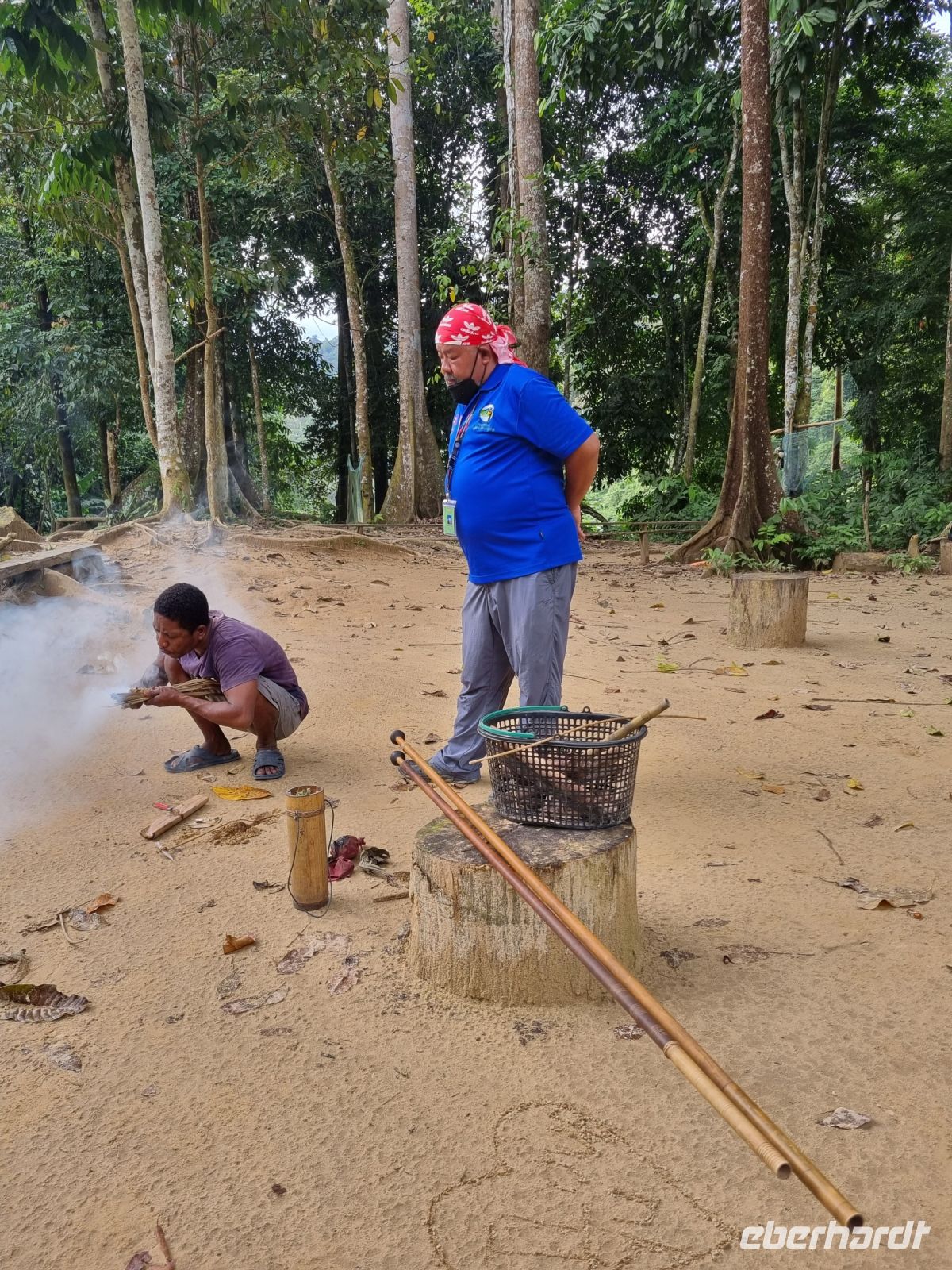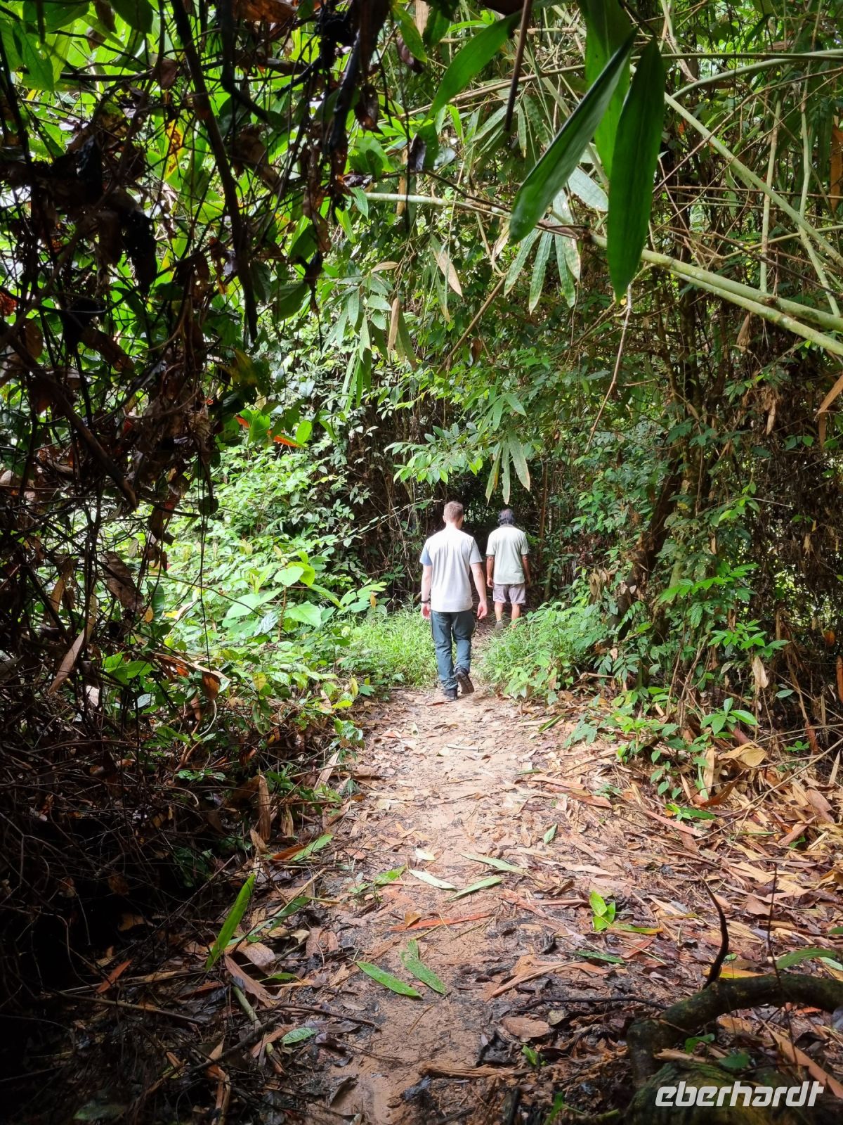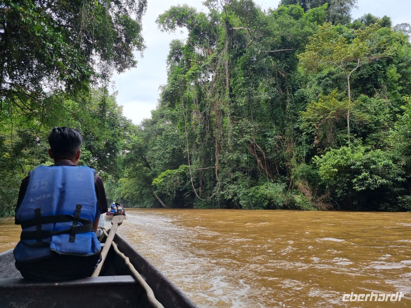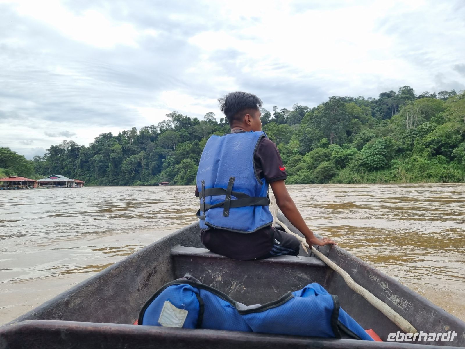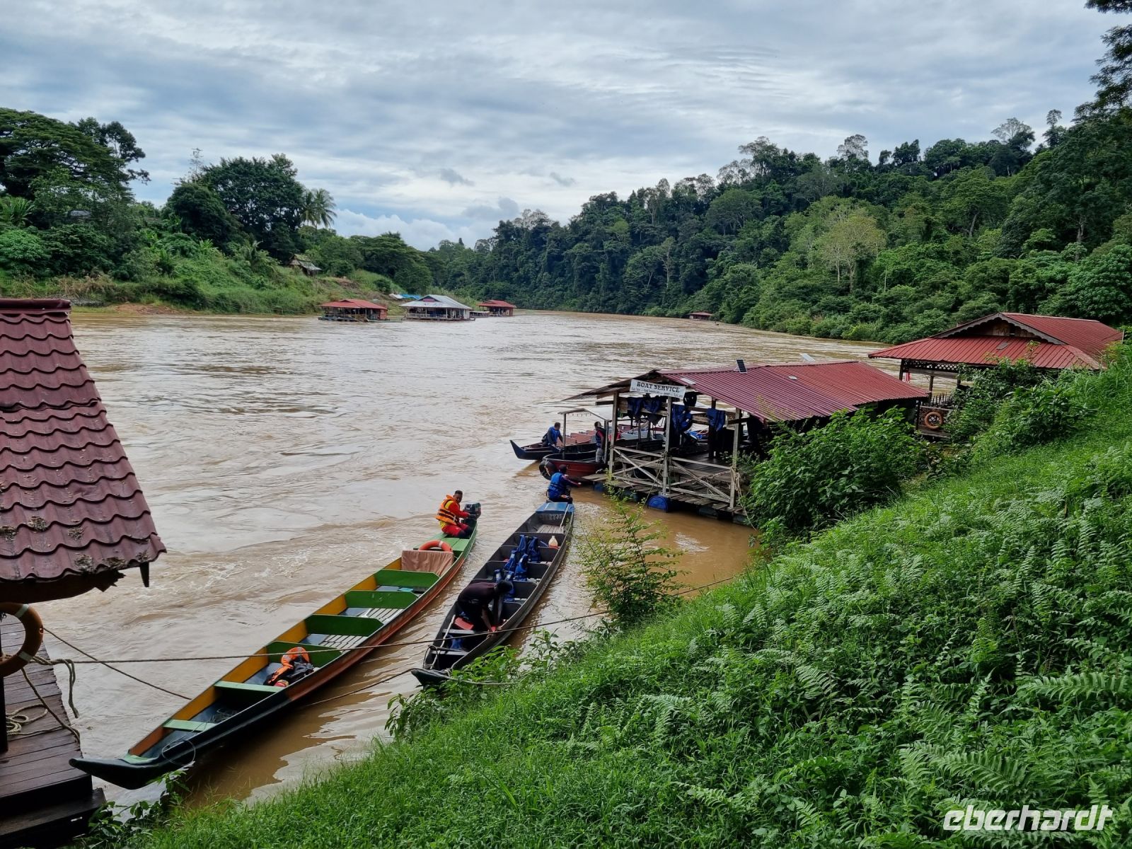 Da es die gesamte Nacht geregnet hatte, starteten wir die Wanderung zum Bukit Teresek bei einer extrem hohen Luftfeuchtigkeit. Wir begannen von der Seite des Canopy Walkway mit dem Aufstieg und der Weg führte uns über unzählige Treppen bzw. Holzstege hinauf zu zwei Aussichtspunkten, wobei es 270 Höhenunterschied zu überwinden galt, was im tropischen Dschungel ziemlich schweißtreibend war! Wir waren erleichtert, als wir letztendlich auf dem 344 Meter hohen Bukit Teresek angekommen waren und schon ein wenig stolz auf uns. Nach einer insgesamt etwa 3-stündigen Wanderung hatten wir uns das Mittagessen im Resort redlich verdient. Gut gestärkt konnte es dann am Nachmittag mit weiteren Aktivitäten weitergehen... Auf uns warteten mehrere kleine Boote, mit denen wir etwa 30 Minuten gemütlich den Fluss entlang schipperten, ein Genuss diese Stille und einzigartige Natur...! Wir wussten zu diesem Zeitpunkt jedoch noch nicht, dass uns eine weitere recht anspruchsvolle kurze Wanderung zu einer Badestelle bevorstand. Durch die Regenfälle der letzten Tage war der Boden ziemlich aufgeweicht und es bestand vielerorts extreme Rutschgefahr, so dass oberste Vorsicht geboten war. Zum Glück verlief alles reibungslos, aber es war immerhin sehr abenteuerlich! Am späten Nachmittag fuhren wir zu guter Letzt noch mit dem Boot zu einer Siedlung der Ureinwohner Malaysias, den Orang Asli. Diese leben in kleinen Dörfern entlang des Flusses. Ein Programmpunkt, der mir selbst allerdings nicht so gut gefiel. Das Ganze hat etwas von "Freiluftkino" mit den Einwohnern als Darsteller. Tag für Tag laden Boote Touristen ab, die dann zwischen den Wohnhäusern der Menschen hin und her laufen und wild Fotos machen. Trotzdem konnten wir hier viel über das Leben des Orang Aslis erfahren. Die Jagdtechniken waren ebenso beeindruckend wie die Fähigkeit, mit einfachen Methoden ein Feuer zu entfachen.