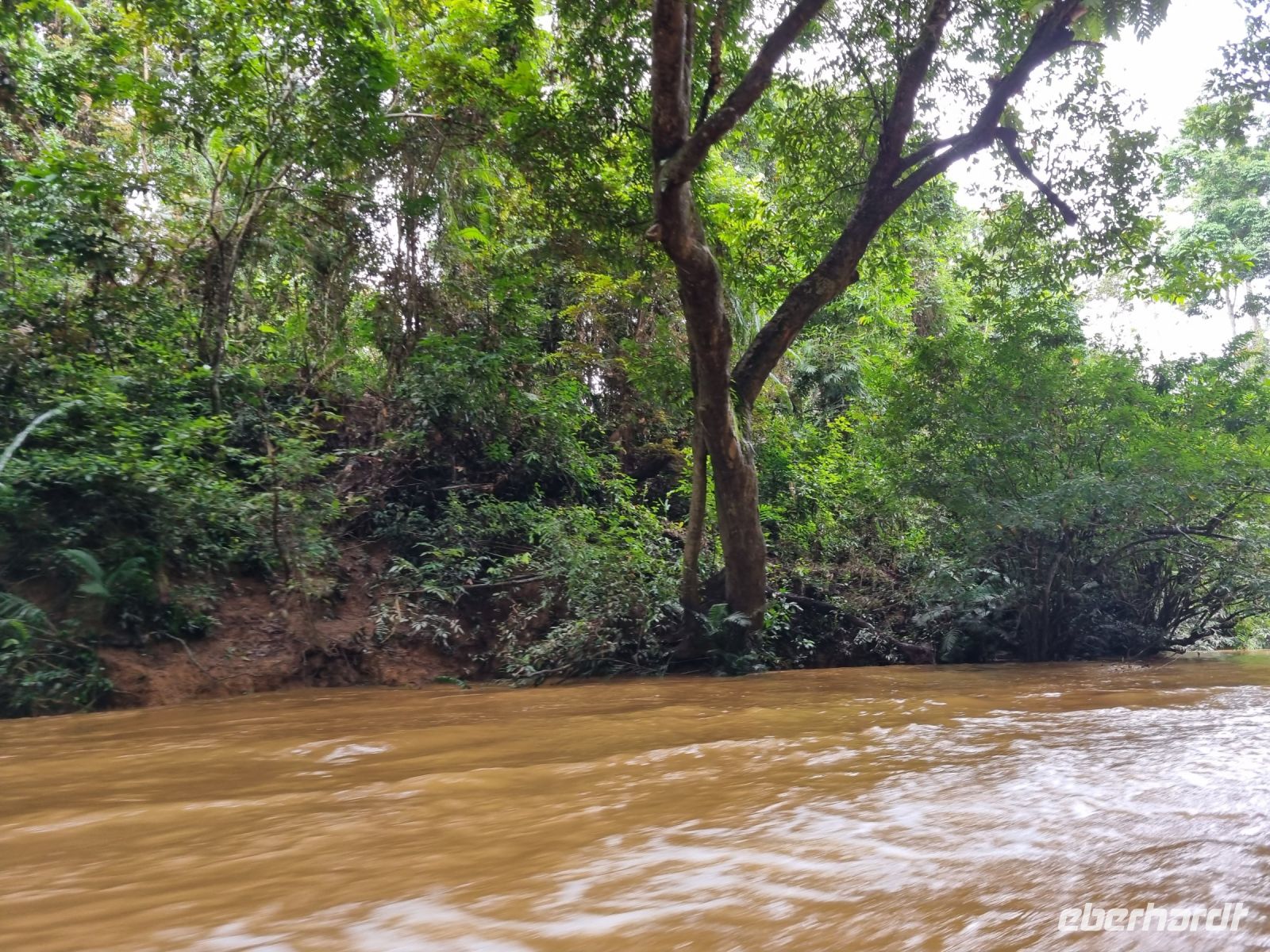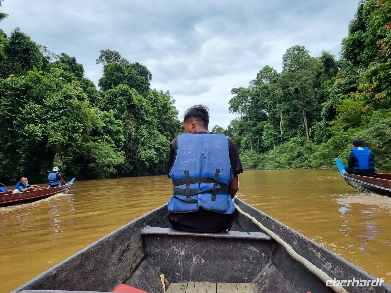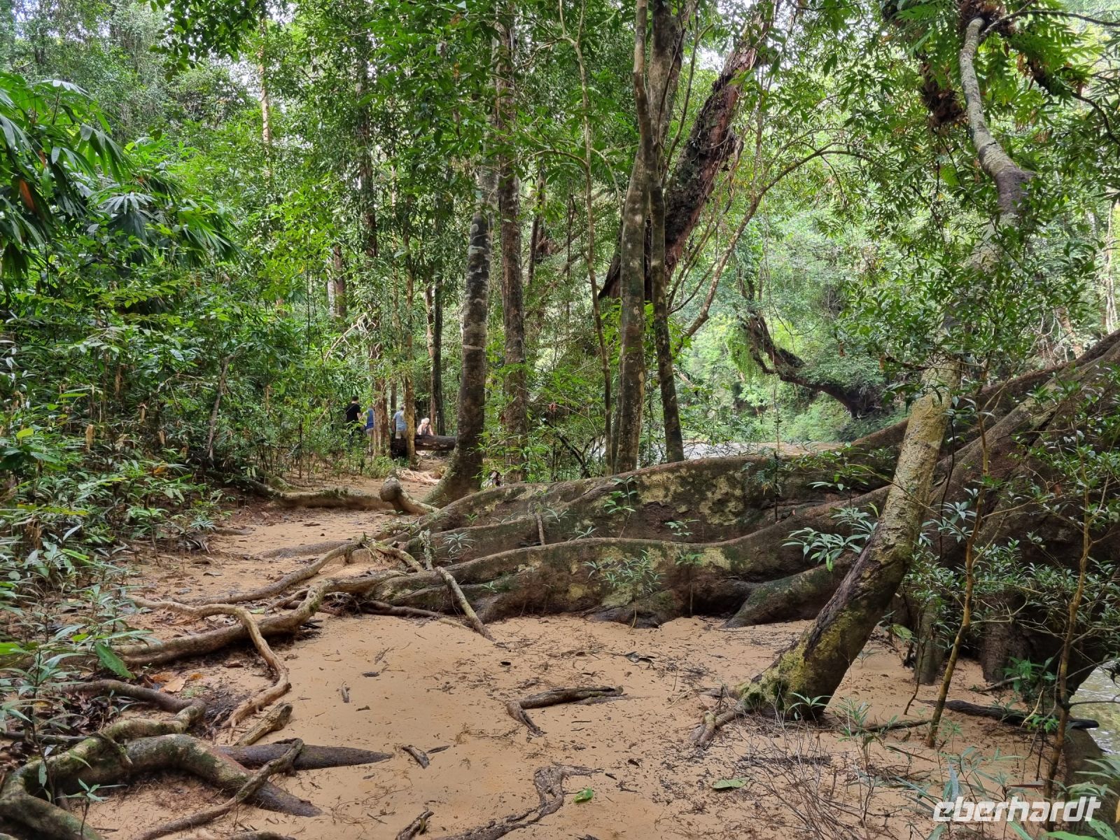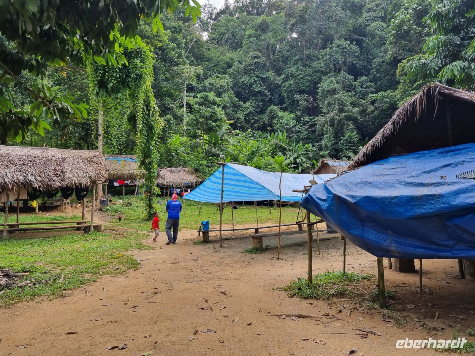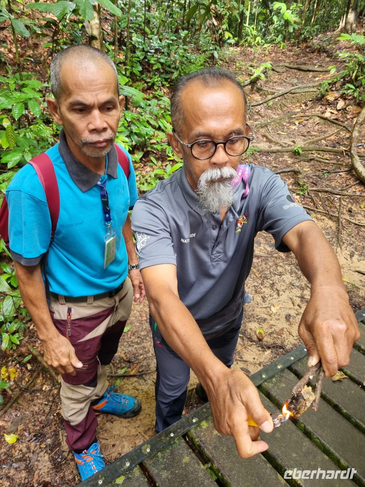 Da es die gesamte Nacht geregnet hatte, starteten wir die Wanderung zum Bukit Teresek bei einer extrem hohen Luftfeuchtigkeit. Wir begannen von der Seite des Canopy Walkway mit dem Aufstieg und der Weg führte uns über unzählige Treppen bzw. Holzstege hinauf zu zwei Aussichtspunkten, wobei es 270 Höhenunterschied zu überwinden galt, was im tropischen Dschungel ziemlich schweißtreibend war! Wir waren erleichtert, als wir letztendlich auf dem 344 Meter hohen Bukit Teresek angekommen waren und schon ein wenig stolz auf uns. Nach einer insgesamt etwa 3-stündigen Wanderung hatten wir uns das Mittagessen im Resort redlich verdient. Gut gestärkt konnte es dann am Nachmittag mit weiteren Aktivitäten weitergehen... Auf uns warteten mehrere kleine Boote, mit denen wir etwa 30 Minuten gemütlich den Fluss entlang schipperten, ein Genuss diese Stille und einzigartige Natur...! Wir wussten zu diesem Zeitpunkt jedoch noch nicht, dass uns eine weitere recht anspruchsvolle kurze Wanderung zu einer Badestelle bevorstand. Durch die Regenfälle der letzten Tage war der Boden ziemlich aufgeweicht und es bestand vielerorts extreme Rutschgefahr, so dass oberste Vorsicht geboten war. Zum Glück verlief alles reibungslos, aber es war immerhin sehr abenteuerlich! Am späten Nachmittag fuhren wir zu guter Letzt noch mit dem Boot zu einer Siedlung der Ureinwohner Malaysias, den Orang Asli. Diese leben in kleinen Dörfern entlang des Flusses. Ein Programmpunkt, der mir selbst allerdings nicht so gut gefiel. Das Ganze hat etwas von "Freiluftkino" mit den Einwohnern als Darsteller. Tag für Tag laden Boote Touristen ab, die dann zwischen den Wohnhäusern der Menschen hin und her laufen und wild Fotos machen. Trotzdem konnten wir hier viel über das Leben des Orang Aslis erfahren. Die Jagdtechniken waren ebenso beeindruckend wie die Fähigkeit, mit einfachen Methoden ein Feuer zu entfachen.