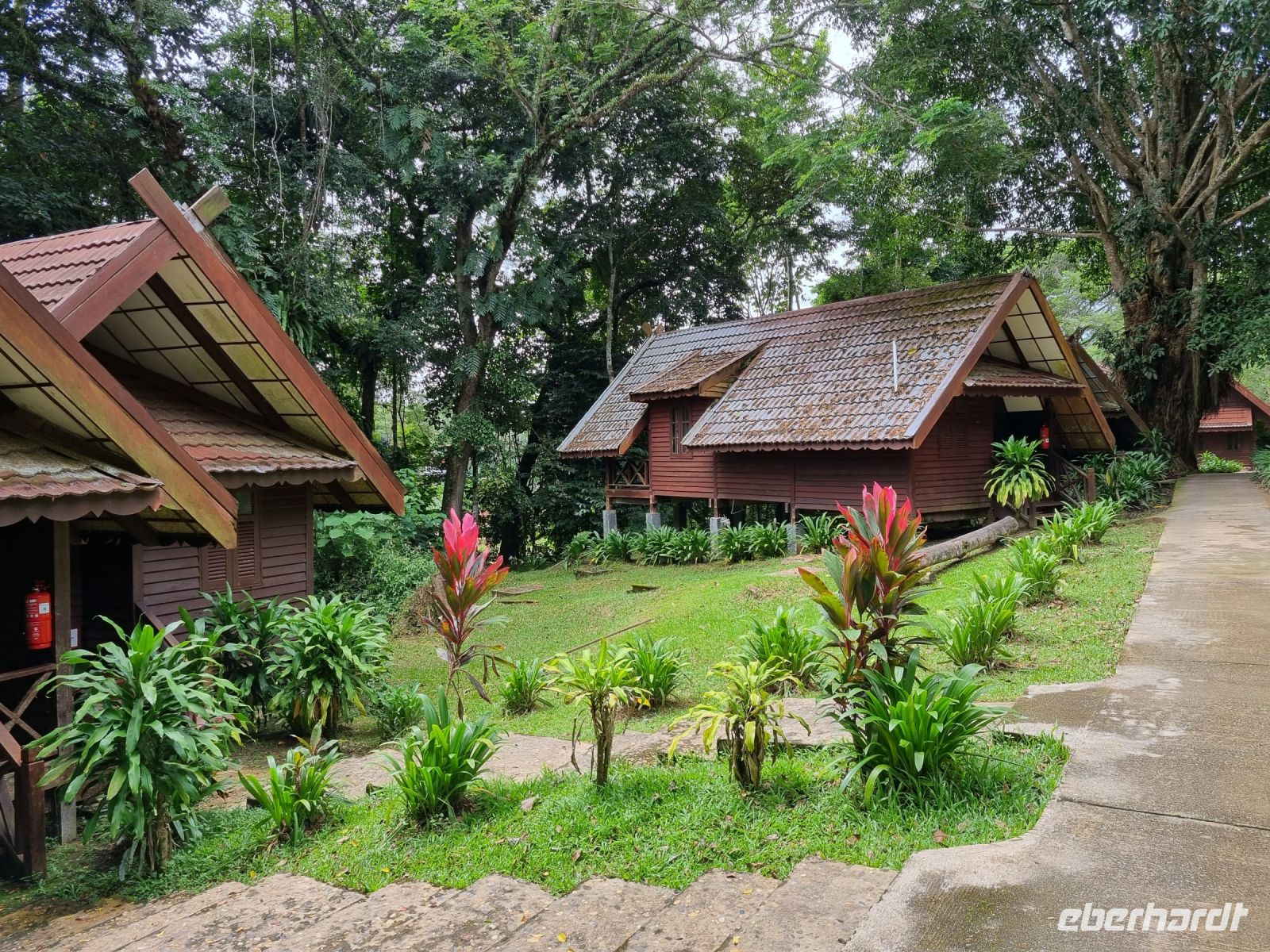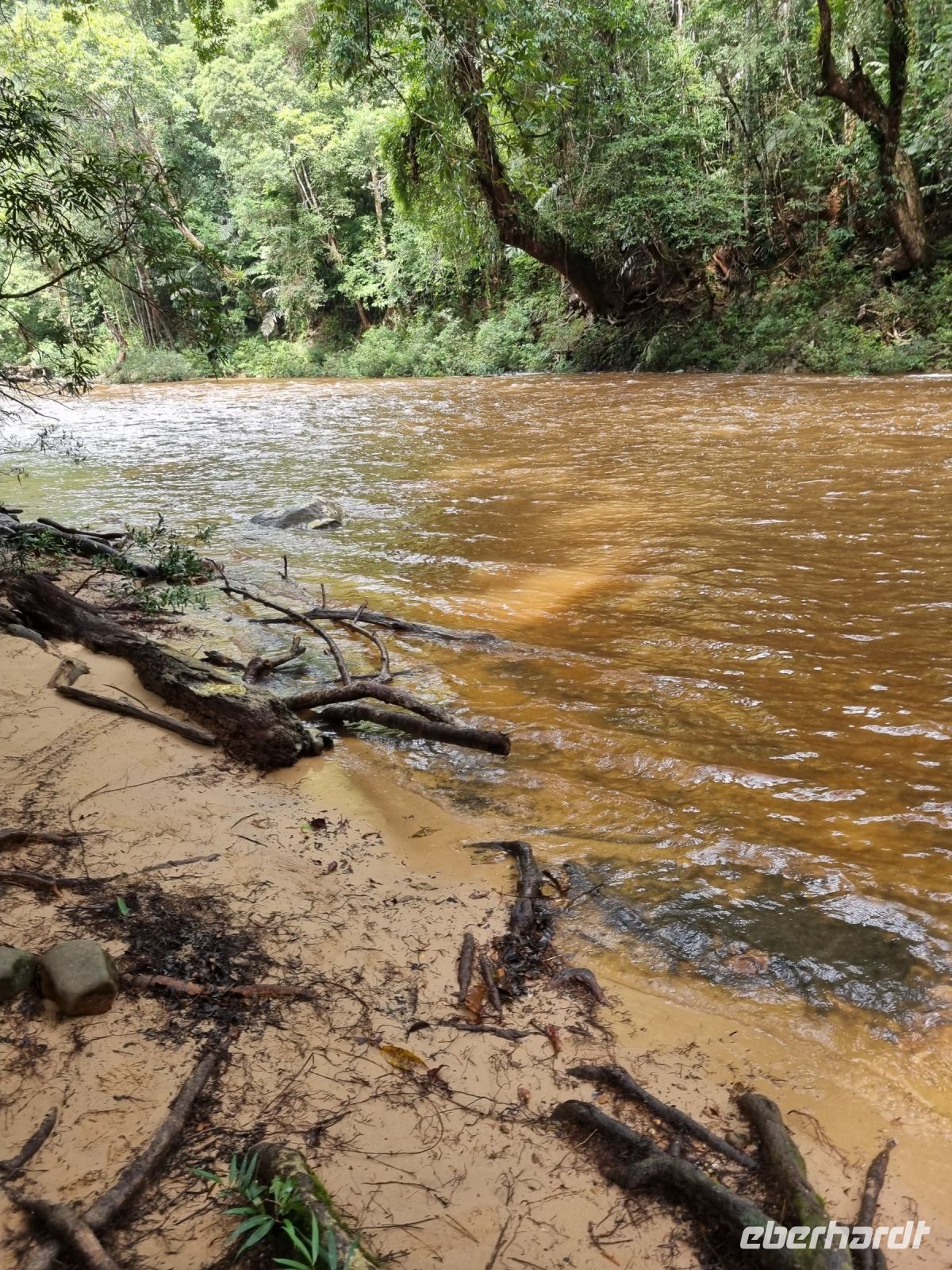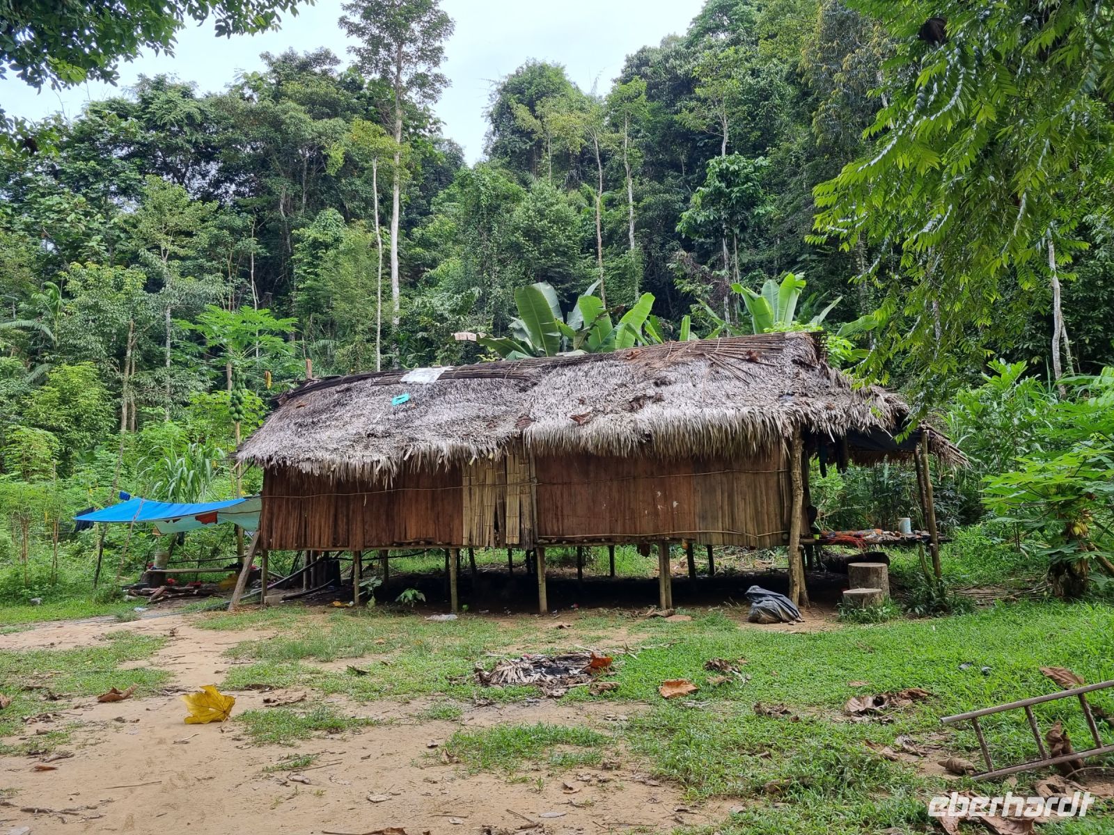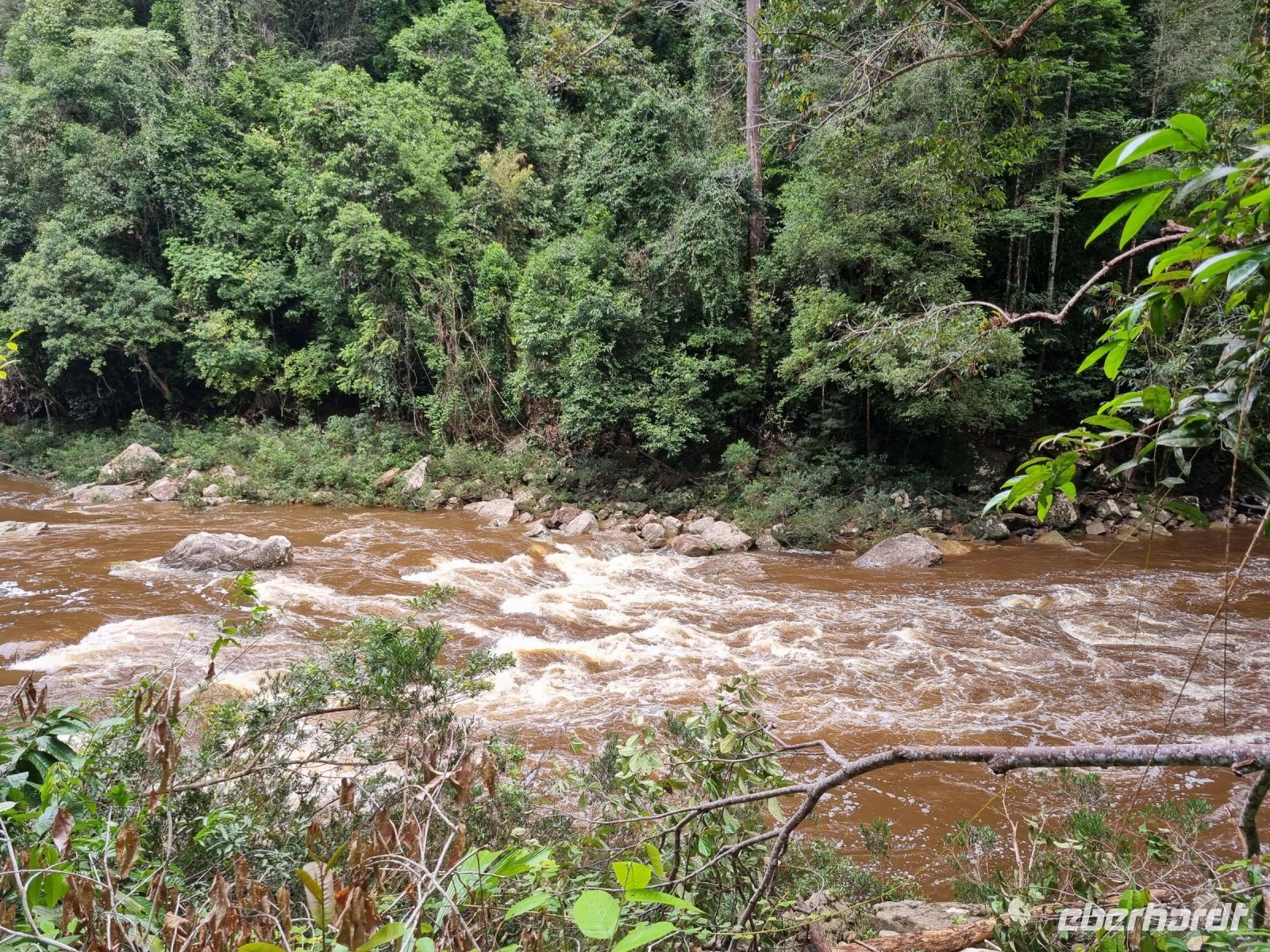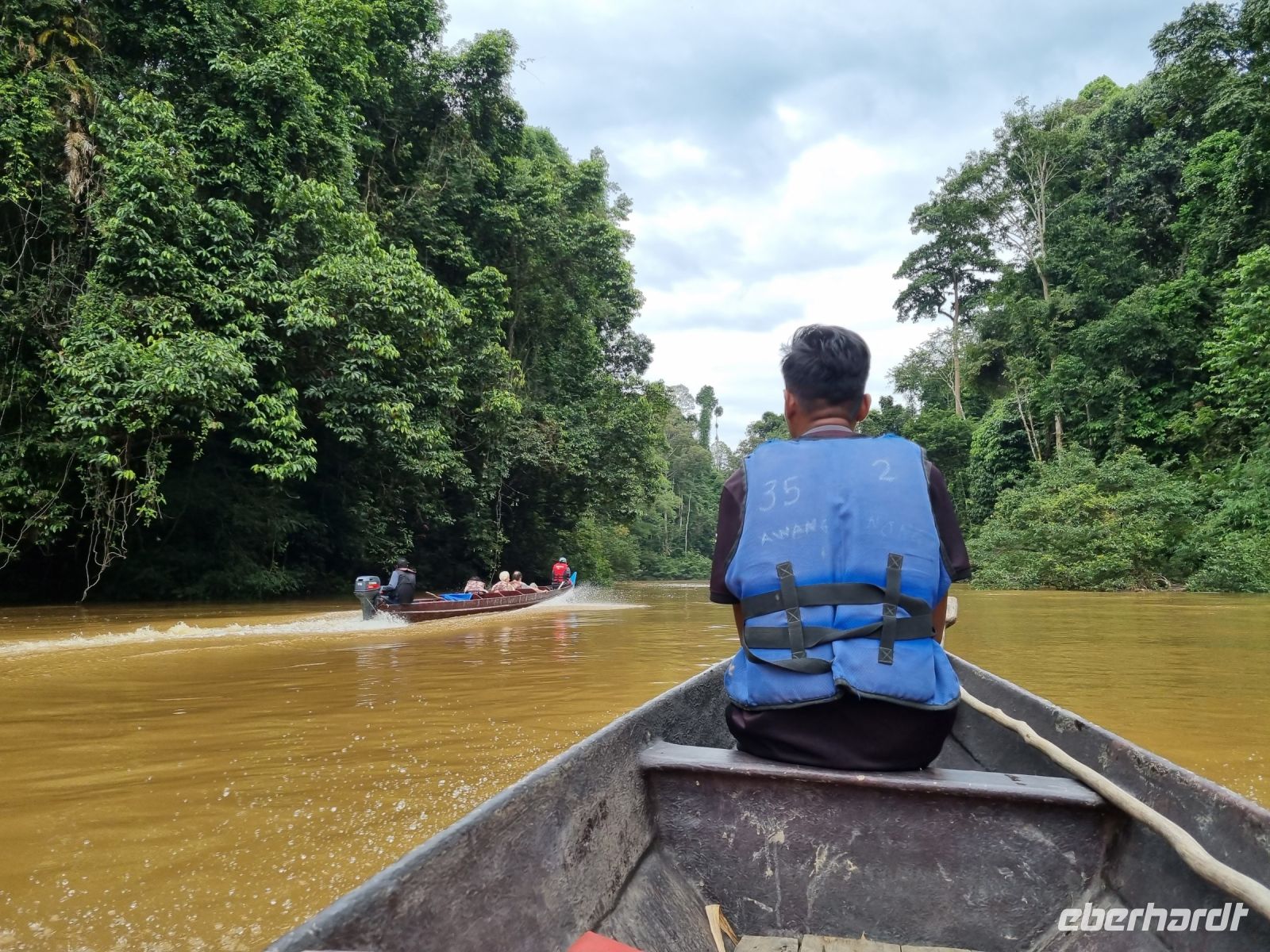 Da es die gesamte Nacht geregnet hatte, starteten wir die Wanderung zum Bukit Teresek bei einer extrem hohen Luftfeuchtigkeit. Wir begannen von der Seite des Canopy Walkway mit dem Aufstieg und der Weg führte uns über unzählige Treppen bzw. Holzstege hinauf zu zwei Aussichtspunkten, wobei es 270 Höhenunterschied zu überwinden galt, was im tropischen Dschungel ziemlich schweißtreibend war! Wir waren erleichtert, als wir letztendlich auf dem 344 Meter hohen Bukit Teresek angekommen waren und schon ein wenig stolz auf uns. Nach einer insgesamt etwa 3-stündigen Wanderung hatten wir uns das Mittagessen im Resort redlich verdient. Gut gestärkt konnte es dann am Nachmittag mit weiteren Aktivitäten weitergehen... Auf uns warteten mehrere kleine Boote, mit denen wir etwa 30 Minuten gemütlich den Fluss entlang schipperten, ein Genuss diese Stille und einzigartige Natur...! Wir wussten zu diesem Zeitpunkt jedoch noch nicht, dass uns eine weitere recht anspruchsvolle kurze Wanderung zu einer Badestelle bevorstand. Durch die Regenfälle der letzten Tage war der Boden ziemlich aufgeweicht und es bestand vielerorts extreme Rutschgefahr, so dass oberste Vorsicht geboten war. Zum Glück verlief alles reibungslos, aber es war immerhin sehr abenteuerlich! Am späten Nachmittag fuhren wir zu guter Letzt noch mit dem Boot zu einer Siedlung der Ureinwohner Malaysias, den Orang Asli. Diese leben in kleinen Dörfern entlang des Flusses. Ein Programmpunkt, der mir selbst allerdings nicht so gut gefiel. Das Ganze hat etwas von "Freiluftkino" mit den Einwohnern als Darsteller. Tag für Tag laden Boote Touristen ab, die dann zwischen den Wohnhäusern der Menschen hin und her laufen und wild Fotos machen. Trotzdem konnten wir hier viel über das Leben des Orang Aslis erfahren. Die Jagdtechniken waren ebenso beeindruckend wie die Fähigkeit, mit einfachen Methoden ein Feuer zu entfachen.