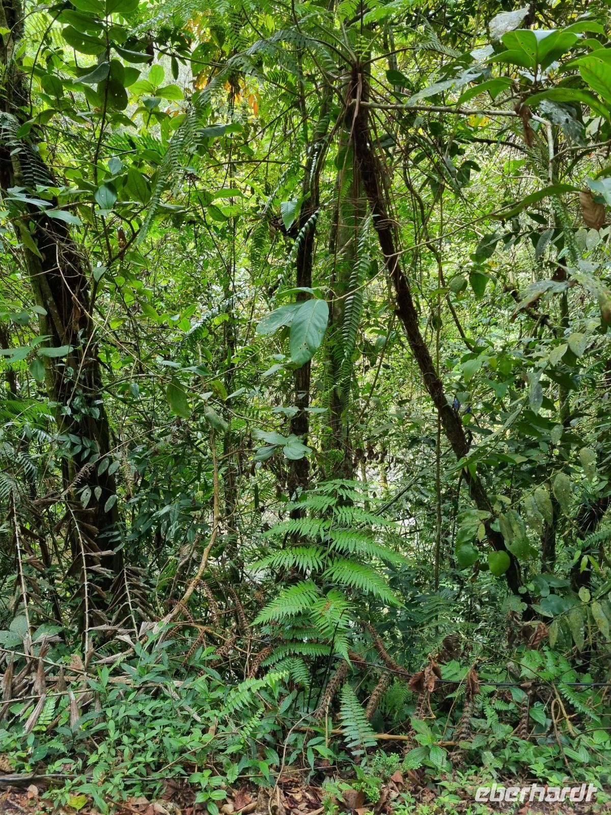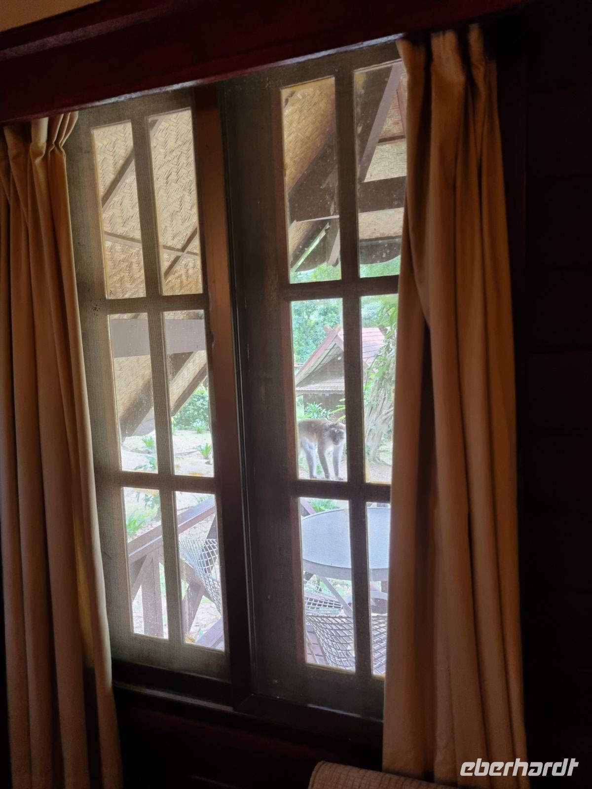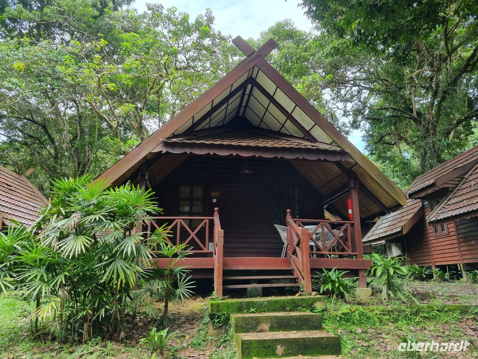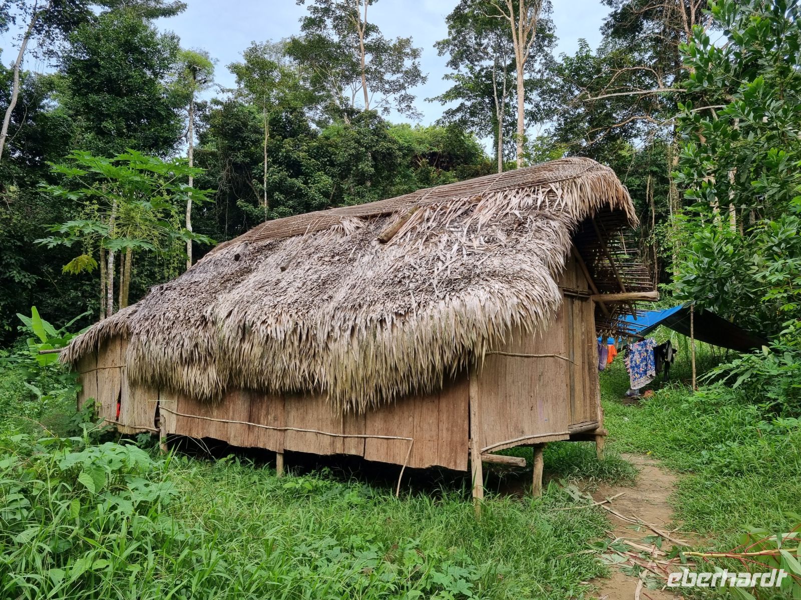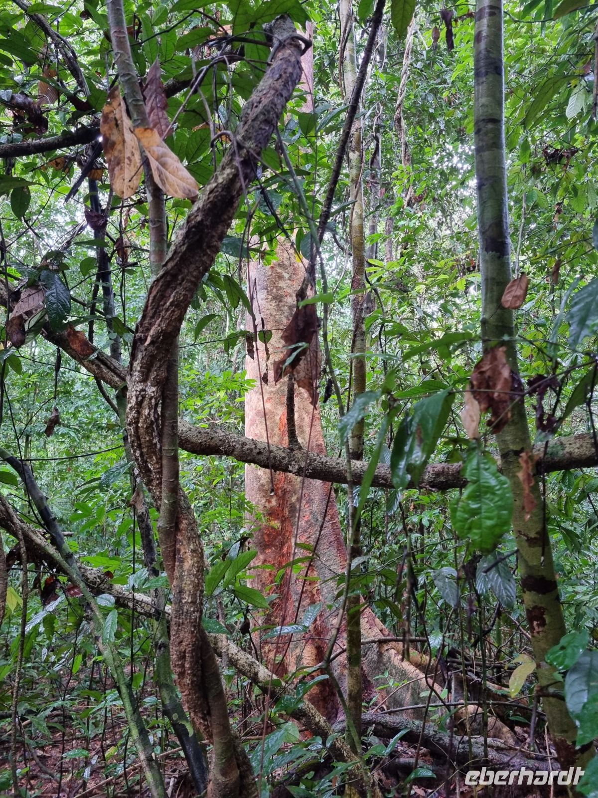 Da es die gesamte Nacht geregnet hatte, starteten wir die Wanderung zum Bukit Teresek bei einer extrem hohen Luftfeuchtigkeit. Wir begannen von der Seite des Canopy Walkway mit dem Aufstieg und der Weg führte uns über unzählige Treppen bzw. Holzstege hinauf zu zwei Aussichtspunkten, wobei es 270 Höhenunterschied zu überwinden galt, was im tropischen Dschungel ziemlich schweißtreibend war! Wir waren erleichtert, als wir letztendlich auf dem 344 Meter hohen Bukit Teresek angekommen waren und schon ein wenig stolz auf uns. Nach einer insgesamt etwa 3-stündigen Wanderung hatten wir uns das Mittagessen im Resort redlich verdient. Gut gestärkt konnte es dann am Nachmittag mit weiteren Aktivitäten weitergehen... Auf uns warteten mehrere kleine Boote, mit denen wir etwa 30 Minuten gemütlich den Fluss entlang schipperten, ein Genuss diese Stille und einzigartige Natur...! Wir wussten zu diesem Zeitpunkt jedoch noch nicht, dass uns eine weitere recht anspruchsvolle kurze Wanderung zu einer Badestelle bevorstand. Durch die Regenfälle der letzten Tage war der Boden ziemlich aufgeweicht und es bestand vielerorts extreme Rutschgefahr, so dass oberste Vorsicht geboten war. Zum Glück verlief alles reibungslos, aber es war immerhin sehr abenteuerlich! Am späten Nachmittag fuhren wir zu guter Letzt noch mit dem Boot zu einer Siedlung der Ureinwohner Malaysias, den Orang Asli. Diese leben in kleinen Dörfern entlang des Flusses. Ein Programmpunkt, der mir selbst allerdings nicht so gut gefiel. Das Ganze hat etwas von "Freiluftkino" mit den Einwohnern als Darsteller. Tag für Tag laden Boote Touristen ab, die dann zwischen den Wohnhäusern der Menschen hin und her laufen und wild Fotos machen. Trotzdem konnten wir hier viel über das Leben des Orang Aslis erfahren. Die Jagdtechniken waren ebenso beeindruckend wie die Fähigkeit, mit einfachen Methoden ein Feuer zu entfachen.