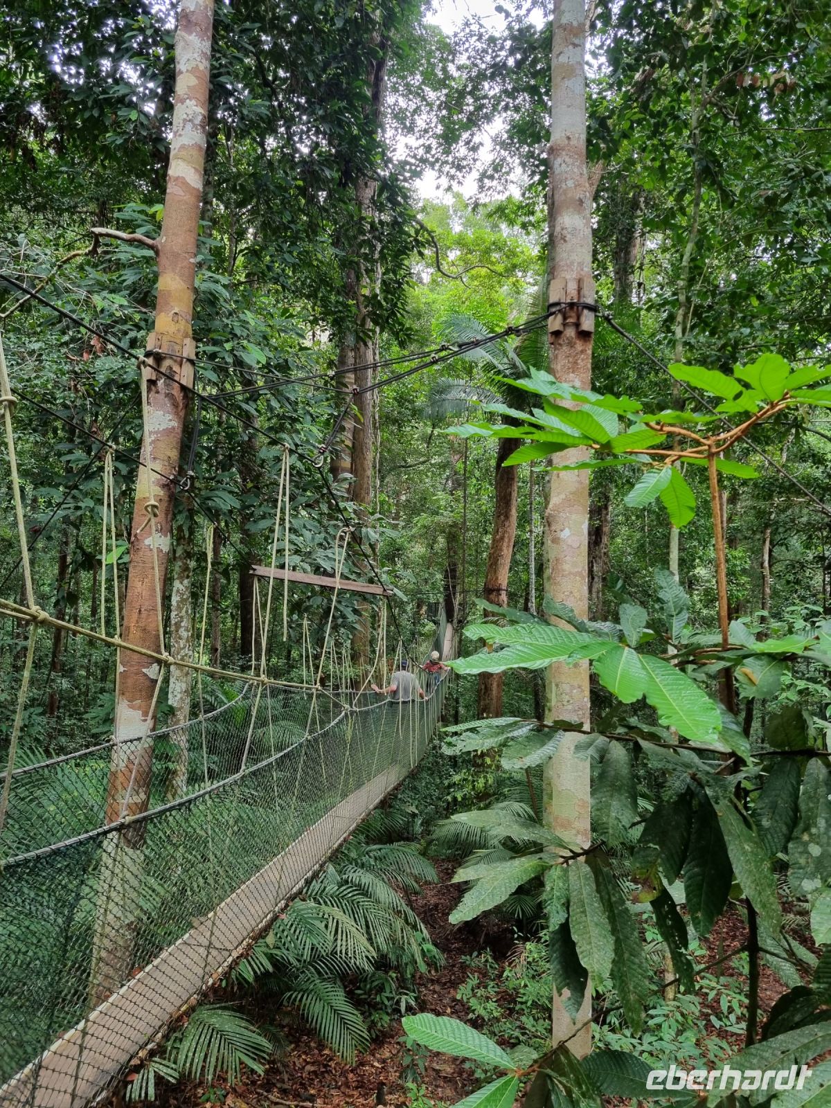 Wir verließen das quirlige Kuala Lumpur und begaben uns weiter nordostwärts in unbewohntere Gebiete von Malaysia. Nach einer etwa 4-stündigen Busfahrt erreichten wir den kleinen Ort Kuala Tahan inmitten des Nationalparks Taman Negara. Zu Fuß ging es von hier zu einer kleinen Bootsanlegestelle, von der aus wir über den Fluss Tembeling zu unserem Resort für die nächsten beiden Übernachtungen übersetzten. Hier mitten im Dschungel angekommen, hatten wir die nächsten zwei Stunden Zeit uns einzurichten und die Umgebung zu erkunden. Zweifellos die größte Attraktion und ein Muss für alle, die schwindelfrei sind, ist der in die Baumkronen gebaute "Canopy Walk", immerhin der Höhepunkt des heutigen Nachmittagsprogramms. Bei diesem Spaziergang in 20-45 Metern Höhe auf dem 536 Meter langen System von neun bis 70 Meter langen Hängebrücken und acht Plattformen erhielten wir einen Einblick in die für uns sonst unerreichbare Wipfelregion des tropischen Regenwalds. Allein das Laufen auf den schmalen, schwankenden Hängebrücken, die durch Netze und Seile abgesichert sind, ist eine tolle Erfahrung. Wer wollte, der konnte anschließend noch an einer aufregenden und recht spritzigen Wildwasser-Tour teilnehmen, nass werden war dabei garantiert...!!! Nach dem Abendessen im Resort ging es zum Abschluss des heutigen Tages auf eine nächtliche Dschungelwanderung. Mit Taschenlampen ausgestattet wagten wir uns nochmals in den Dschungel hinein und unsere örtlichen Reiseleiter zeigten uns verschiedene Tiere, so sahen wir zum Beispiel Spinnen, Schlangen, Skorpione, schlafende Vögel und hörten auch einige Frösche.