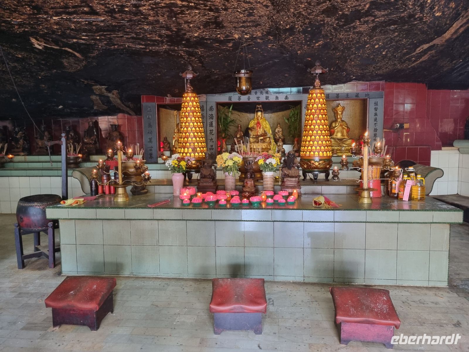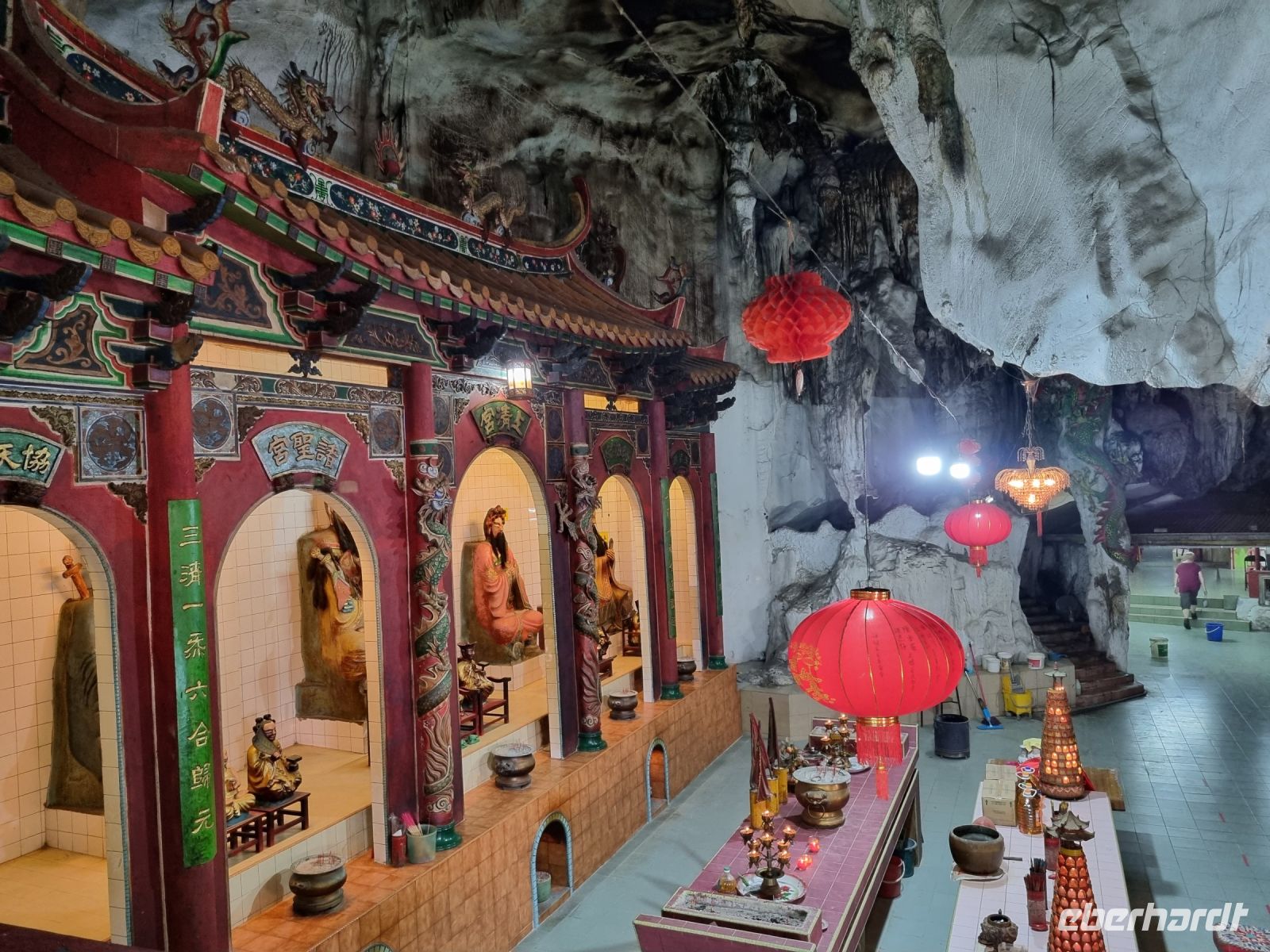 Wir verließen unser Hotel und fuhren zur BOH „Best Of Highlands" Teeplantage. Simon erklärte uns alles zum Ernten und Verarbeiten der Teeblätter und im Teeladen konnten wir noch ein paar schöne Souvenirs für zuhause erwerben. Heute schien auch die Sonne wieder und wir konnten das angenehme Klima genießen, bevor es weiter ging. Gegen Mittag erreichten wir Kellies Castle. Der Schotte William Kellie Smith kam im 20. Jahrhundert nach Malaysia und hat hier neben seinem Herrenhaus auch ein Schloss errichten wollen. Dieses wurde jedoch nie fertig gestellt. Die Ruine dient heute als Touristenattraktion und abends finden hier sogar Gruseltouren statt. Anschließend erreichten wir die Stadt Ipoh, umringt von zahlreichen Karstfelsen. Diese nutzen die Anwohner, um immer wieder neue Tempel in und an den Höhlen zu errichten.