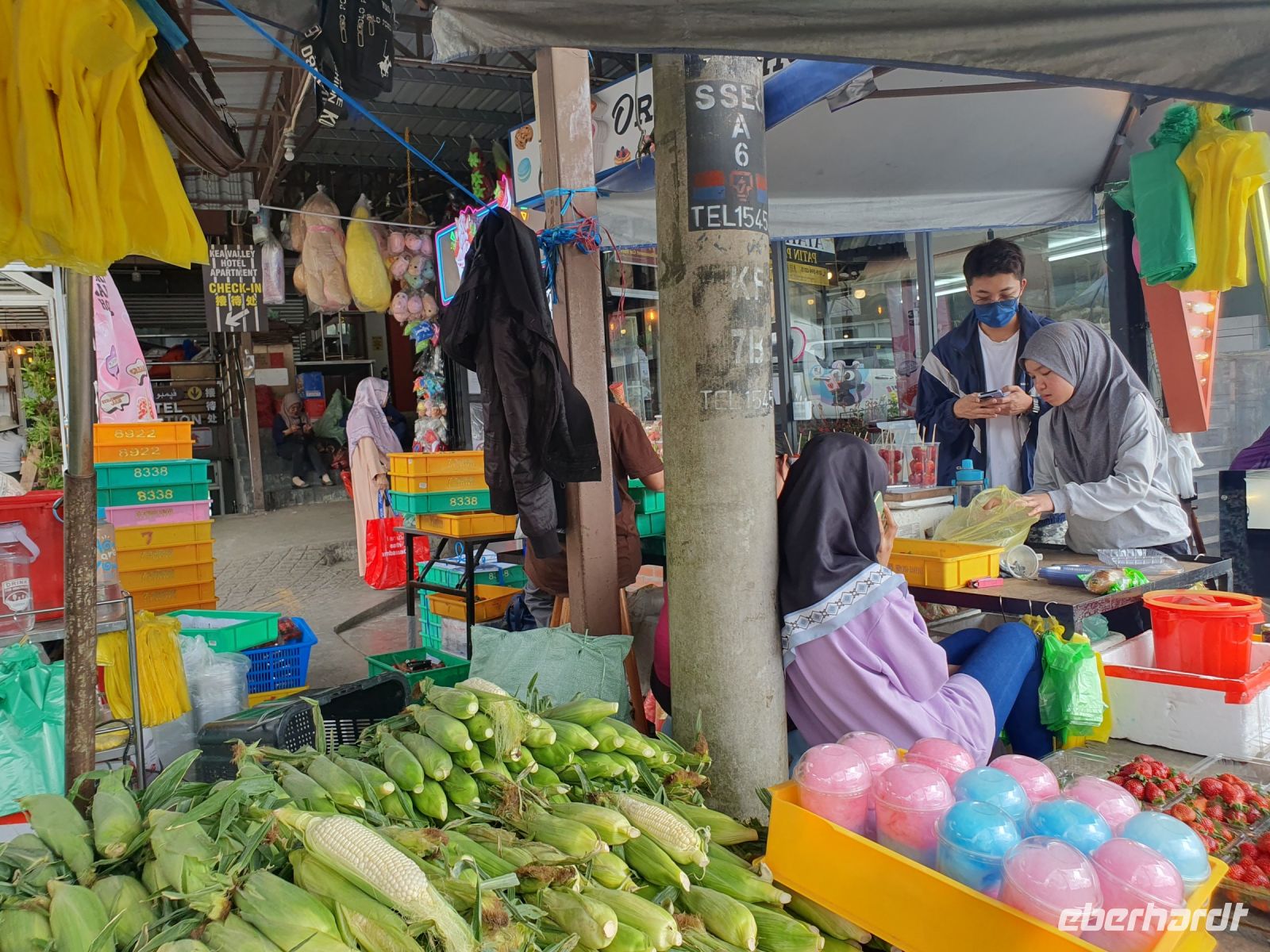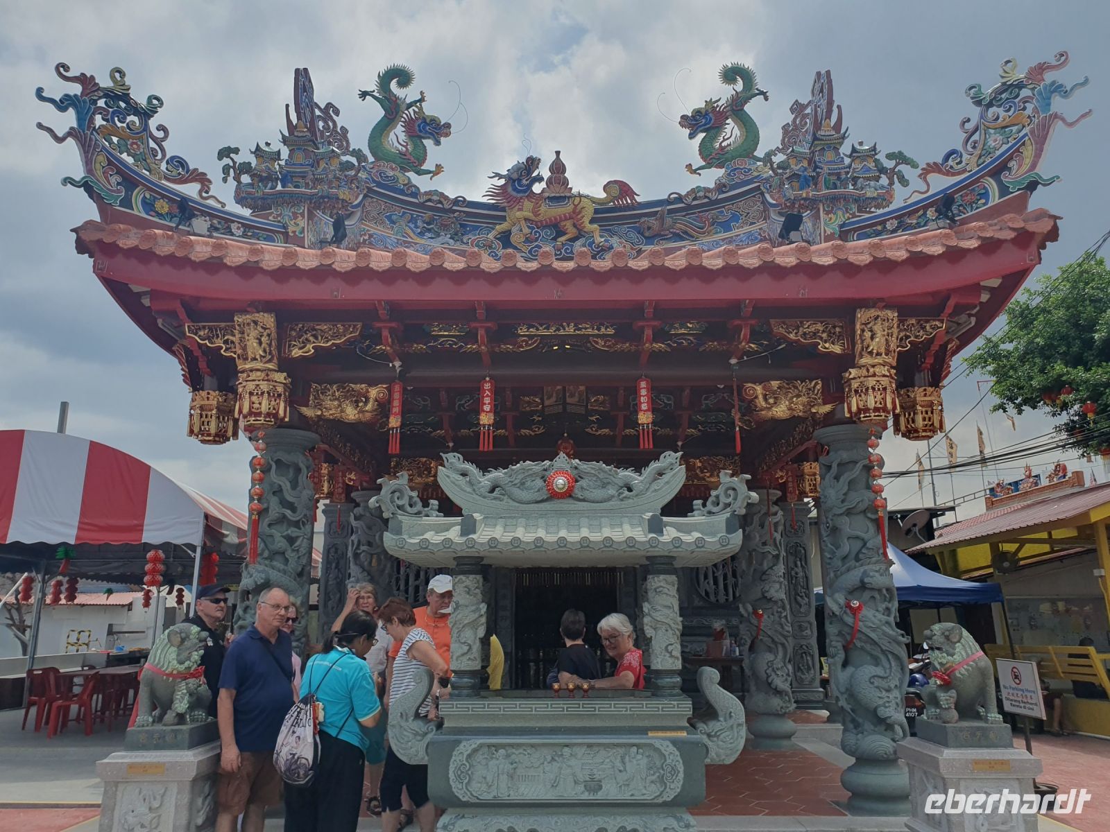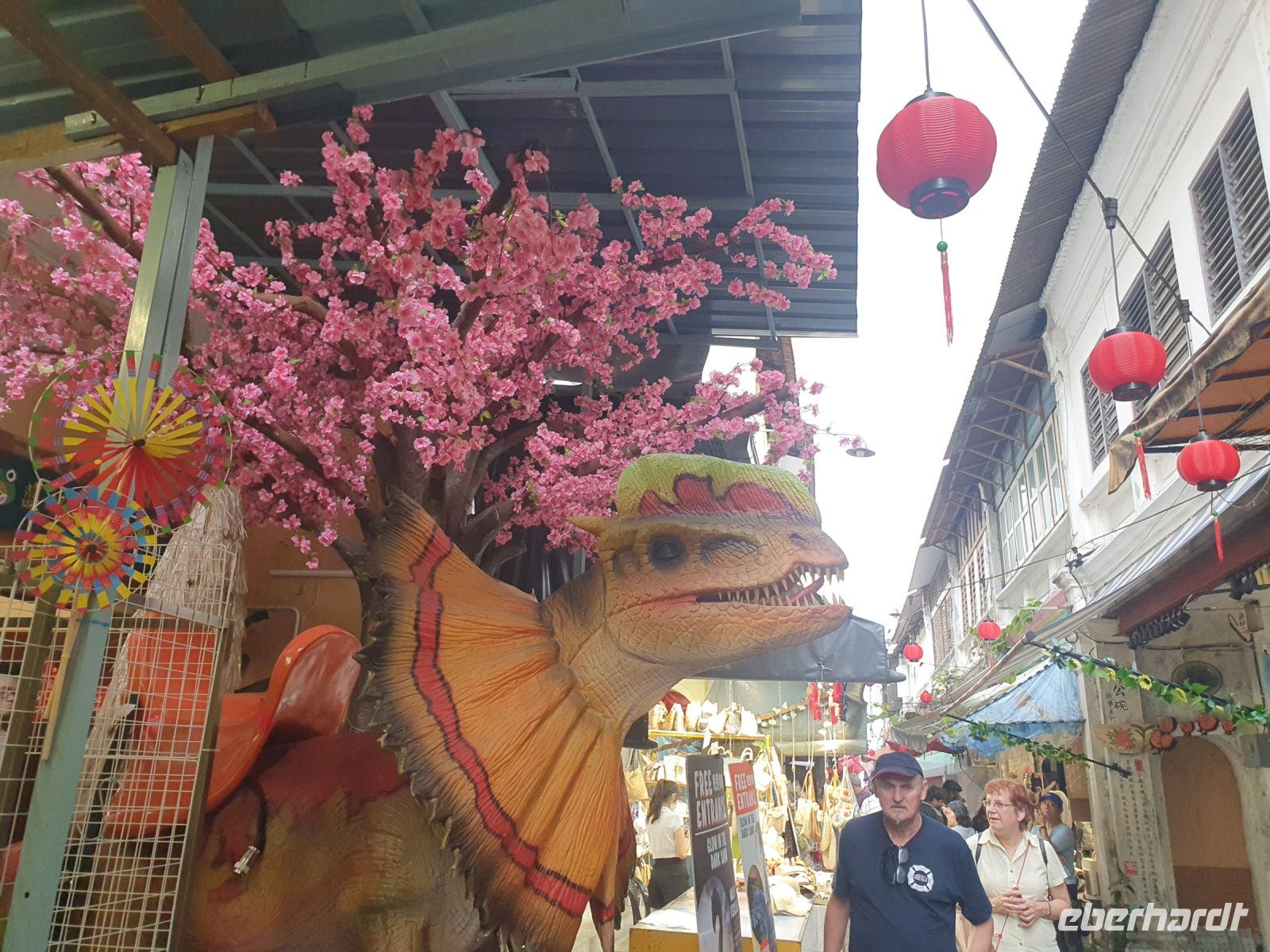 Nach einer kurzen Pause im Hotel warteten bereits einige Rikschas vor dem Hotel auf uns. Alle Rikschas waren unterschiedlich geschmückt und mit Musik, die aus den Boxen einiger Rikschas dröhnten, fuhren wir durch die Stadt. Unterwegs machten wir auch Halt und erkundeten weiter die Stadt. So hielten wir am Weld Quay, wo die auf Stelzen stehenden Häuser von Chew Jetty einen direkten Blick auf den Ozean bieten. Hier bot es sich auch wieder an das ein oder andere Souvenir zu erwerben.