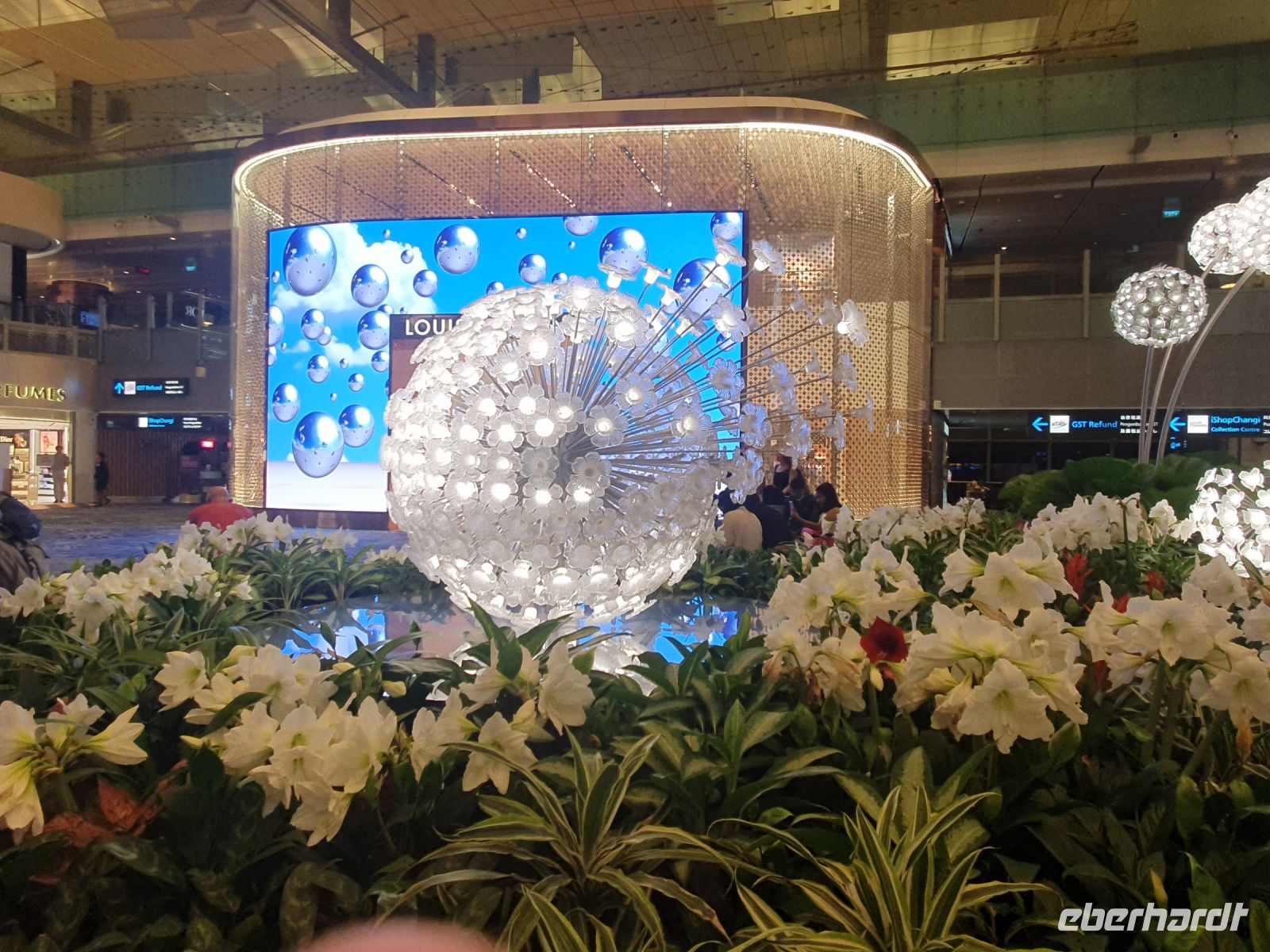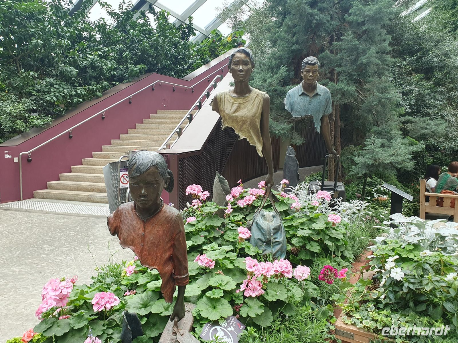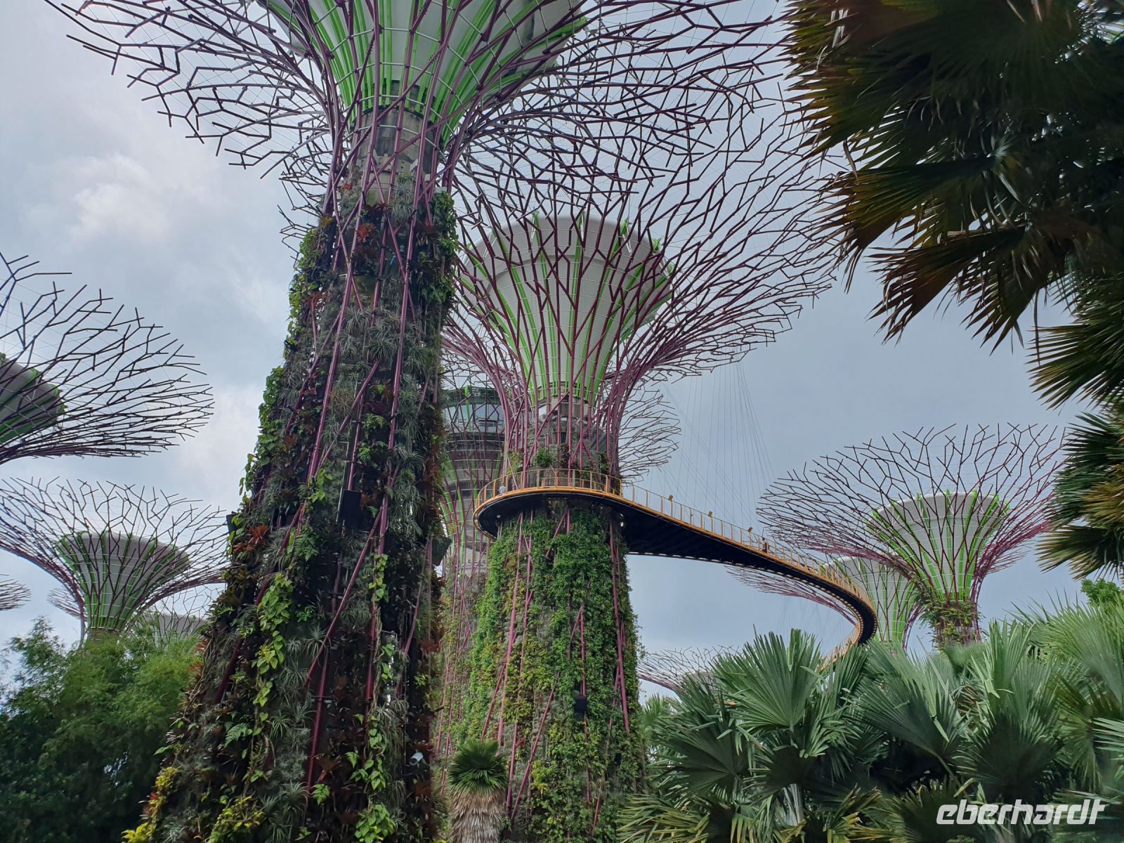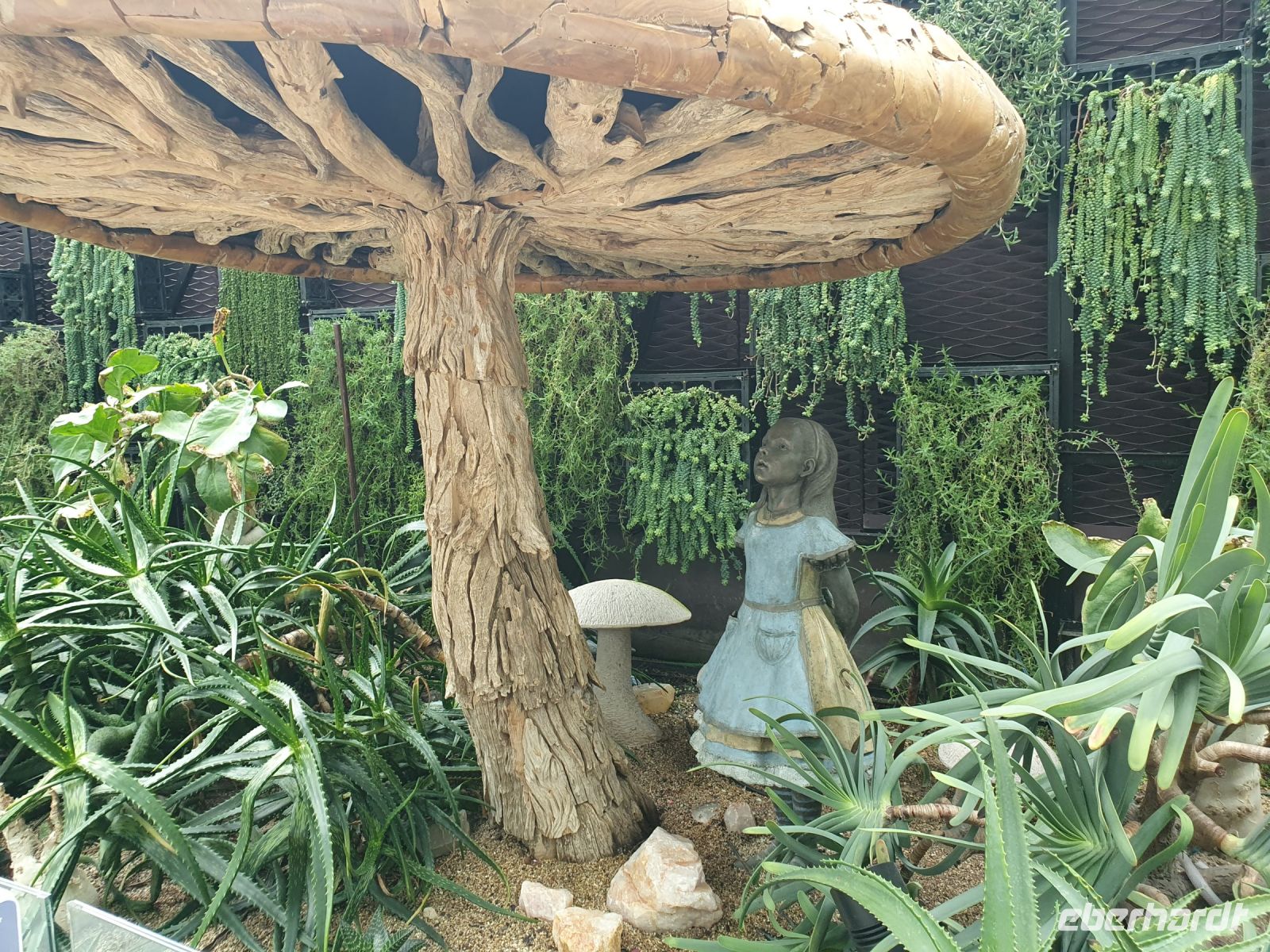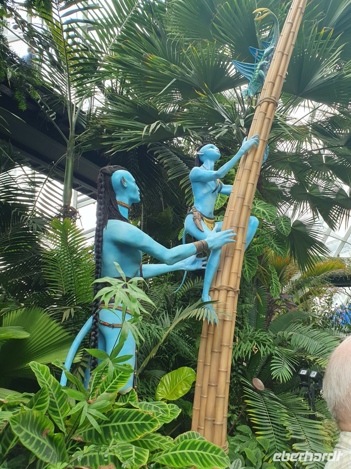 Nach dem Hotelfrühstück machte Martine zuerst Halt an der URA-Gallery. Auf dem riesigen Stadtmodell erkennt man bereits einige bekannte Bauten – man erkennt aber auch, wie Singapur sich bis 2030 noch weiterentwickeln und vergrößern will. Hier würde es ich also auf alle Fälle lohnen in 7 Jahren nach Singapur zurückzukehren. Allein das riesige Hotels Marina Bay Sands wurde in nur 6 Jahren erbaut. Der Architekt Mosche Safdie nahm sich für seine Entwürfe ein Kartenspiel zum Vorbild. Die Dachterrasse, die sich über den drei fast 200 Meter höhen Türmen erstreckt ist 340 Meter lang. Von dem Marina Bay Sands Observation Deck hatten wir wieder eine tolle Aussicht auf die Stadt. Der Infinity-Pool ist leider nur Hotelgästen vorbehalten. Um hier übernachten zu können, muss man schon mit einem Preis von 300,00 €/p. P. mit Frühstück rechnen. Im Anschluss fuhren wir zu den Gardens by The Bay und besuchten hier die beiden Gewächshäuser „Flower Dome“ und „Cloud Forest“. Im Flower Dome finden sich Pflanzen aus der ganzen Welt und unterschiedlichster Klimazonen. In Verbindung mit Skulpturen von Tieren oder Märchenfiguren, wie Alice im Wunderland oder Winnie Pooh werden dem Besucher wunderschöne Geschichten und Märchen erzählt und man kann seiner Fantasie freien Lauf lassen. Zum Anlass des neuen Avatar-Films, wurde im Cloud Forest aktuell eine Sonderausstellung gezeigt, wo die Figuren aus dem Film inmitten riesiger Pflanzen und Installationen in Szene gesetzt wurden.