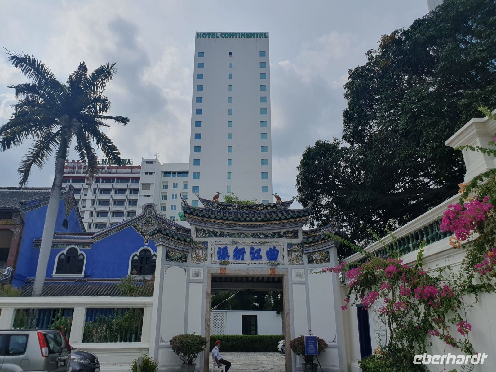 Um die Mittagszeit erreichten wir Ipoh, wo wir in einem schönen Altstadtrestaurant einkehrten. Hier wurde uns ein 3-Gang-Menü mit Suppe, Hauptgericht und Dessert serviert. Zudem hatten wir heute in unserer Gruppe ein Geburtstagskind und neben dem Eis wurde uns zum Dessert noch eine wunderschöne Torte mit bunten Zuckerblumen serviert. Anschließend hatten wir noch die Möglichkeit durch die Altstadt von Ipoh zu spazieren, wo uns während dieser Reise der erste Regenschauer überraschte. Während unserer Fahrt zur Insel Penang zogen die Wolken jedoch wieder auf und wir überquerten die 13,5 Kilometer lange Penang Bridge. Die Schrägseilbrücke ist die zweitlängste Brücke Malaysias und verbindet das malaiische Festland und die Insel Penang miteinander. Auf Penang angekommen, bezogen wir unsere Zimmer im 4-Sterne Hotel Bayview Georgetown.