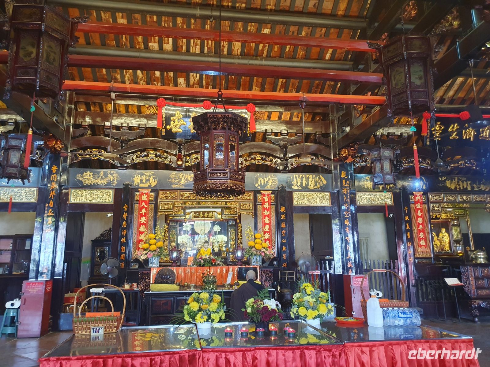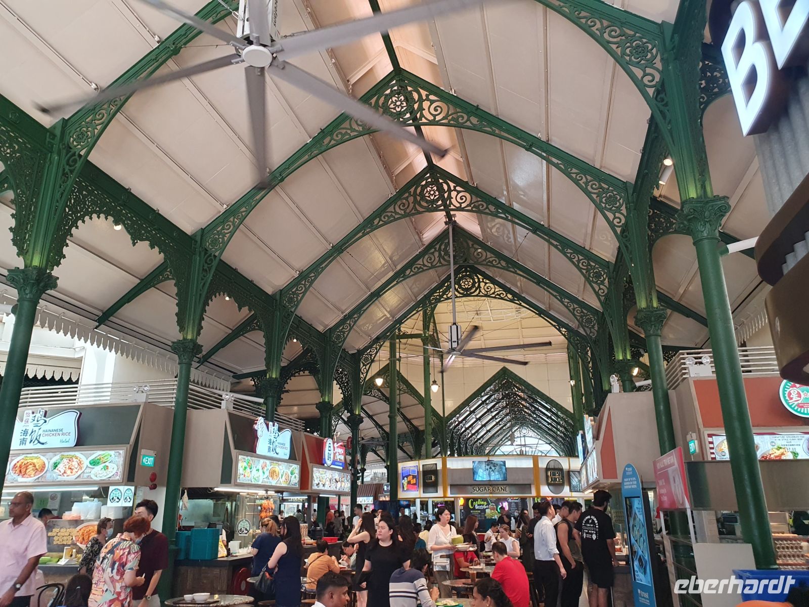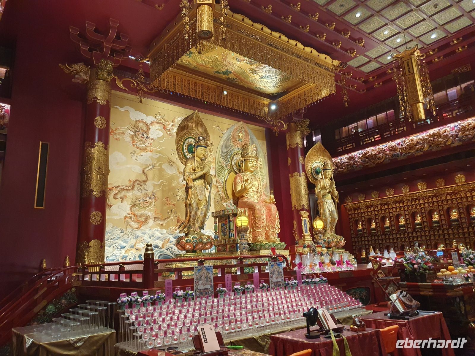 Schon Stamford Raffles war es wichtig, dass den unterschiedlichen Bevölkerungsgruppen der Stadt separate Wohnviertel zugewiesen werden und alle Menschen – egal welcher Nationalität und Glaubensrichtung friedlich miteinander leben. Auf ganz kleinem Raum finden sich die Masjid Jamae Moschee, der älteste Hindu Tempel und der prächtige Mariamman-Tempel nebeneinander. Währen der Mittagspause hatten wir die Möglichkeit Chinatown auf eigene Faust zu entdeck und in einer typischen Garküche für ein Mittagessen einzukehren. Hier gibt es eine schmackhafte Suppe oder Chicken Reis schon für 3-4 Singapur-Dollar und man isst dort, wo auch die Einheimischen essen. Nach dem Mittagessen hat und Martine noch durch einen Buddha-Tempel geführt, in dem buddhistische Weisheiten und Reliquien ausgestellt sind und wo sogenannte Puja-Zeremonien miterlebt werden können.