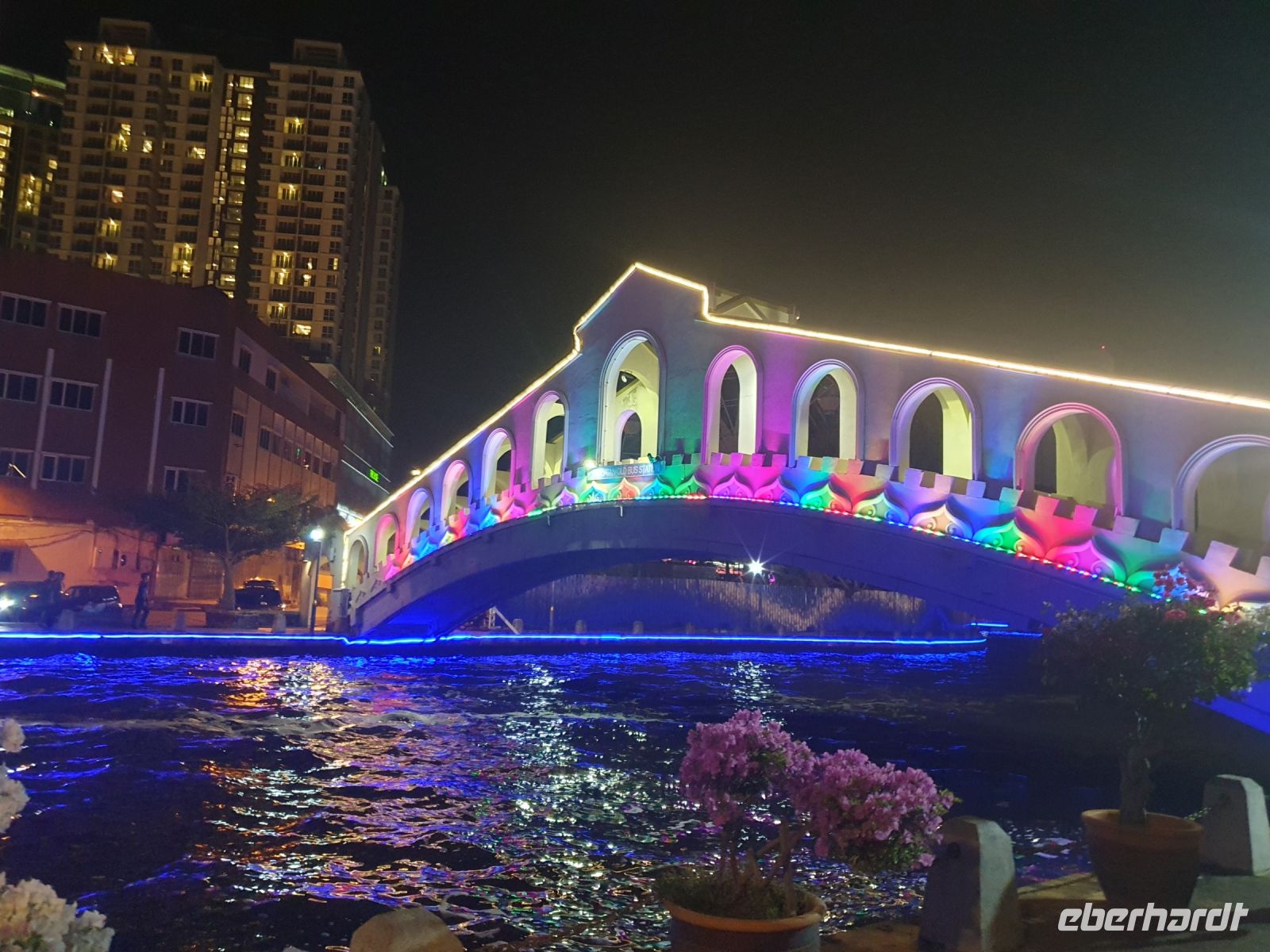Das Hotel befand sich zudem direkt am Malakka River und lud somit noch zu einem abendlichen Spaziergang ein: die Brücken und Bäume entlang der Flusspromenade erstrahlten in bunten Farben und spiegelten sich wunderschön im Wasser. Auf den Straßen herrschte noch viel Trubel und die Einheimischen ließen den Abend bei einem Getränk oder frisch zubereiteten Speisen ausklingen.