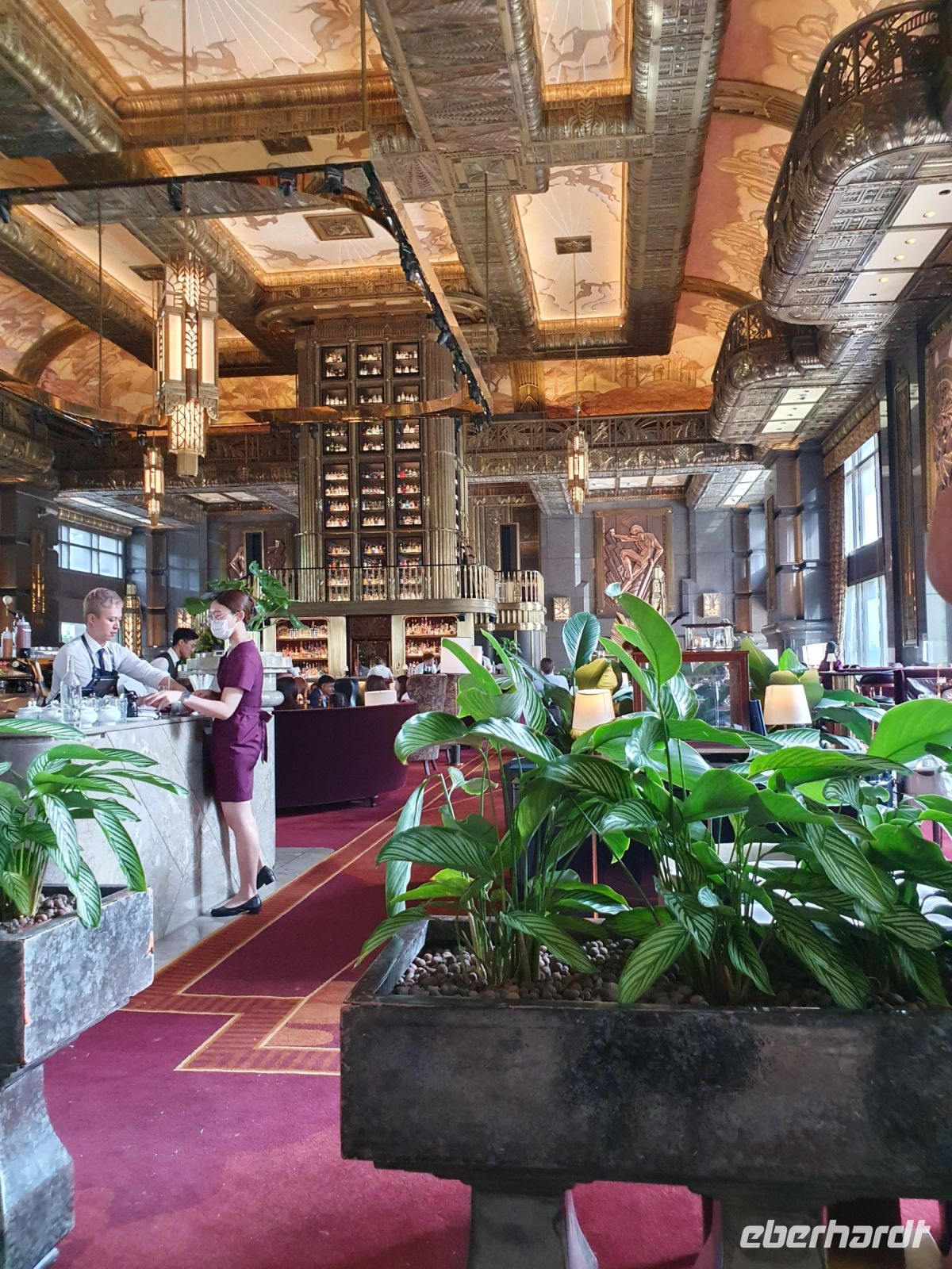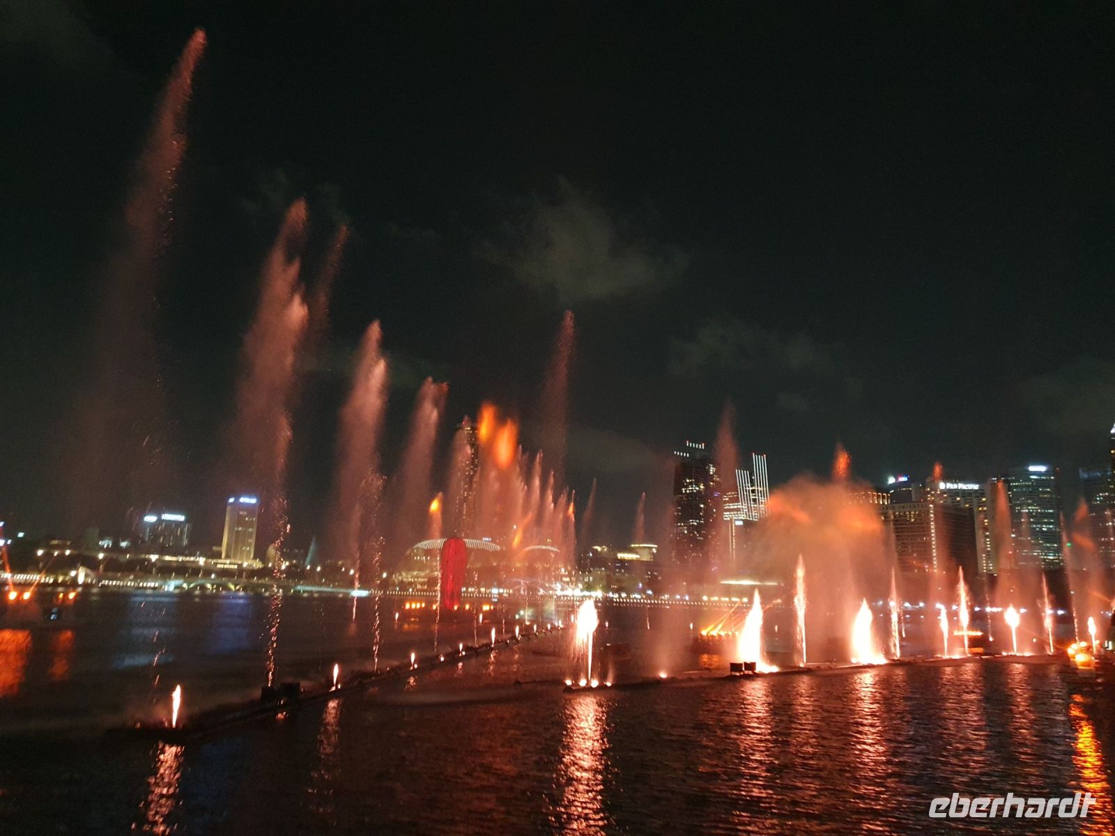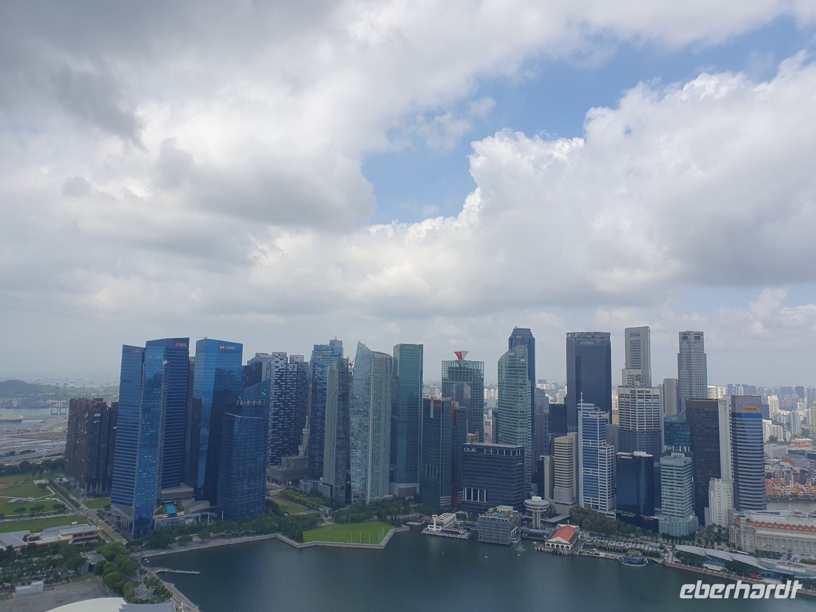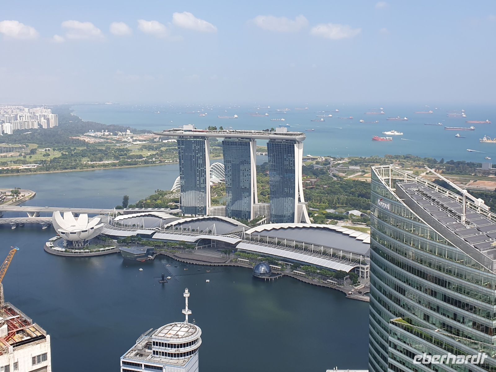 Martine führte uns diesmal durch das 6-Sterne-Hotel Fullerton, in dessen Mitte sich ebenfalls ein Wasserfall in einem Becken ergoss, in dem 23 Jahre alte Kois schwammen, von denen jeder Einzelne mehrere Tausend Singapur Dollar wert ist. Nachdem wir das Hotel verlassen hatte, erwartete uns ein traumhaftes Fotomotiv auf das am meisten fotografierte Hotel weltweit – das Marina Bay Sands. Die Aussichtsplattform, die sich über die drei Türme erstreckt, steht in den kommenden Tagen auch noch bei uns auf dem Programm. In den drei Türmen sind neben dem Hotel auch eine Galerie, eine Shopping-Mall, Büros und Galerien untergebracht und insgesamt arbeiten in diesem Komplex über 10.000 Menschen.