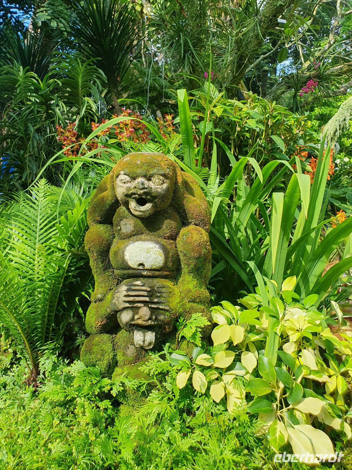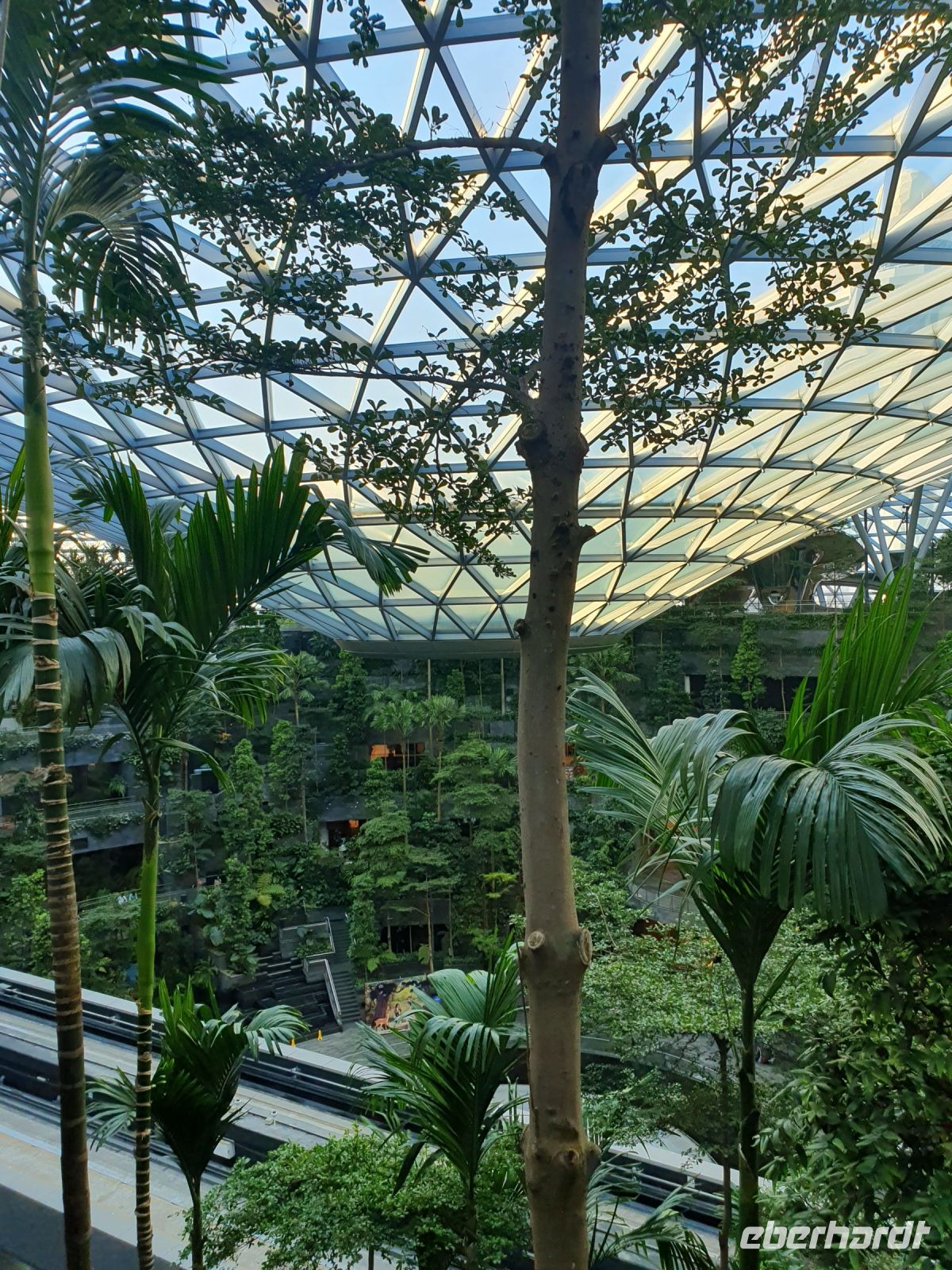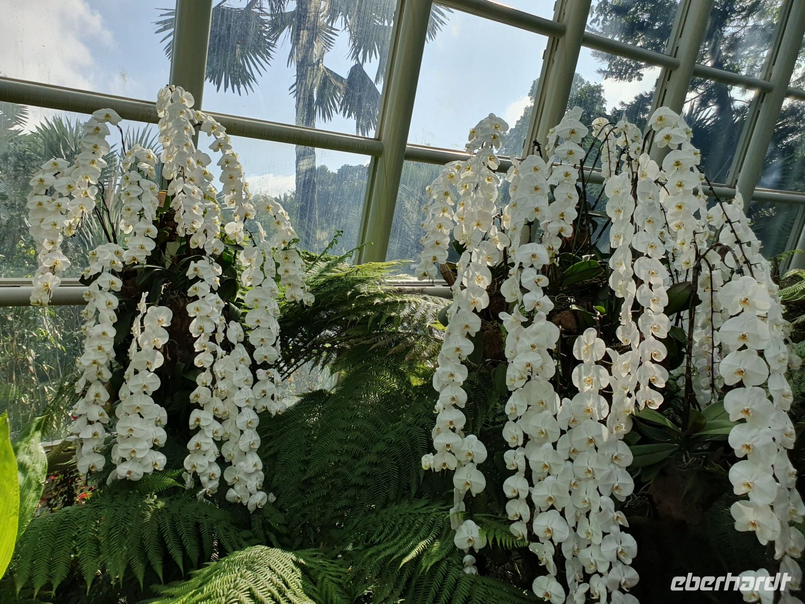 Nach dem 12 Stunden langen Flug, nahm uns in Singapur gleich unsere örtliche Reiseleiterin Martine entgegen. Martine führt in der Regel unsere Australien-Gruppen durch Singapur und wurde jetzt auch erstmals für die Reisegruppe Singapur&Malaysia eingesetzt. Sie lebt bereits seit 26 Jahren in Singapur, spricht 6 Sprachen fließend und moderiert für das niederländische Fernsehen jedes Jahr im September den Großen Formel 1 Grandprix in Singapur. Nach dem wir die ersten Euro in Singapur-Dollar getauscht haben, blieben wir für die erste Besichtigung gleich am Flughafen und wechselten nur das Terminal. Über den Terminal 1 erstreckt sich der sogenannte Jewel Dome, in dessen Mitte sich ab 10.00 Uhr ein Wasserfall ergießt und der am Abend wunderschön erleuchtet ist. Der Wasserfall war nach unserer Ankunft um 07.00 Uhr zwar noch nicht in Betrieb – die gesamte Kuppel war jedoch komplett begrünt und erinnerte an einen Tropenwald. Diese grünen Zonen werden uns in Singapur immer wieder begegnen. Unser nächster Stop war dann gleich der Botanischer Garten mit der weltweit ältesten Orchideensammlung. Berühmtheiten wie Jill und Joe Biden und Queen Elizabeth wurden hier schon Orchideen gewidmet, die im sogenannten VIP Garten ausgestellt sind. Relativ neu ist das Kühlhaus, in dem sich ebenfalls seltene Orchideensorten finden, die zwischen Wasserfällen und Steinen wunderschön arrangiert ist.