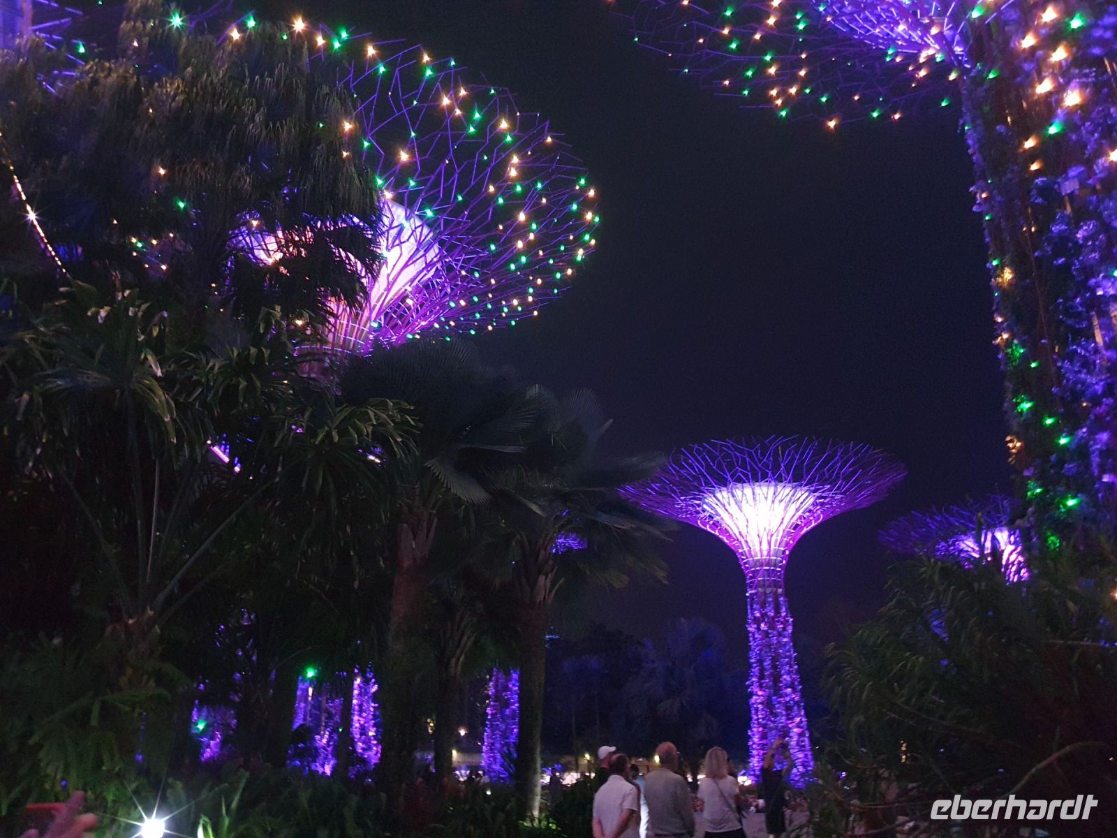 Im Anschluss aßen wir wieder in ein typischen Food-Court, wo viele Einheimische einkehrten und es eine Auswahl von Gerichten wieder zu einem sehr guten Preis gibt. Hier konzentriert sich zumeist jeder Stand auf nur 3-6 Gerichte. Im Anschluss hatte Martine einen echten Geheimtipp für uns: Das Geschäftsgebäude Capita Spring. In 280 Metern Höhe befindet sich hier die höchste Dachterrasse der Welt. Die Kräuter und Pflanzen aus diesem Garten werden vom anliegenden Restaurant genutzt. In den Stockwerken 17-20 gibt es auch tolle Terrassen, wo die Mitarbeiter des Büros ihr Mittagessen genießen und nebenbei sogar im Grünen arbeiten können - Steckdosen und USB-Stecker sind dezent in den Bänken versteckt. Danach führte Martine uns noch zu der beliebten Einkaufsstraße Orchad Road – an dessen Stelle sich früher Obstplantagen befanden. In einem der Geschäfte arbeitete beispielsweise auch Serge, der eine Brillantbrosche für Queen Elizabeth I angefertigt hat und uns stolz die Bilder zeigte, auf denen die Queen diese Brosche trug. Zurück im Hotel, erwartete uns heute ein Japanisches Menü und wir mussten uns etwas beeilen, da für den Abend noch große Pläne anstanden: Um 20.00 Uhr wollten wir die Lichtershow am Marina Bay Sands („Spectra“) sehen und gleich im Anschluss um 20.45 Uhr über die Marina Bay Sands Shoppingmall zu der zweiten Lichtershow bei den Gardens by the Bay („Rapsody“) rübergehen. Da für die Metro jeder aus unserer Gruppe eine eigene Kreditkarte hätte besitzen müssen – die Metrofahrten können nur per Kreditkarte bezahlt werden – waren wir doch gezwungen sowohl den Hin- als auch den Rückweg zu Fuß zurückzulegen. Die Strecke war generell nicht ganz kurz und hinzu kamen kleine Orientierungsschwierigkeiten, aber trotzdem erreichten wir rechtzeitig beide Lichtershows, die wirklich sehenswert sind und einen etwas vor sich hinträumen lassen. Für die Gardens By The Bay hat uns Martine vorab den Tipp gegeben sich auf den Bänken auf den Rücken zu legen - das war auch wirklich eine tolle Perspektive. Auf dem Rückweg kamen wir leider wieder etwas von der Idealroute ab und liefen diesmal durch das nächtliche Chinatown. Erschöpft, aber sehr zufrieden fanden wir jedoch zurück in unser Hotel.
