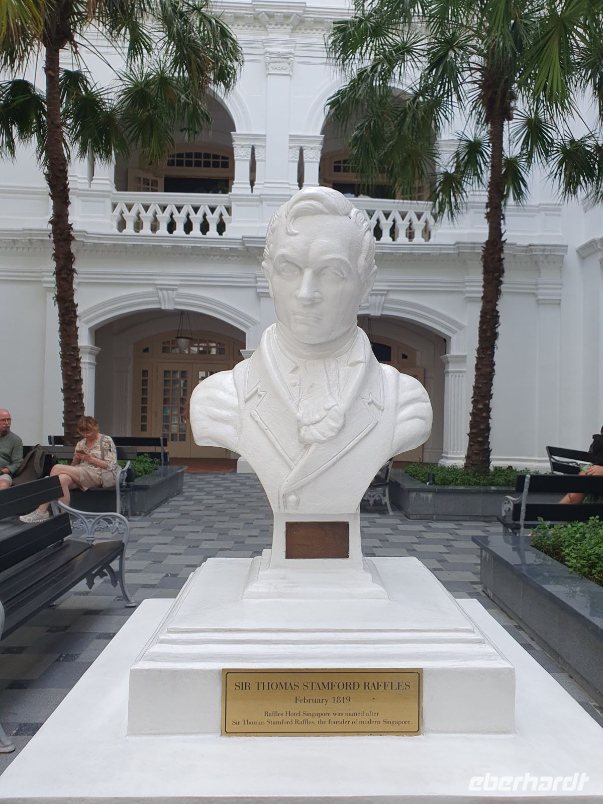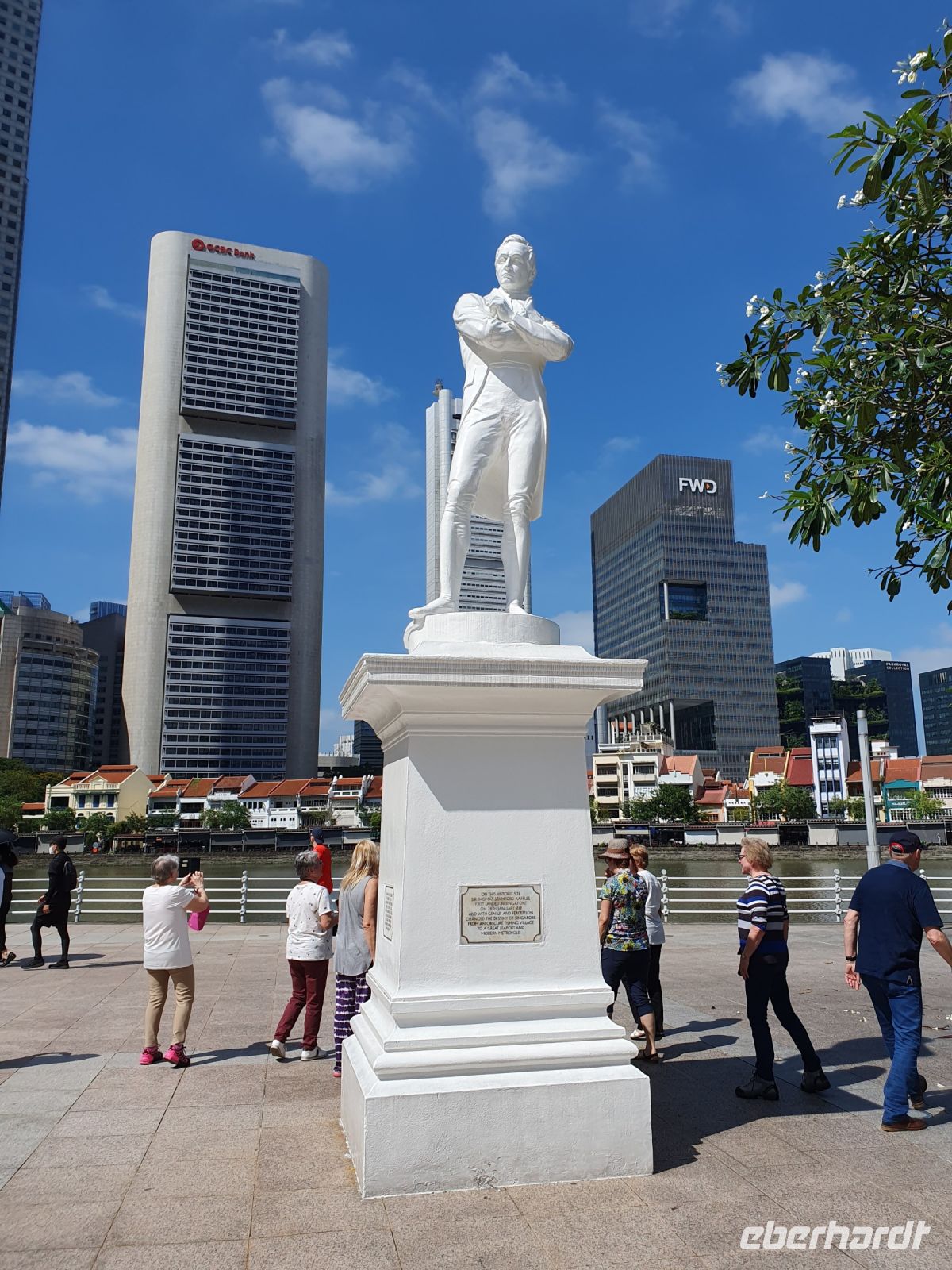Jetzt erfuhren wir mehr über die Geschichte der Stadt. Singapur wurde im Jahr 1823 von dem Kaufmann Stamford Raffles gegründet. Ihm zu Ehren finden sich in der Stadt auch zwei Denkmäler von ihm – eines davon befindet sich direkt an der Hafenpromenade Clarke Quey.