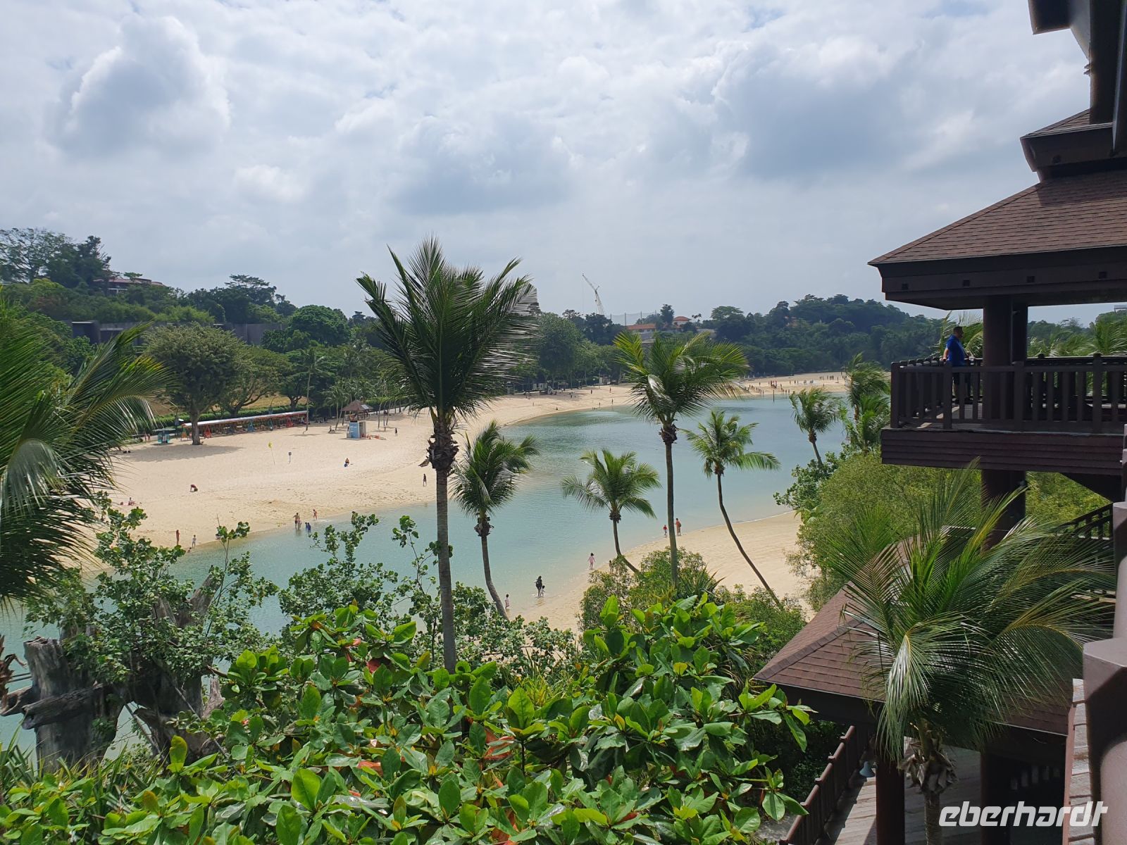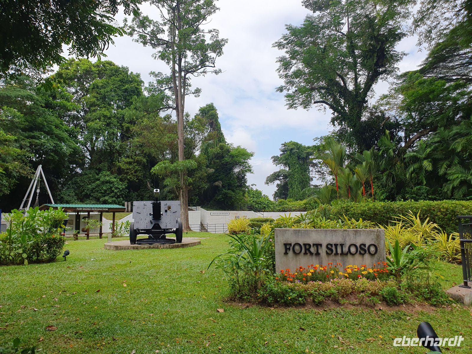 Unser erstes Ziel für heute war der Freizeitpark Sentosa, der sich auf der größten Insel Singapurs befindet. Hierher gelangt man vom Mont Faber mit einer Seilbahn. Während der Fahrt erwartete uns schon ein toller Blick über die Insel und das Meer. Martine führte uns ein wenig über das Gelände und zeigt und den Seloso Fort, den wir über die Skywalk Bridge erreichten. Bei Familien sind hier besonders Attraktionen, wie die Universal Studios und das Aquarium besonders beliebt. Während 2 Gäste aus unserer Gruppe das Aquarium besuchten, hatte der Rest der Gruppe Zeit die Insel zu erkunden oder am Strand zu baden.