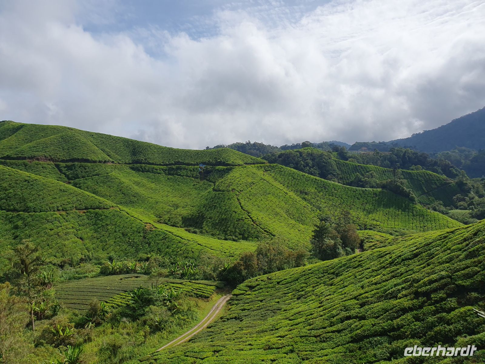 Während unserer Fahrt war es toll zu beobachten, wie sich die Landschaft langsam veränderte und wir immer höher in die Berge fuhren und sich langsam die großflächigen Teeplantagen vor uns eröffneten. Hier waren auch die Temperaturen etwas angenehmer und lagen jetzt bei unter 30 °C.