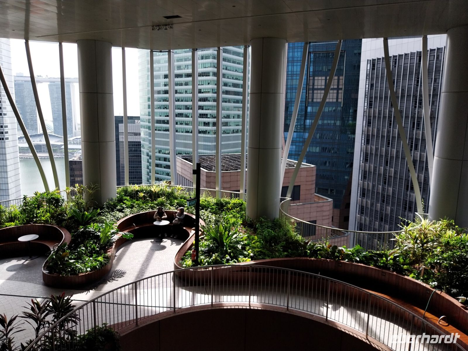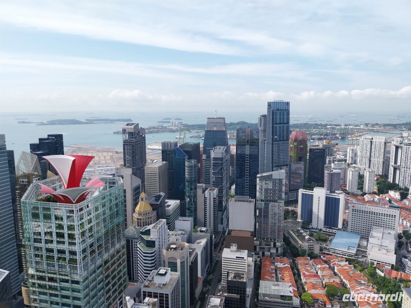 Um 8.30 Uhr beginnt unsere Stadtrundfahrt. Bibi erklärt uns viel über die Stadt und Wohnhäusern entlang der Strecke. Wir sehen bereits das Riesenrad Singapore Flyer und das Marina Bay Sands Hotel. Erster Stopp ist jedoch der Sky Garden des im letzten Jahr fertiggestellten Hochhauses CapitaSpring.