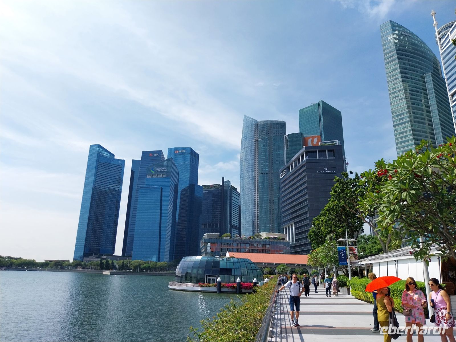 Es steht unser letzter Programmpunkt für Singapur auf dem Plan. Eine Bootsfahrt ab Clarke Quay auf der Marina Barrage. Wir sehen die Sehenswürdigkeiten nun nochmals vom Wasser. Da wir die einzigen Gäste auf dem Boot sind, gibt es sogar die Erklärungen in deutsch und wir können nochmals zahlreiche Fotos schießen.