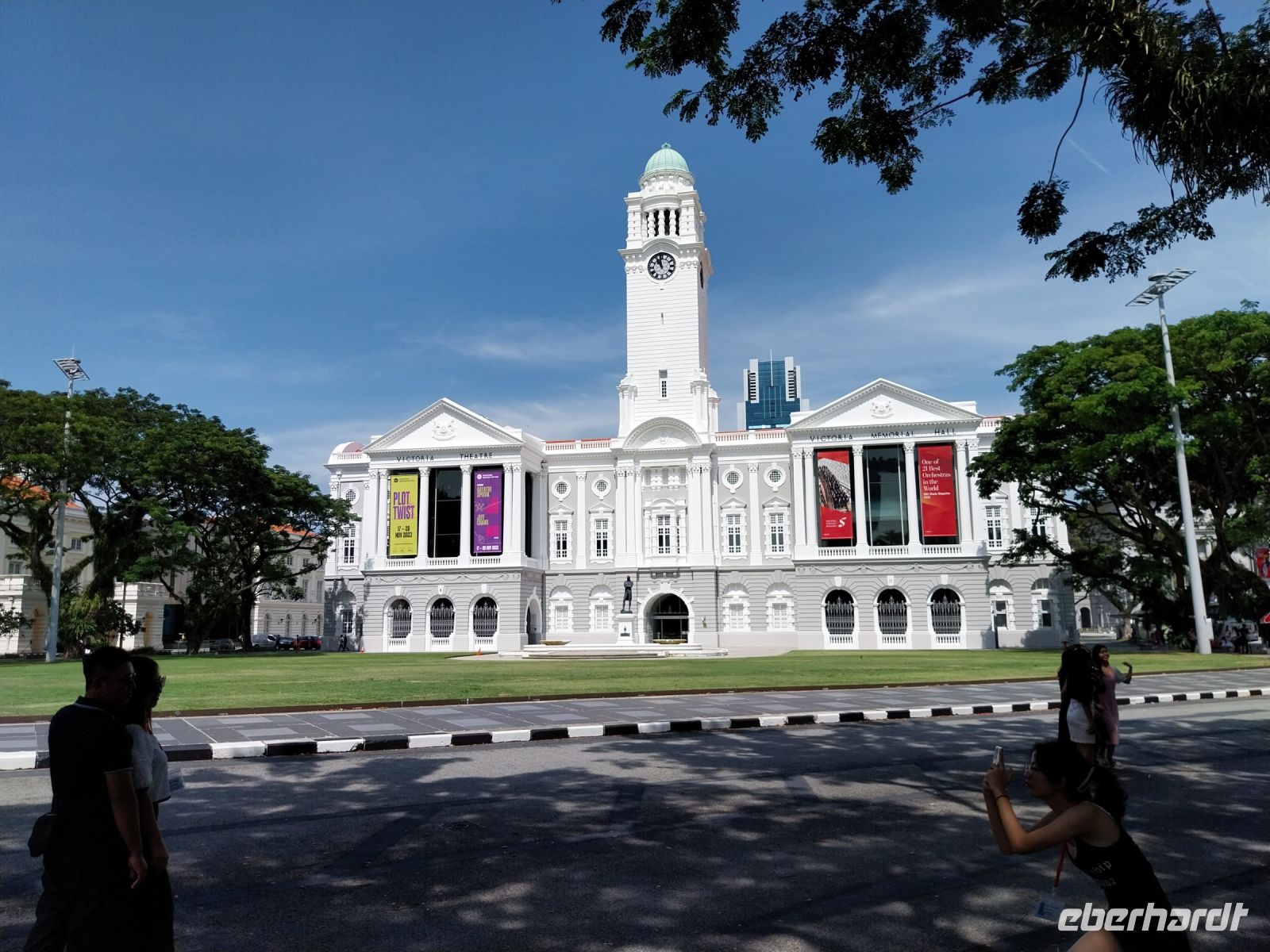 Der davor im Wasser stehende Merlion ist leider eingerüstet und nicht sichtbar. An der Victoria Concert Hall endet unser Spaziergang und unser Bus bringt uns zum Parkview Building - dem 'Batman' Haus.