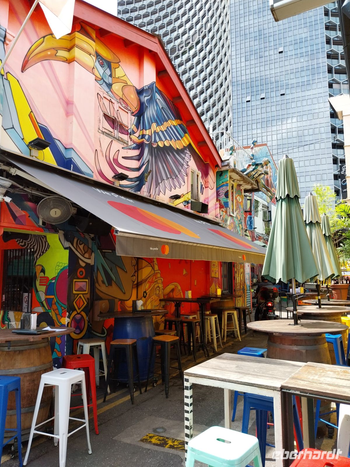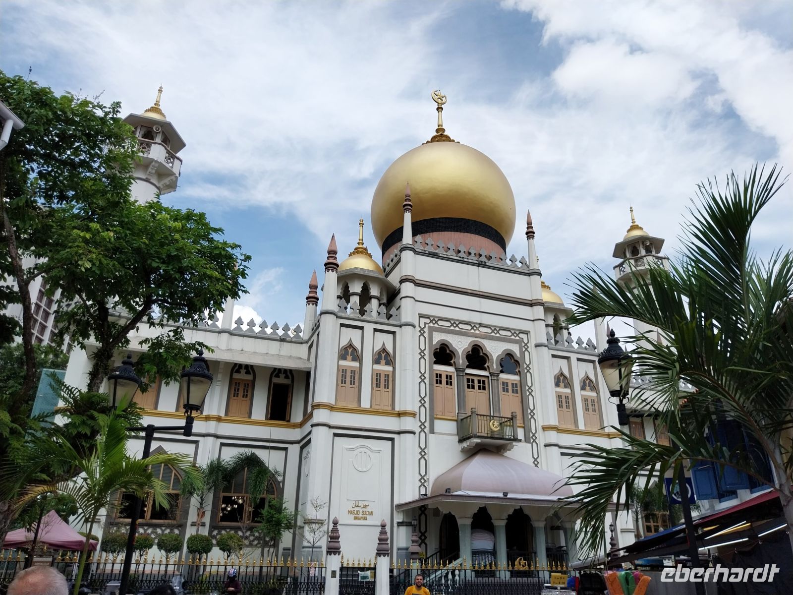 Wir schauen uns die Bar an und Bibi zeigt uns einige Fototricks. Als nächstes sehen wir uns Kampong Glam, das arabische Viertel Singapurs an. Wir erfahren viel über das frühere Leben und auch, das Pilgerreisen nach Mekka mit dem Frachtschiff hier begannen.
