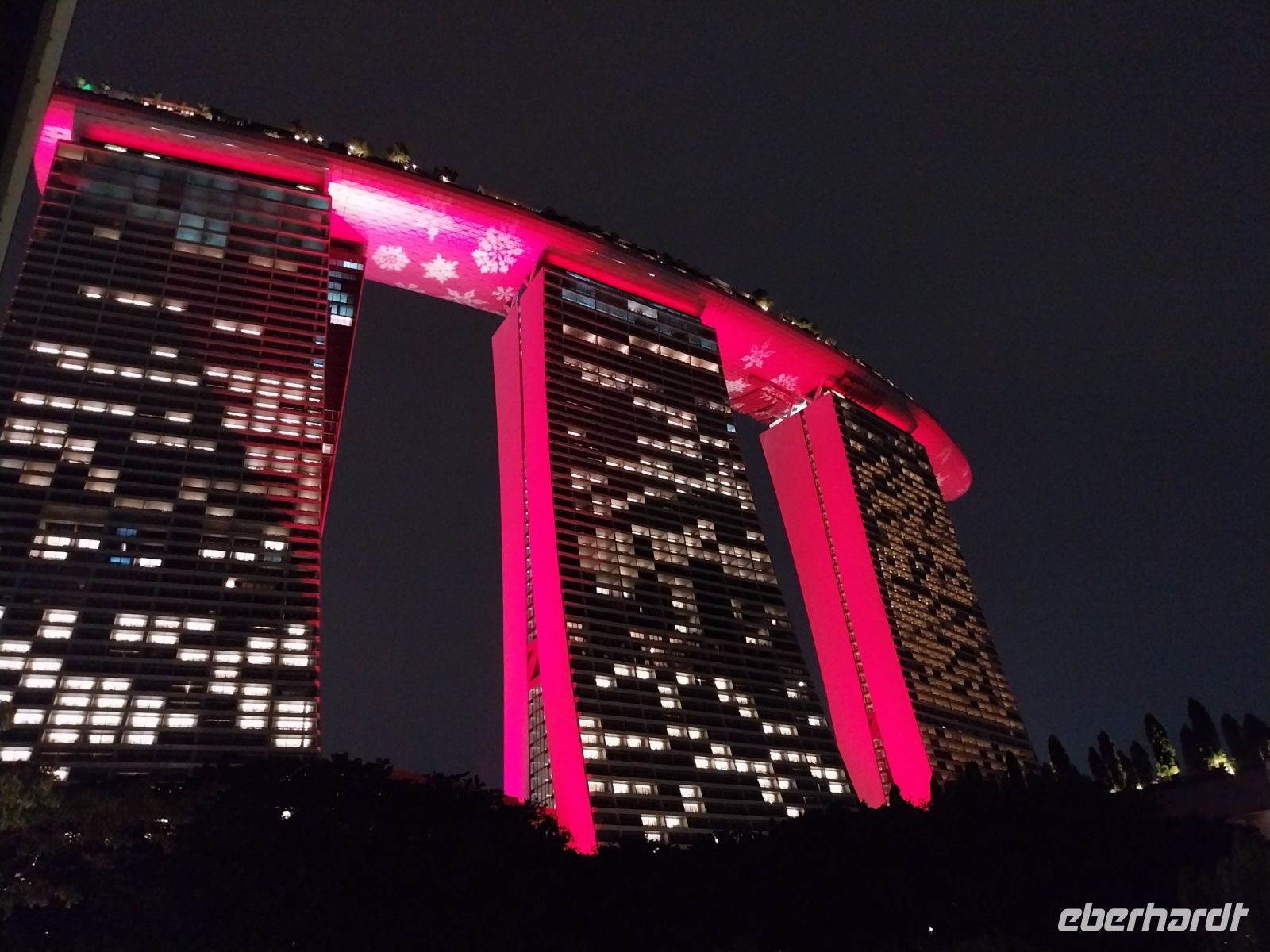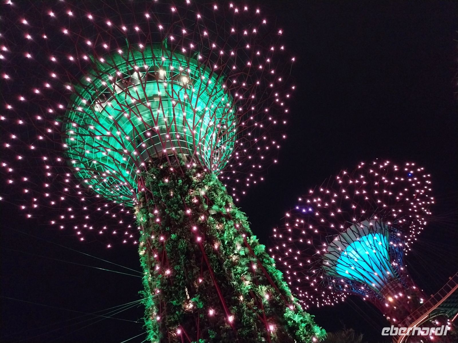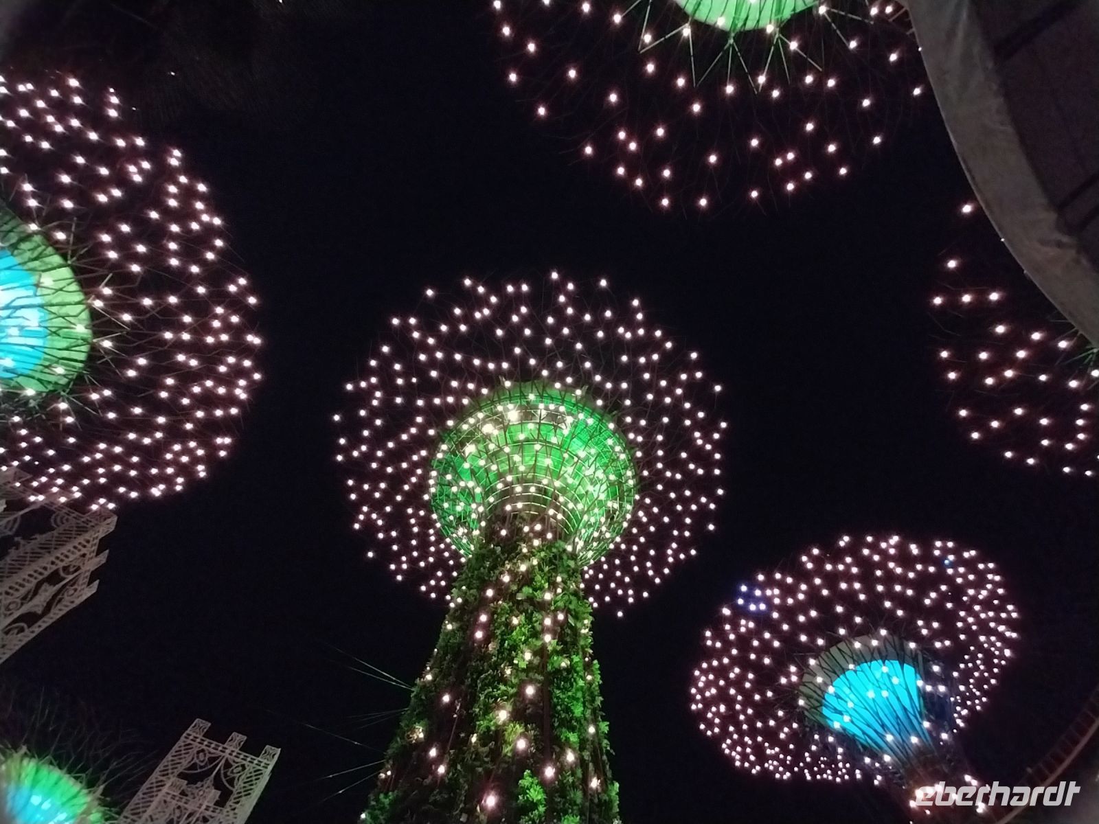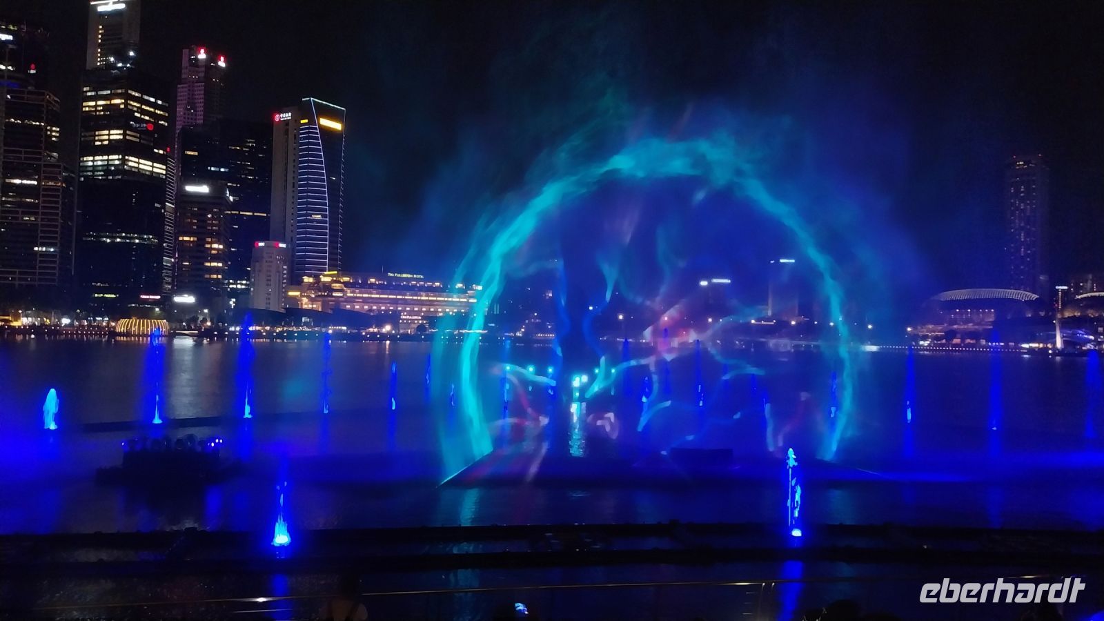 Ein kleiner Teil unserer Gruppe unternimmt noch einen Abendspaziergang und schaut sich bereits die Garden Rhapsody, eine Lichter-Musik-Show an den sogenannten Supertrees und anschließend Spectra, die Licht- und Wasser-Show am Marina Bay Sands Hotel, an.